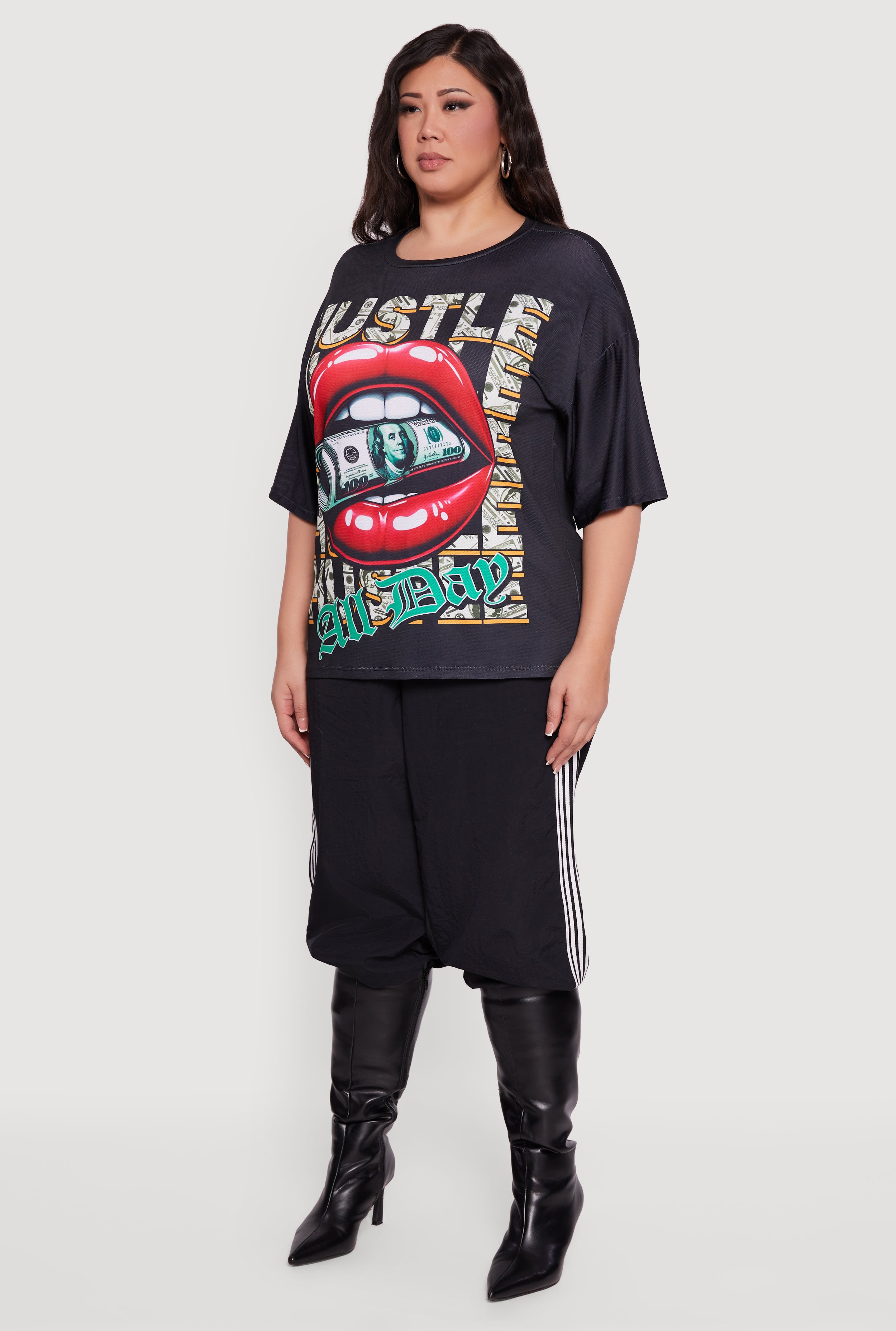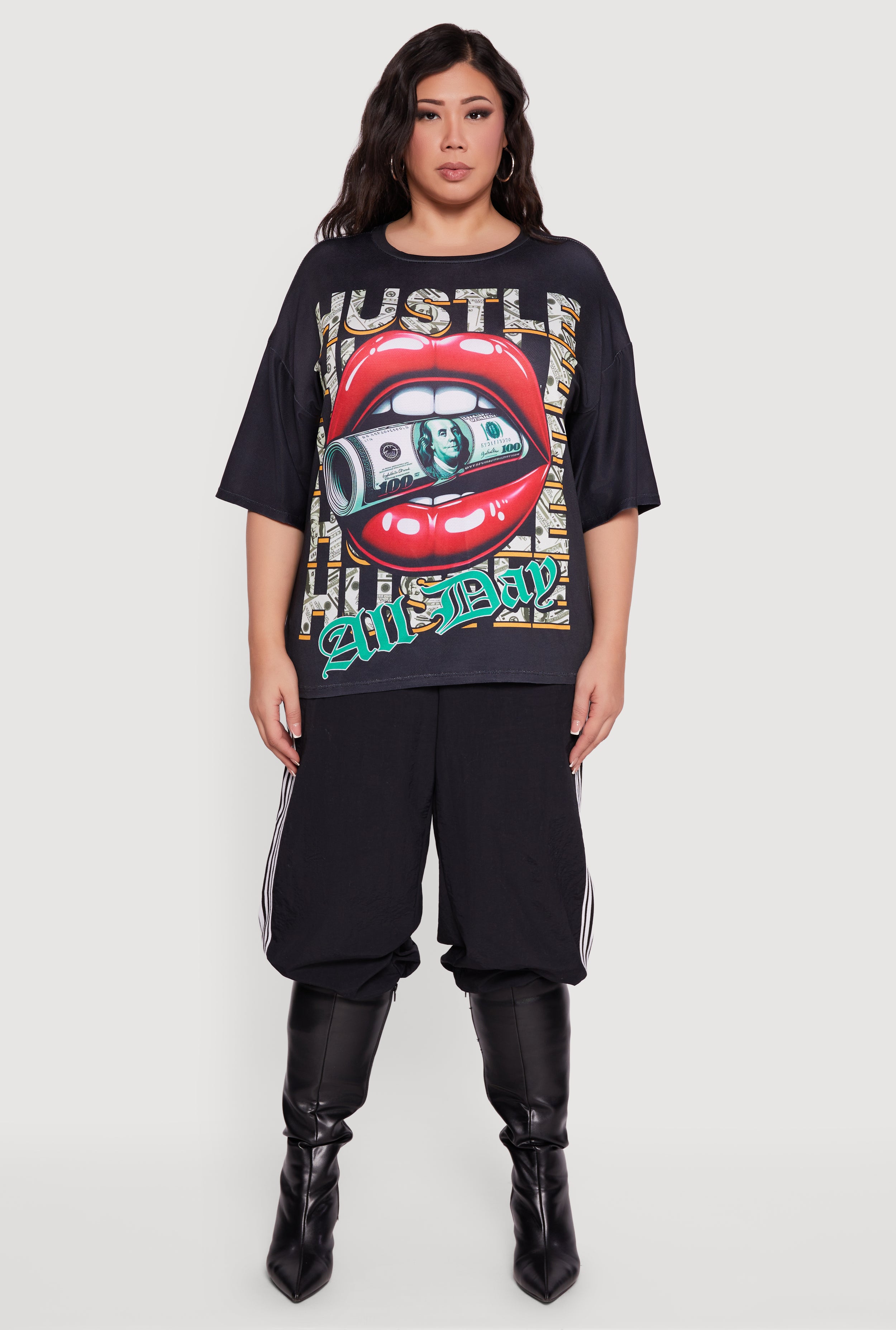 Plus Size Oversized Hustle All Day Graphic Tee