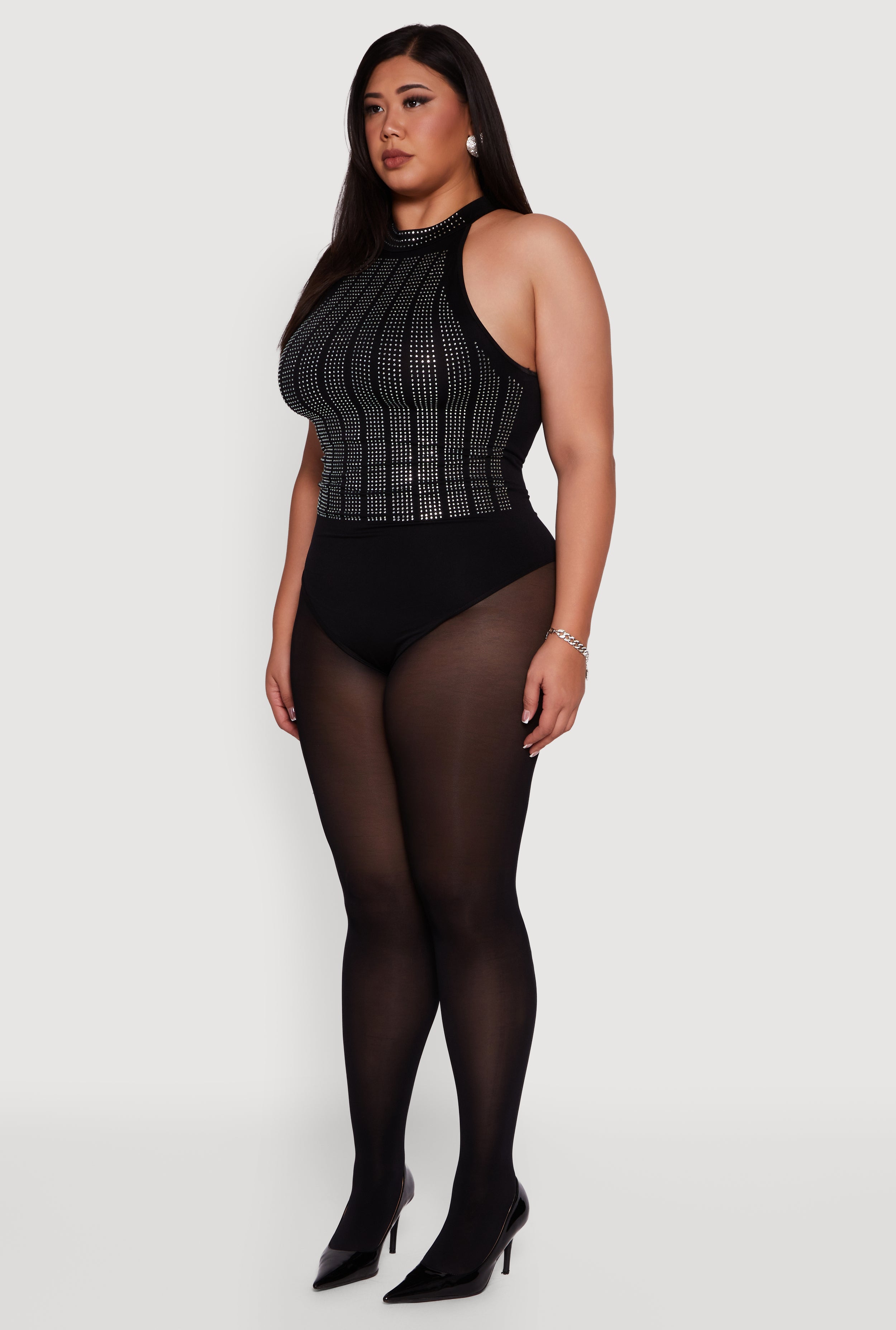 Turn heads and sparkle all night long in this Plus Size Patterned Rhinestone Sleeveless Bodysuit. Designed to hug your curves with a sleek, shaped silhouette, it features a high neck for a chic, modern vibe and a convenient snap closure for easy wear. Perfect for festivals, parties, or any night out where you want to shine bright and feel confident without breaking the bank.