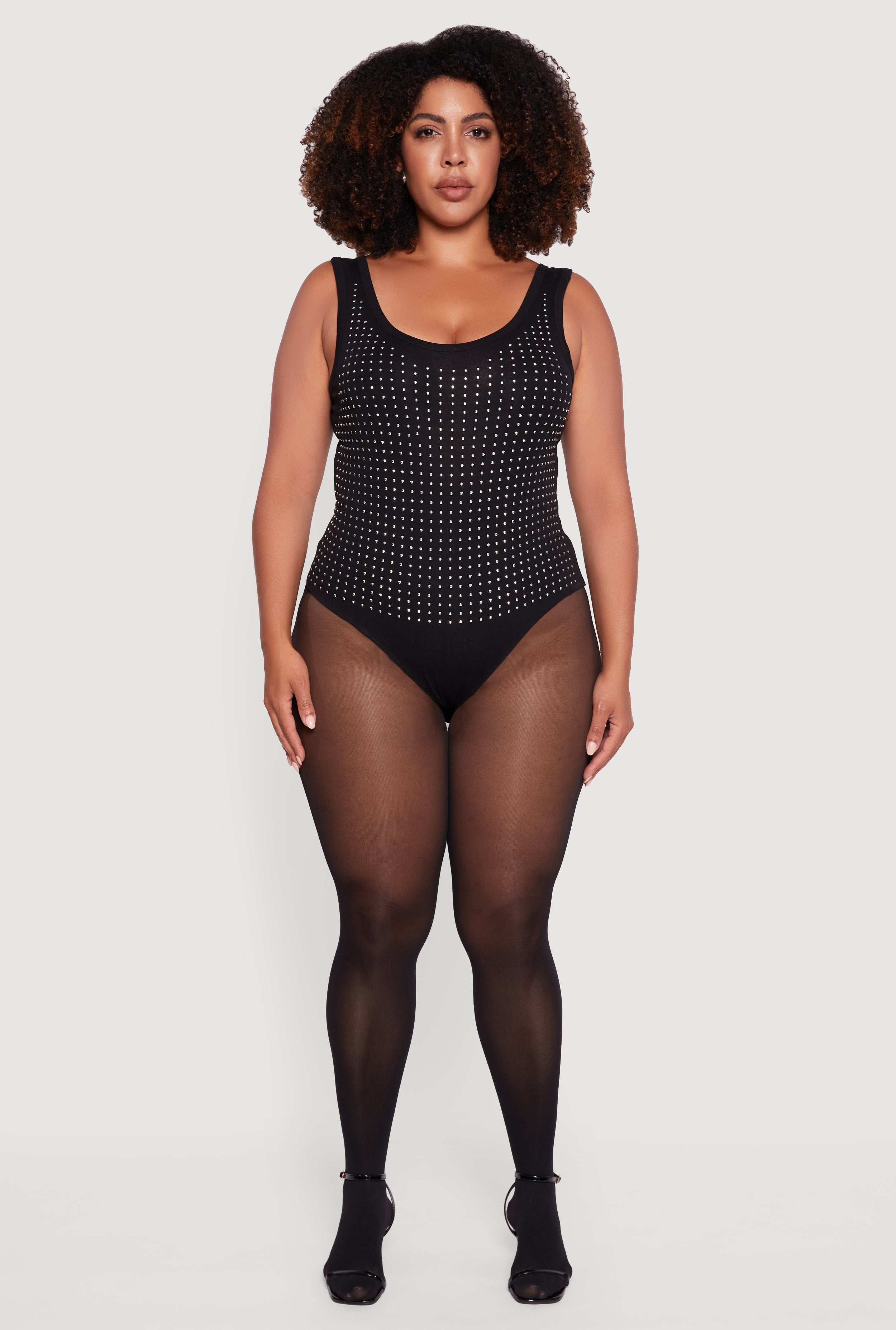 Turn heads and sparkle all day with this Plus Size Rhinestone Studded Scoop Neck Bodysuit. Designed to hug your curves in all the right places, this sleeveless beauty brings effortless glam to your casual look. Whether you're out with friends or just vibing solo, the rhinestone details add just the right amount of shine to keep you feeling confident and fabulous.