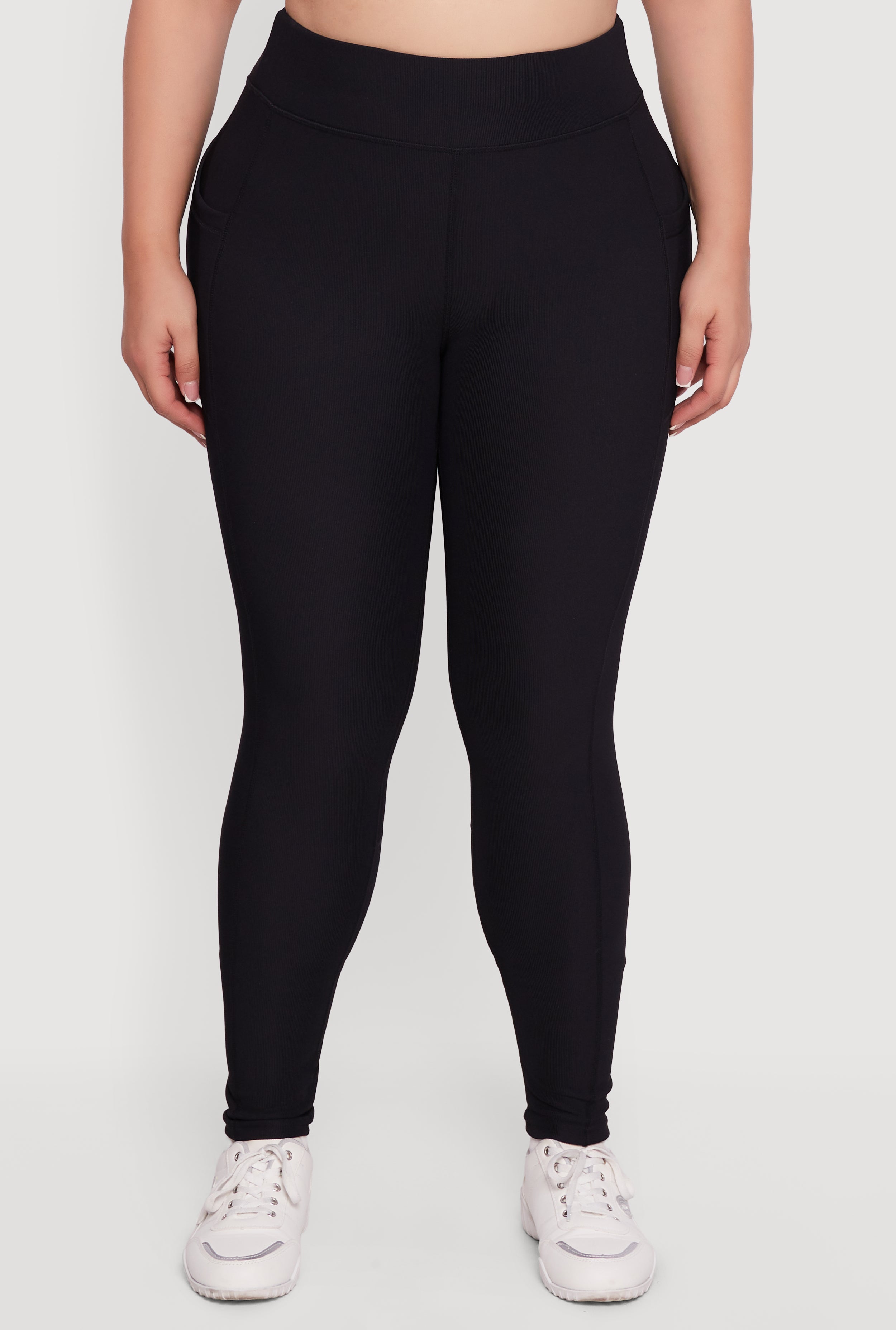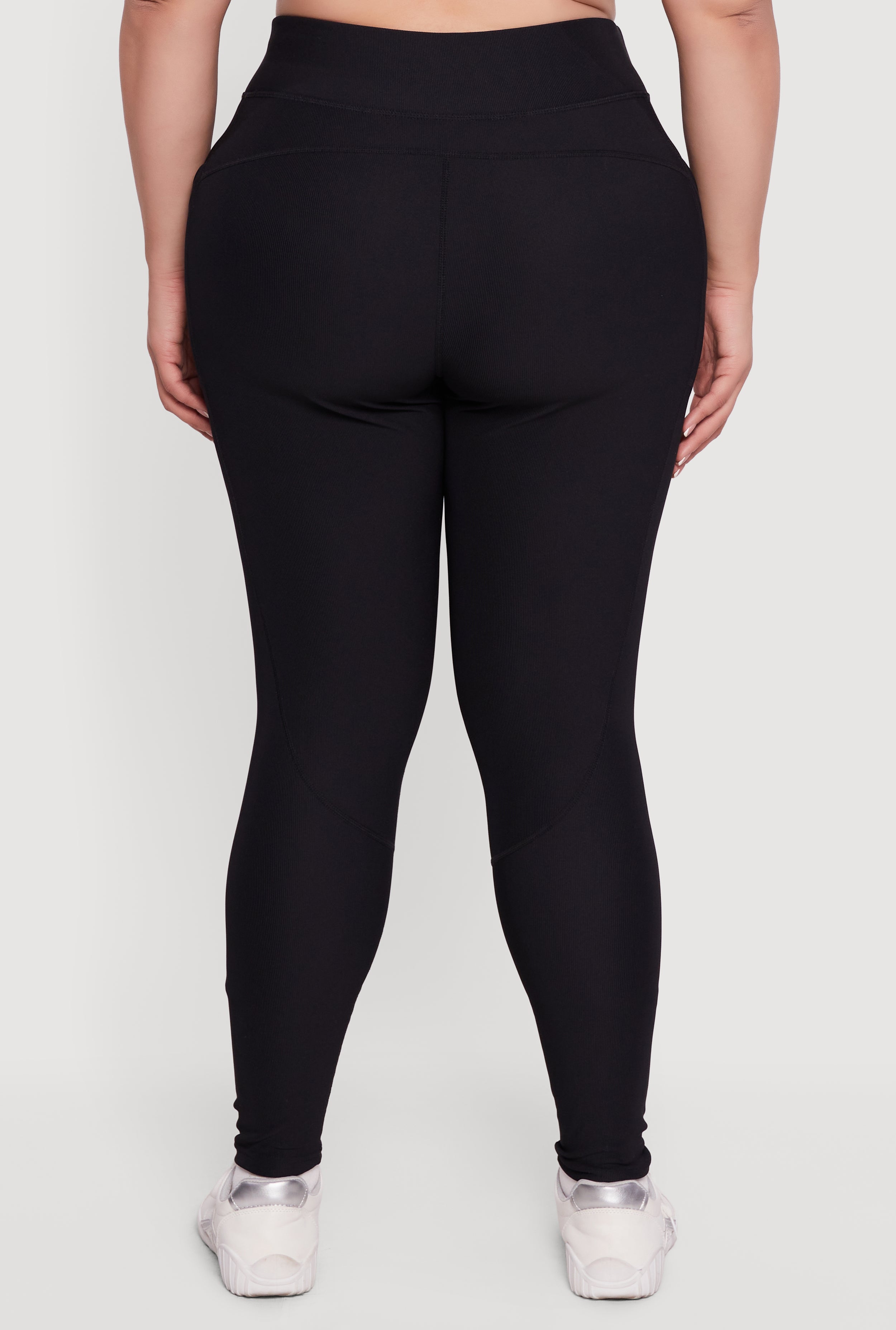 Plus Size Rib Knit Leggings with Cell Phone Pocket