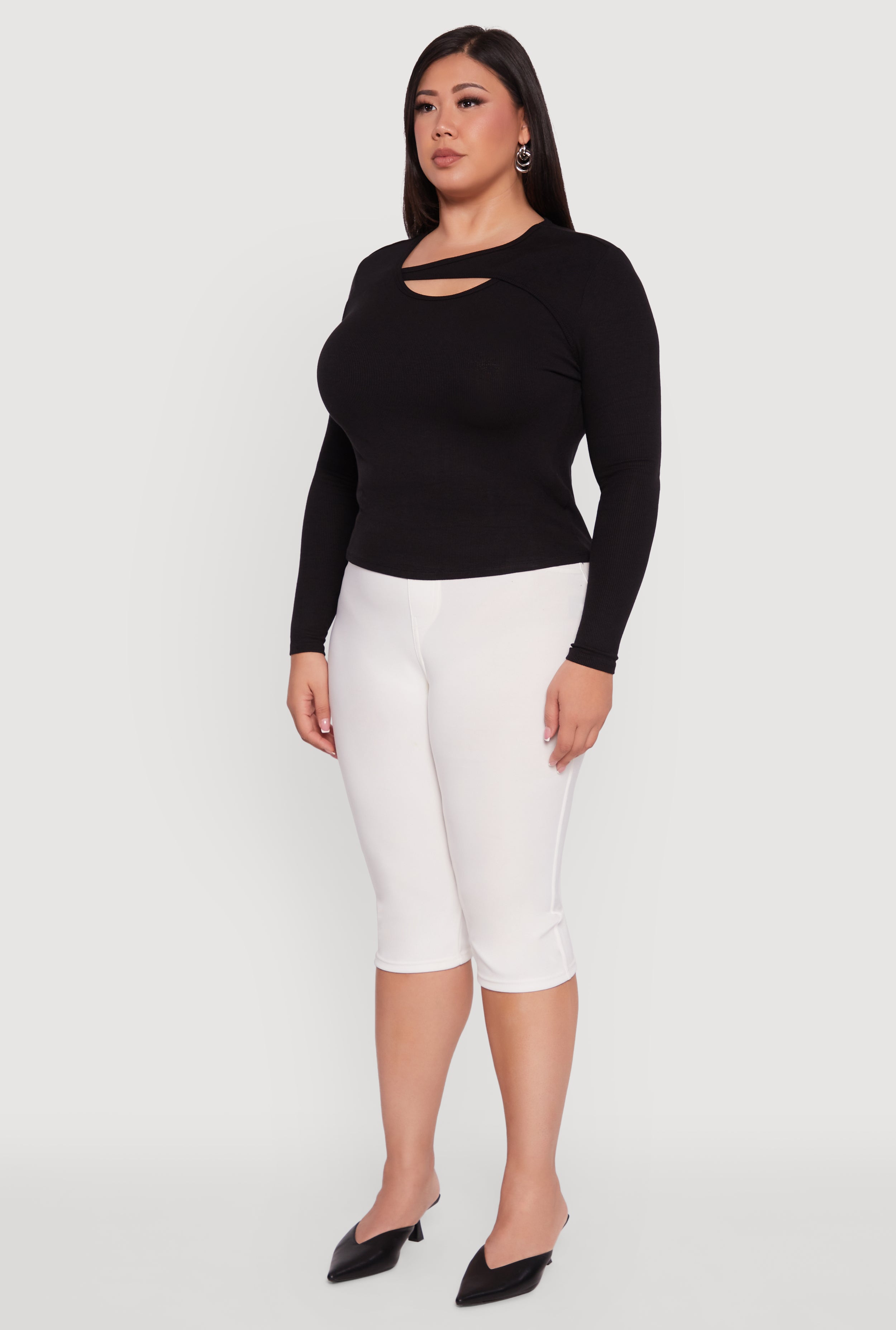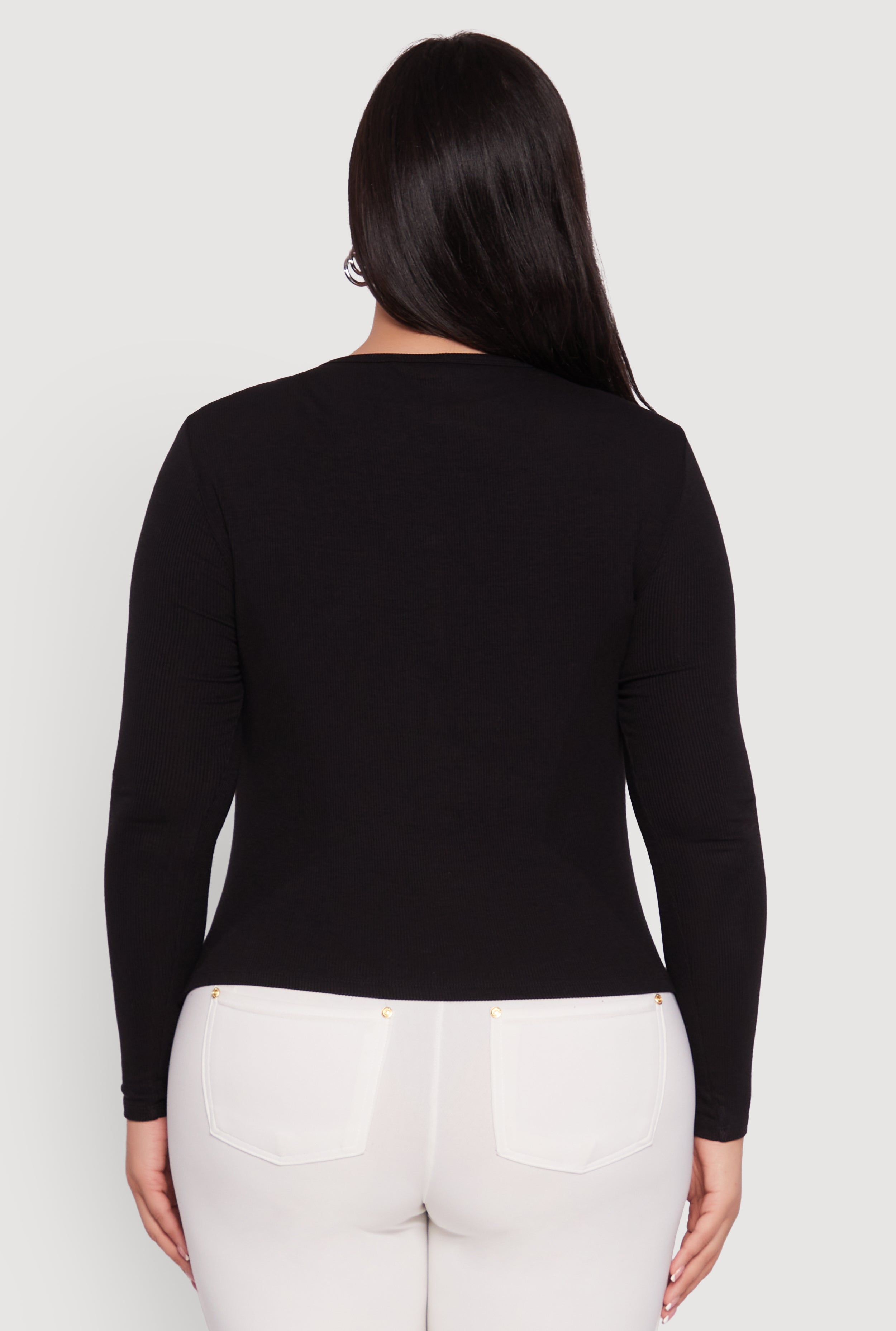 Step up your style game with this Plus Size Ribbed Knit Keyhole Long Sleeve Tee. Designed to flatter every curve with a classic fit and a scoop neck that adds just the right amount of charm. The ribbed knit fabric feels soft and cozy, perfect for casual days or a night out when you want to keep it effortlessly chic. The subtle keyhole detail brings a playful twist that makes this tee anything but basic.