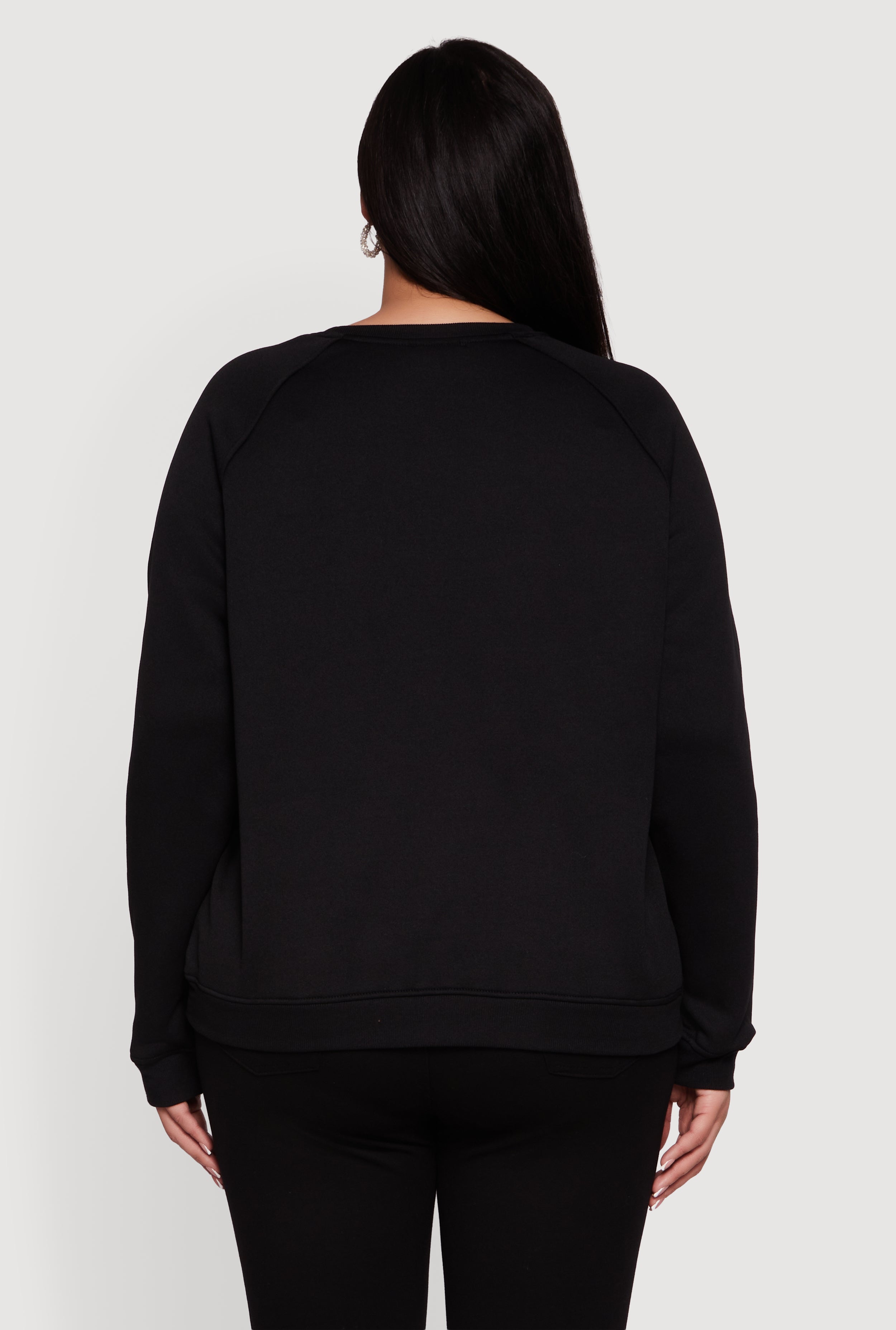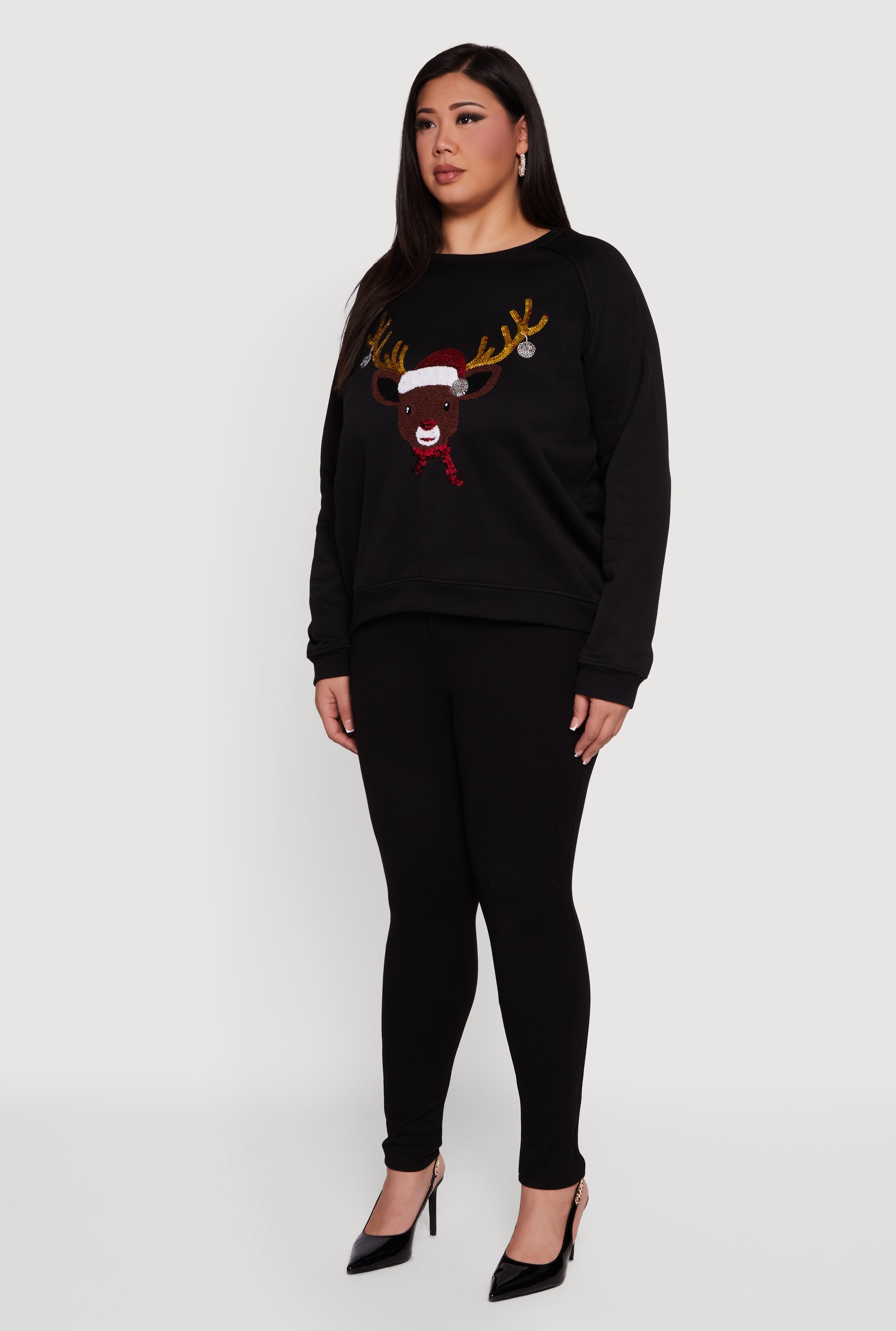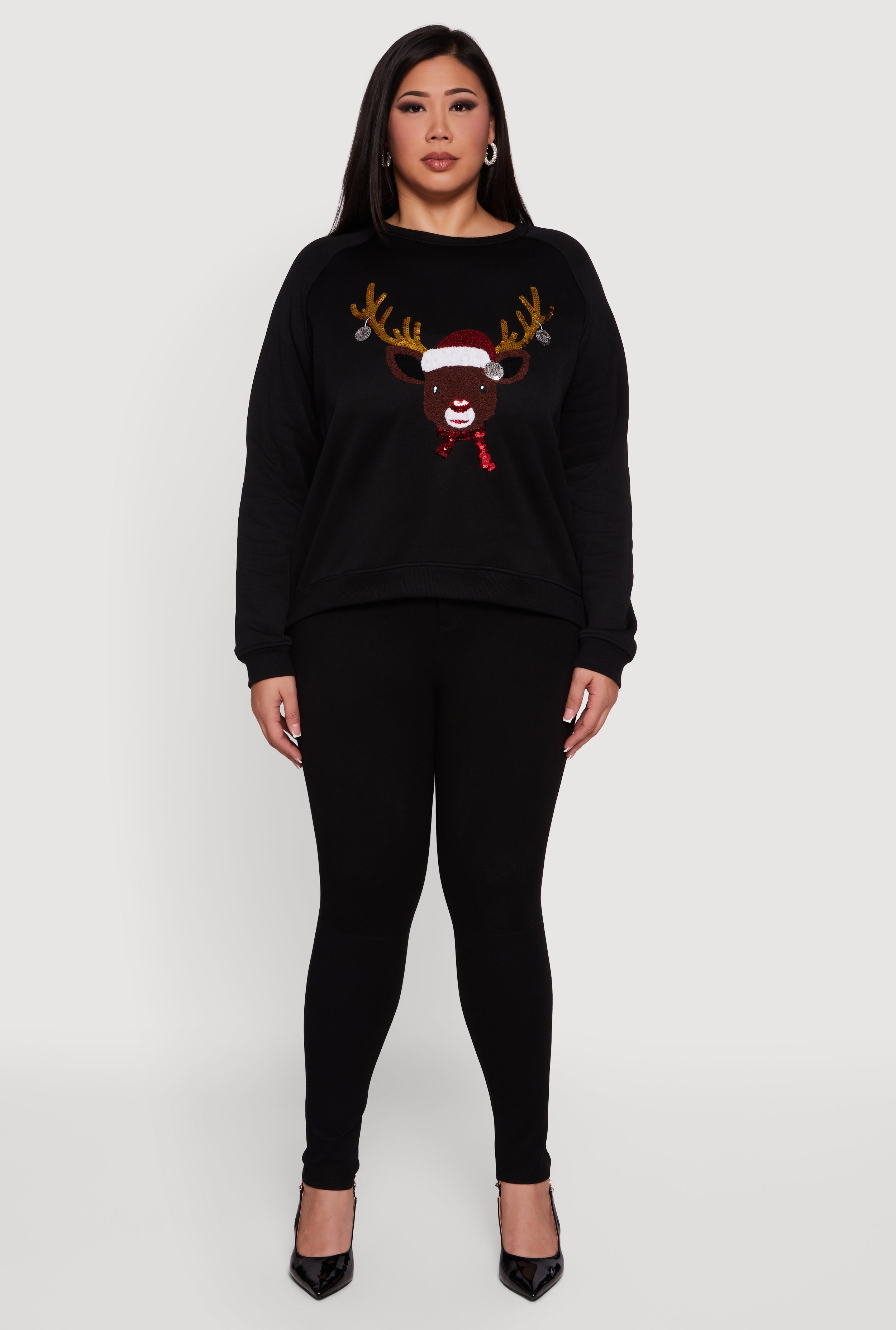 Get ready to sleigh the holiday season in this Plus Size Sequin Reindeer Chenille Patch Graphic Sweatshirt. Cozy fleece and soft chenille come together in a classic fit that flatters your curves while keeping you warm and stylish. The sparkling sequin reindeer patch adds a festive touch that’s perfect for casual days or Christmas celebrations. Pair it with your favorite jeans or leggings for an effortlessly cool holiday look.