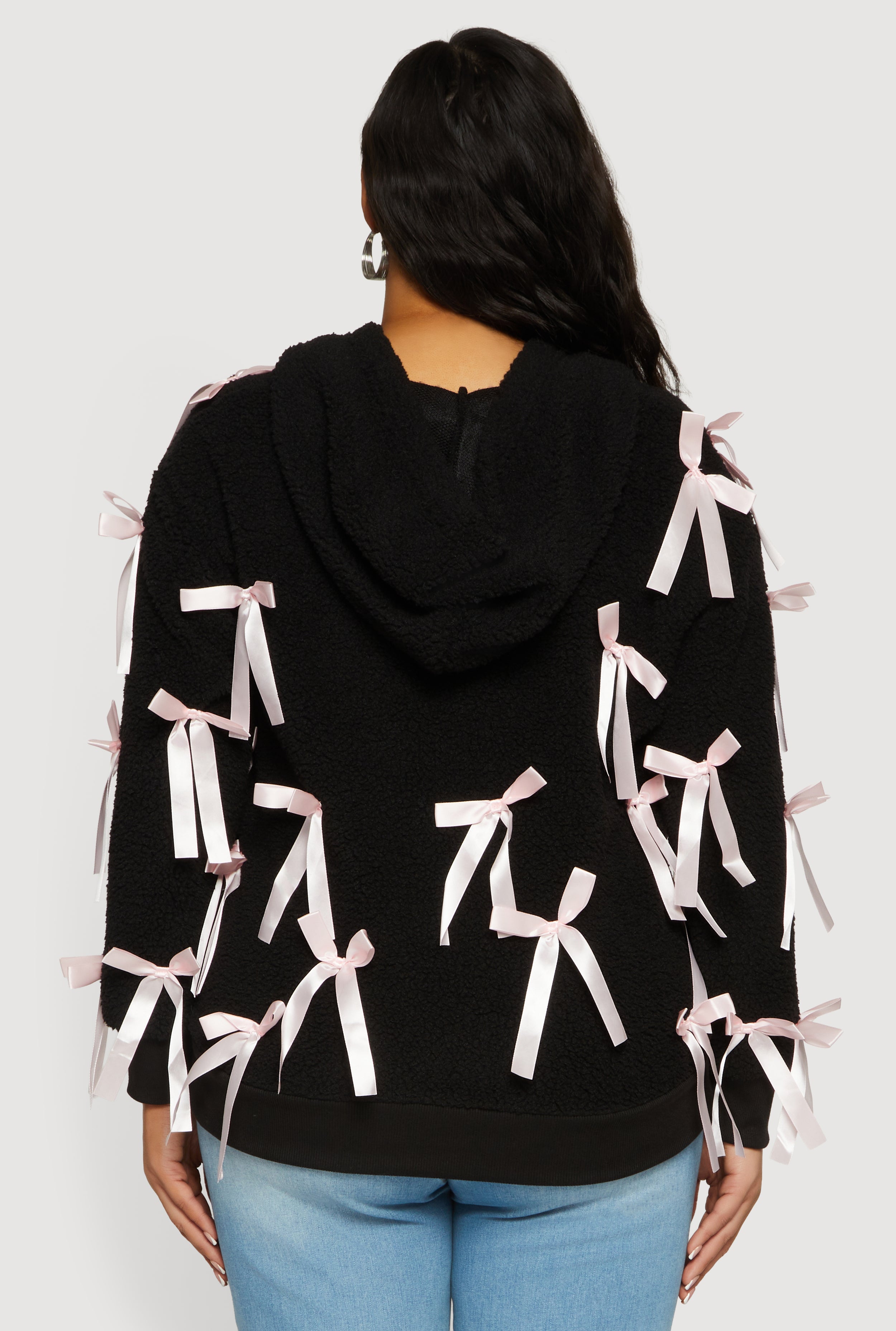 Plus Size Sherpa Hooded Zip Front Bow Jacket