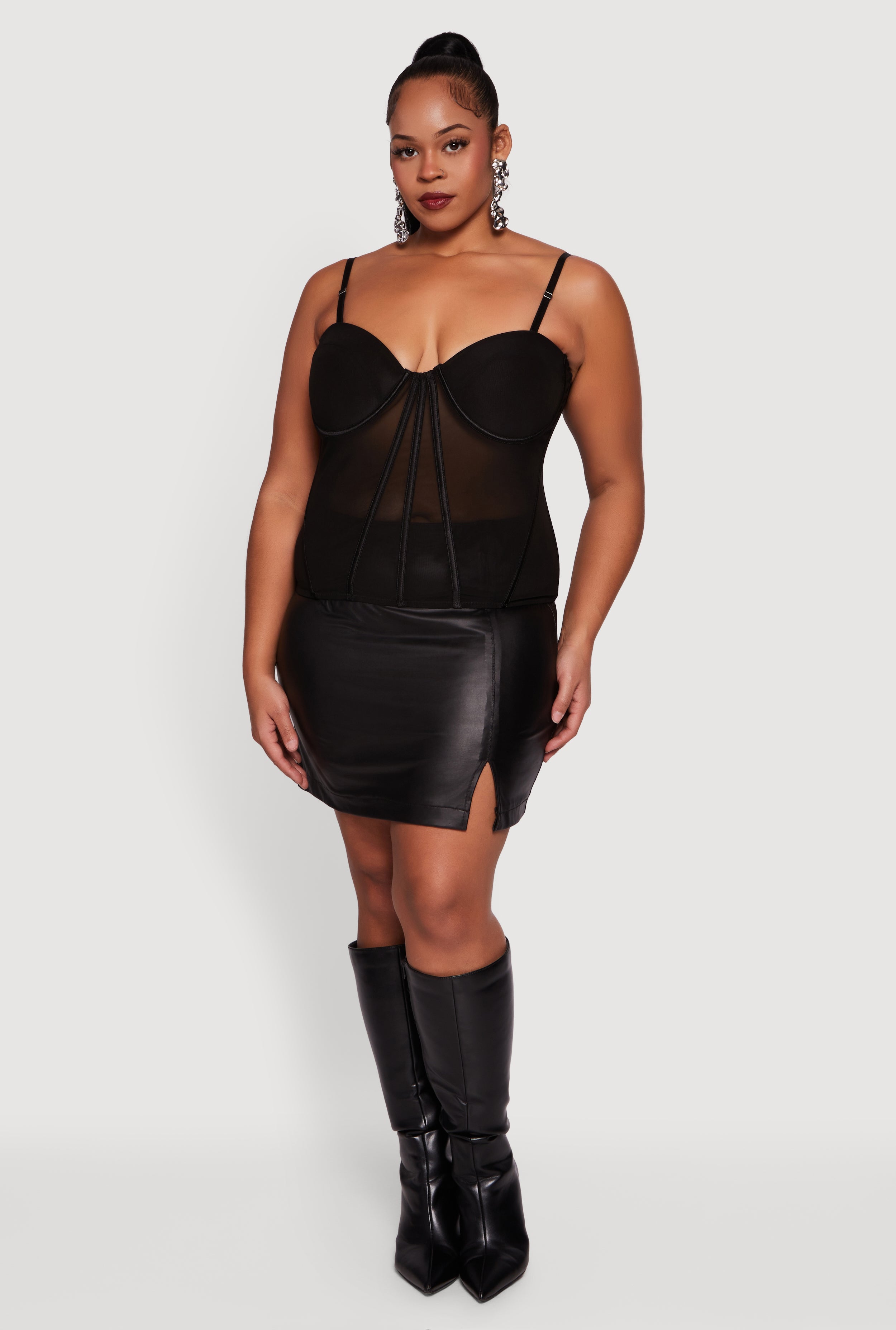 Turn heads and feel unstoppable in this Plus Size Sleeveless Sweetheart Mesh Bustier Top. Designed to hug your curves in all the right places, this mesh beauty combines flirty charm with built-in support for a flawless fit. Whether you’re hitting the club or owning the party, the convertible strapless style and padded cups keep you comfortable and confident all night long.