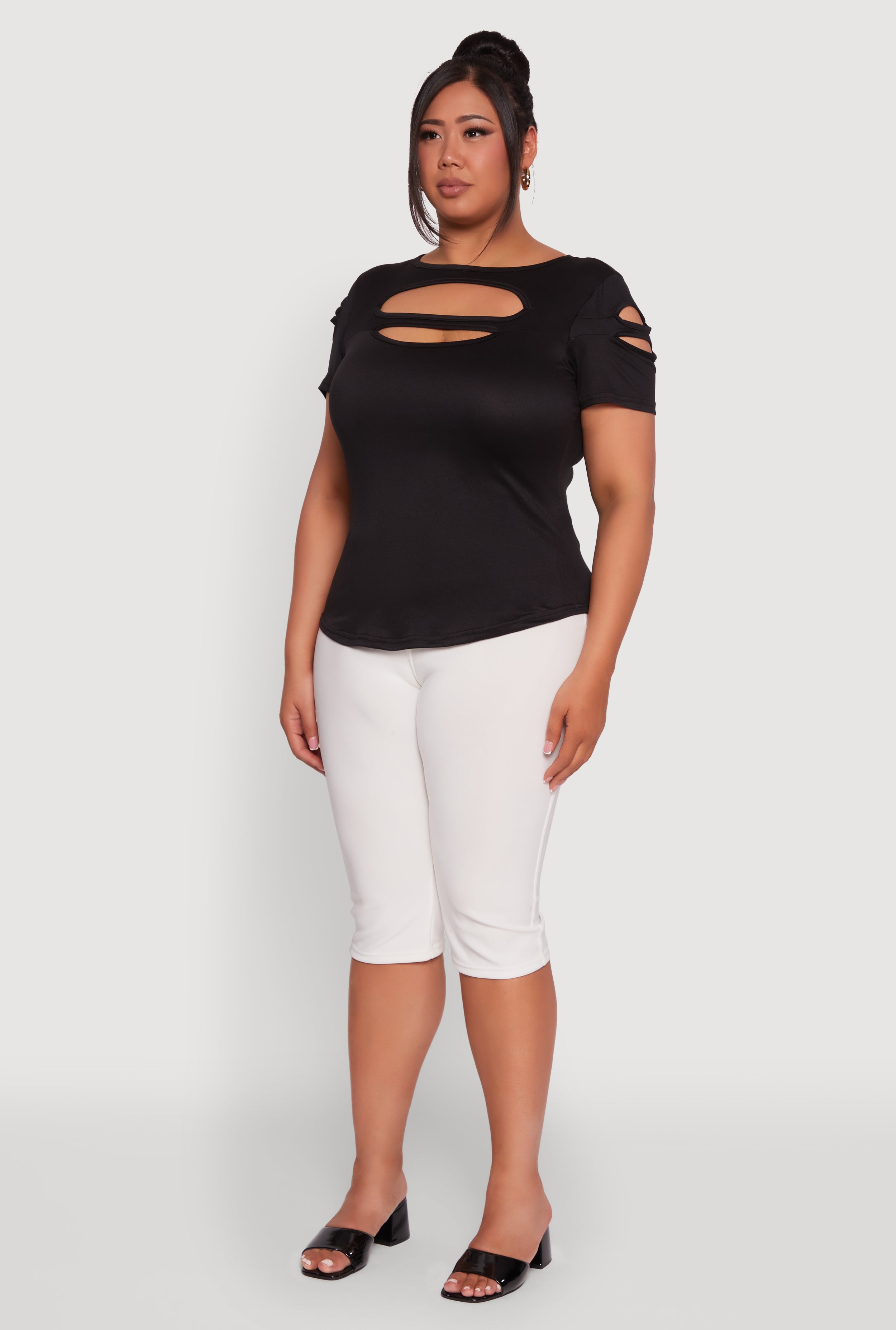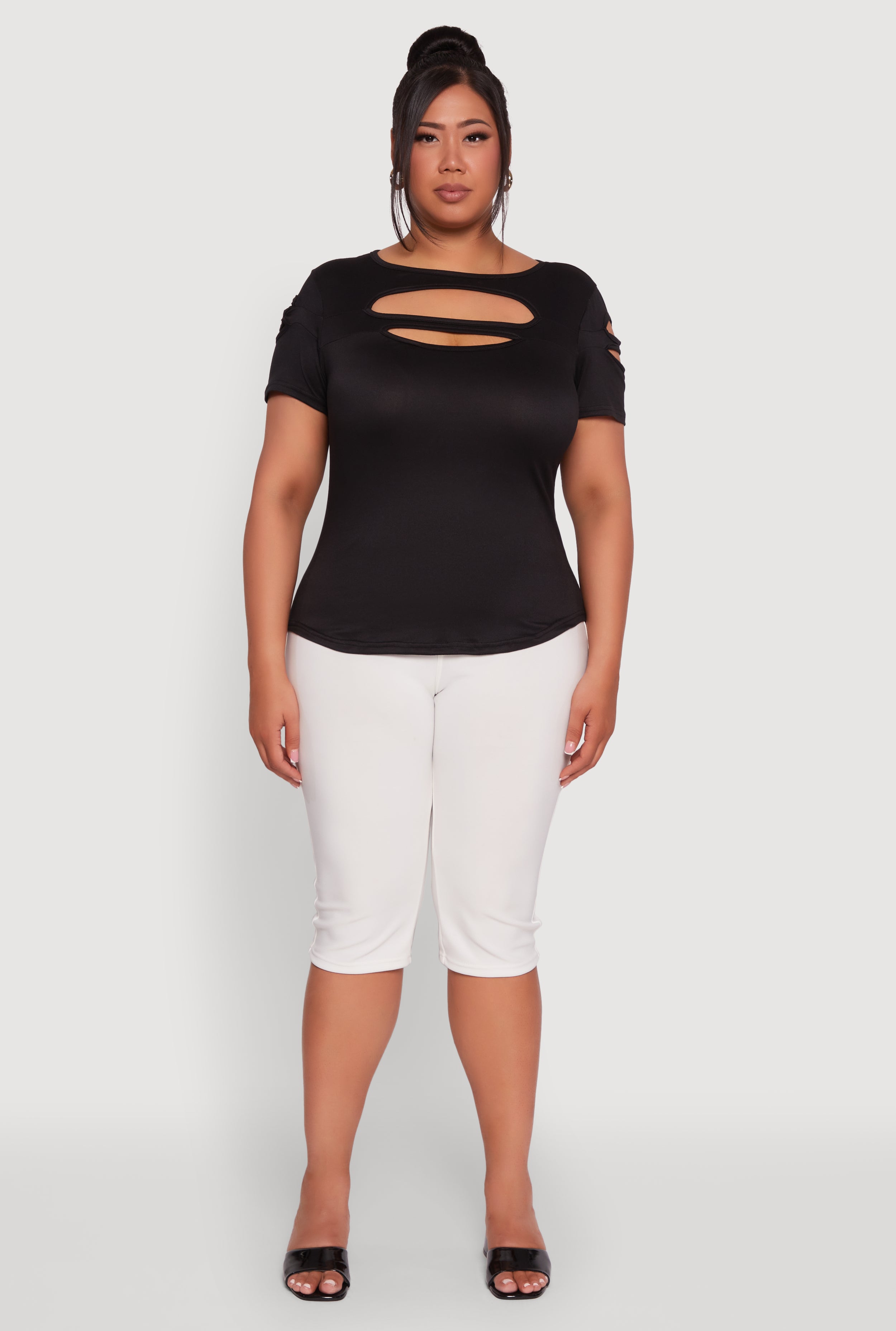Plus Size Solid Double Keyhole Crew Neck T-Shirt