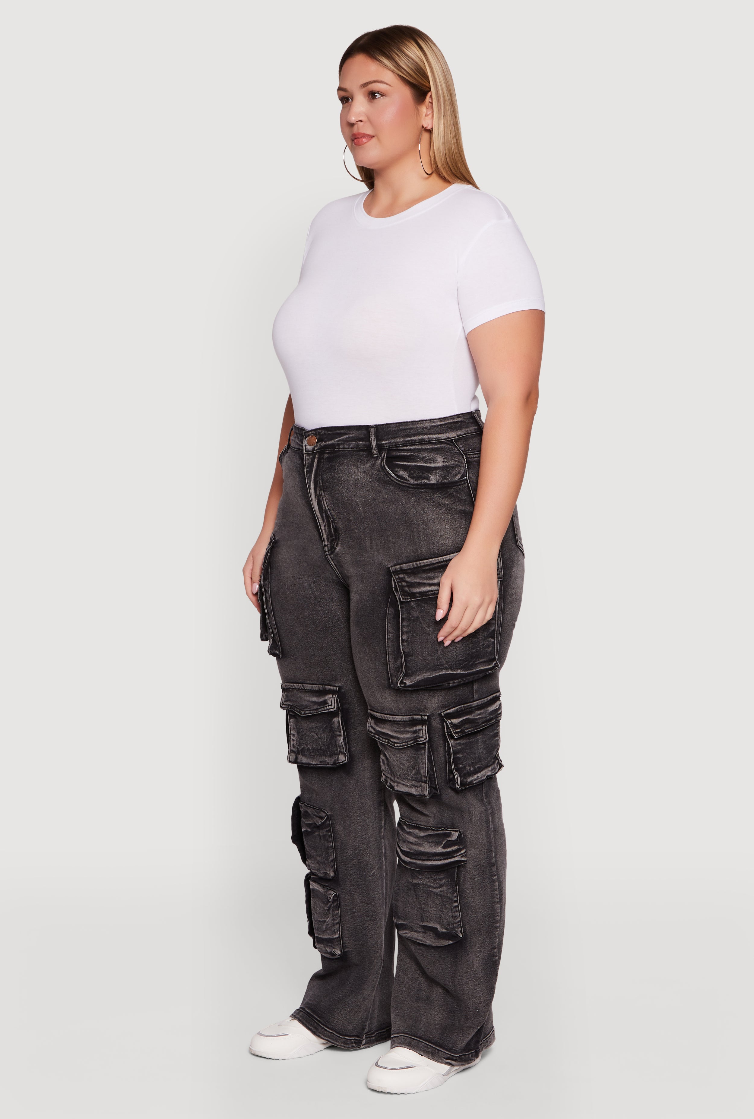 Step up your casual game with these Plus Size Straight Leg Utility Jeans designed to blend comfort and style effortlessly. Crafted from durable denim, these mid rise jeans offer a classic fit that flatters your curves without sacrificing ease of movement. The straight leg cut keeps things timeless, while the cargo pockets add a cool streetwear vibe and practical storage for your essentials. Perfect for everyday wear, these jeans are your new go to for laid back looks that never compromise on trend.