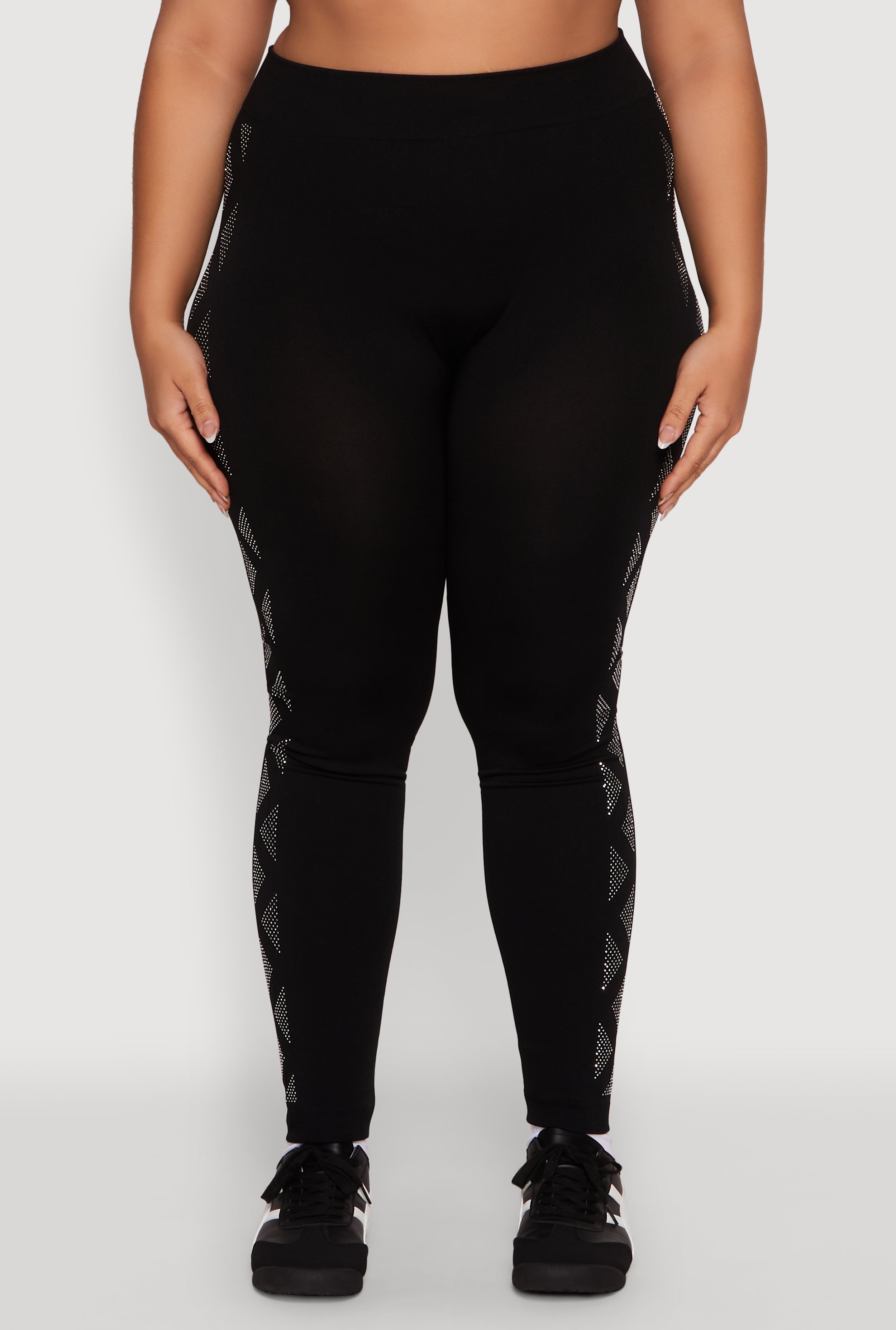 Get ready to turn heads with our Plus Size Triangle Rhinestone Seamless Leggings. Designed for those who love to shine and feel confident, these leggings are the perfect blend of sparkle and comfort. Whether you're hitting the gym, running errands, or just lounging in style, these leggings will keep you looking fabulous all day long. The high waist provides a flattering fit, while the rhinestone details add just the right amount of glam. Elevate your activewear game and embrace your bold side with these must-have leggings.