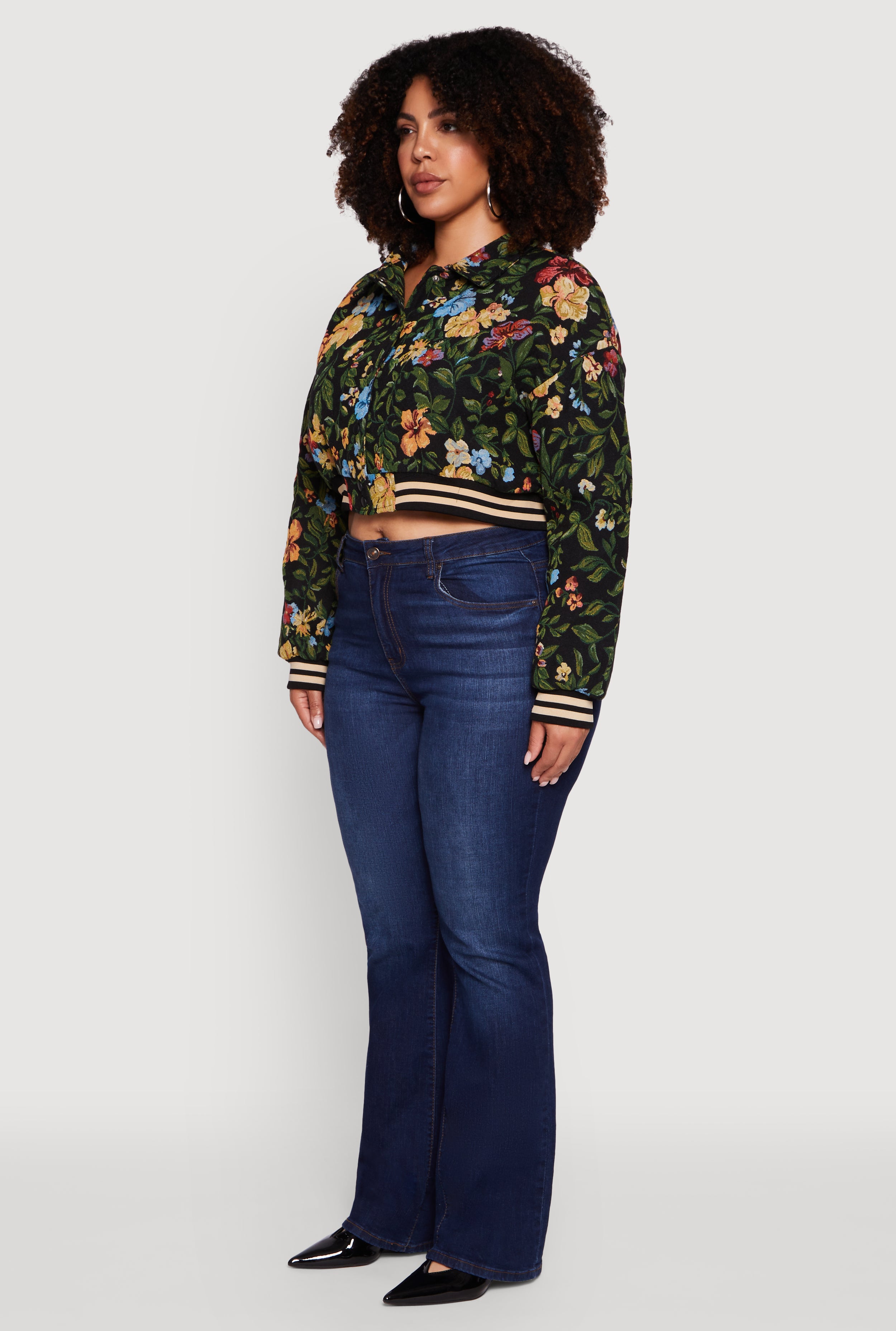 Step up your casual game with this Plus Size Varsity Stripe Floral Print Cropped Jacket. Designed to blend sporty vibes with a fresh floral twist, it’s the perfect layer for those days when you want to look effortlessly cool and feel comfy. The button front and classic collar add just the right touch of vintage charm, while the cropped cut keeps it modern and flirty. Whether you’re heading out for brunch or a casual hangout, this jacket is your new go-to for turning heads without trying too hard.