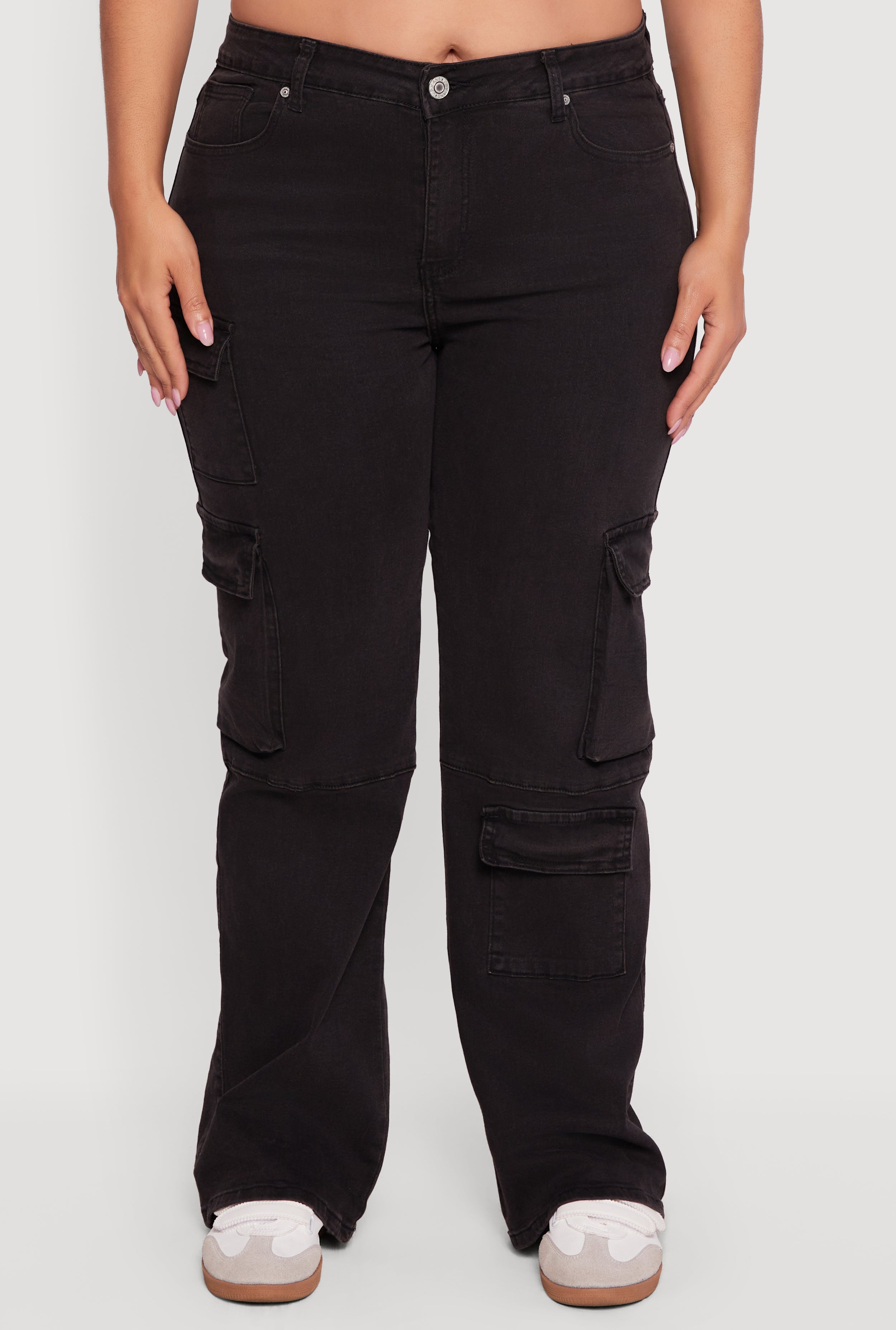 Step up your everyday style with these Plus Size VIP Solid Straight Leg Utility Jeans. Designed with a classic fit and mid rise, these jeans offer comfort and confidence for all-day wear. The straight leg silhouette flatters your curves while the solid denim fabric keeps it versatile for any casual occasion. Plus, the handy cargo pockets add a cool, functional edge to your look. Perfect for those who want style and practicality without breaking the bank.