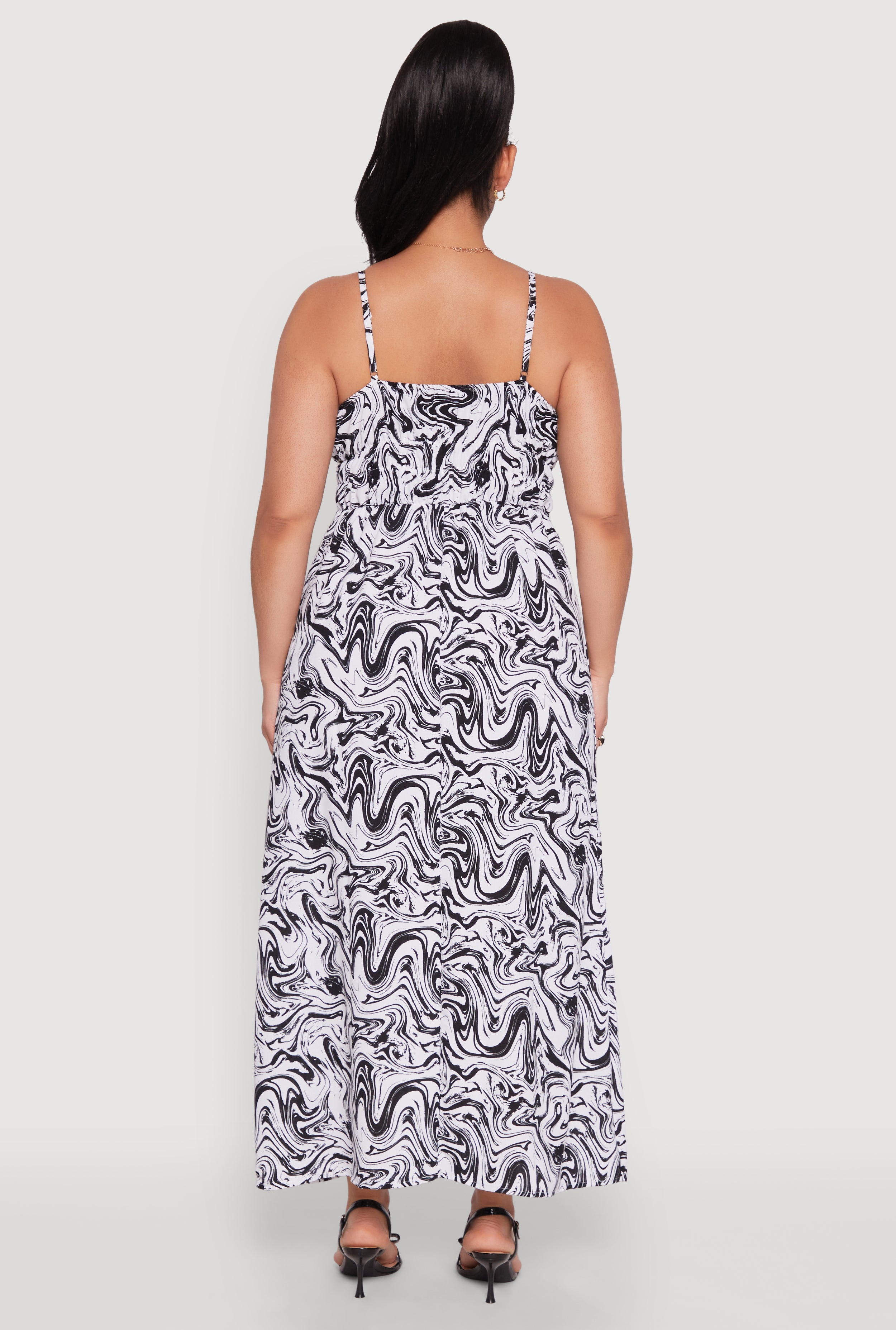 Step into effortless style with our Plus Size Airy Swirl Print Empire Waist Dress. Perfect for casual days or weekend outings, this long-length dress combines comfort with a timeless silhouette that flatters every curve. The breezy crepe knit fabric keeps you cool and confident, while the sleeveless design and V-neck add a touch of playful elegance. Whether you're lounging or stepping out, this dress is your new go-to for laid-back chic.
