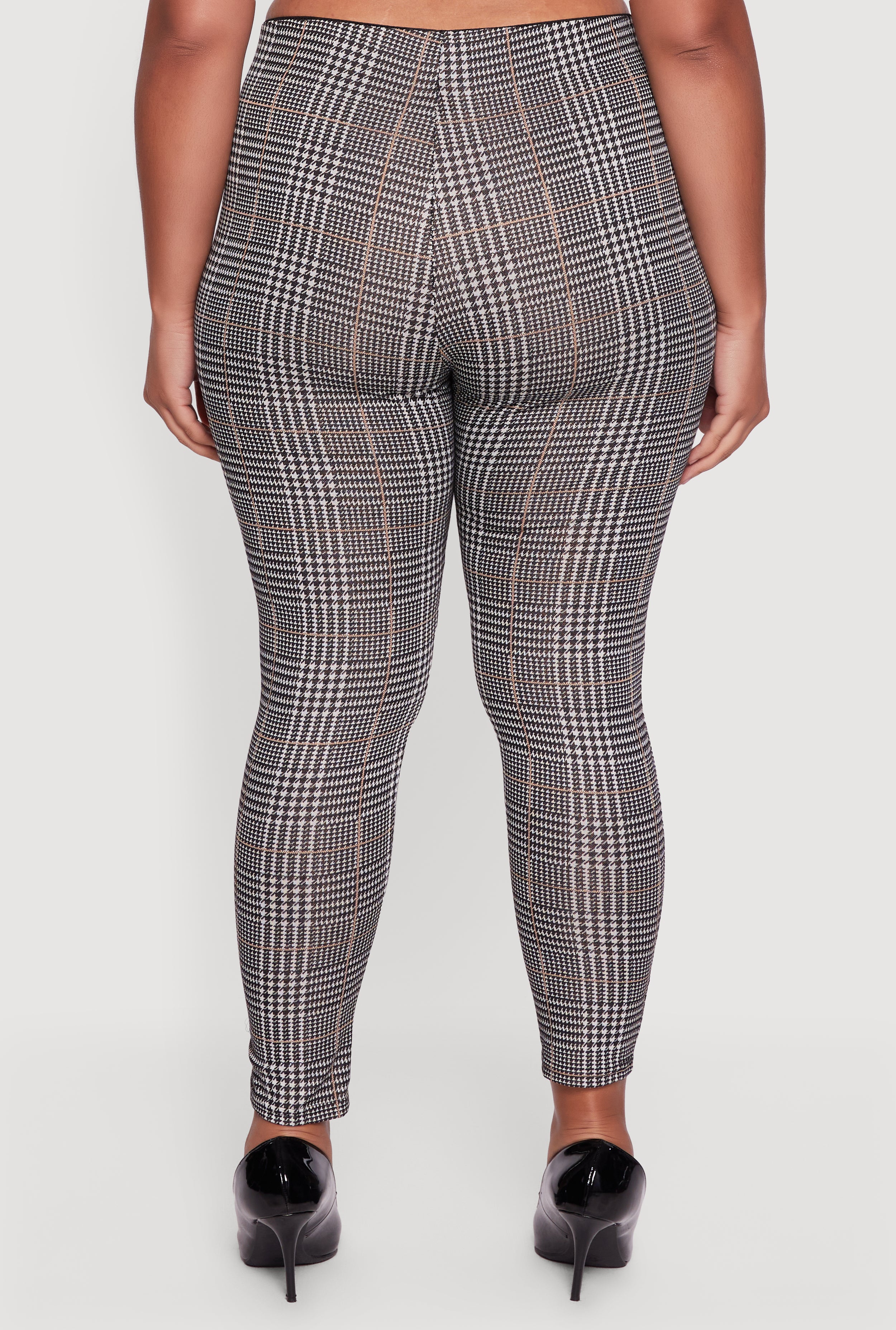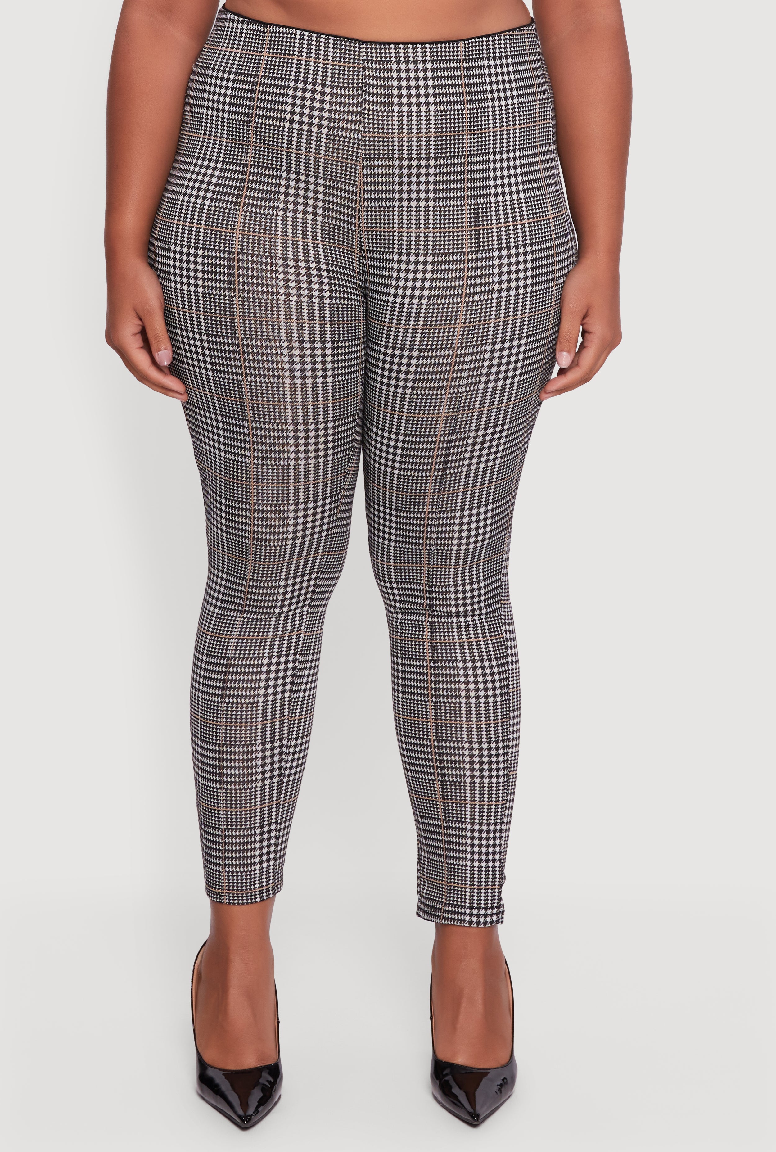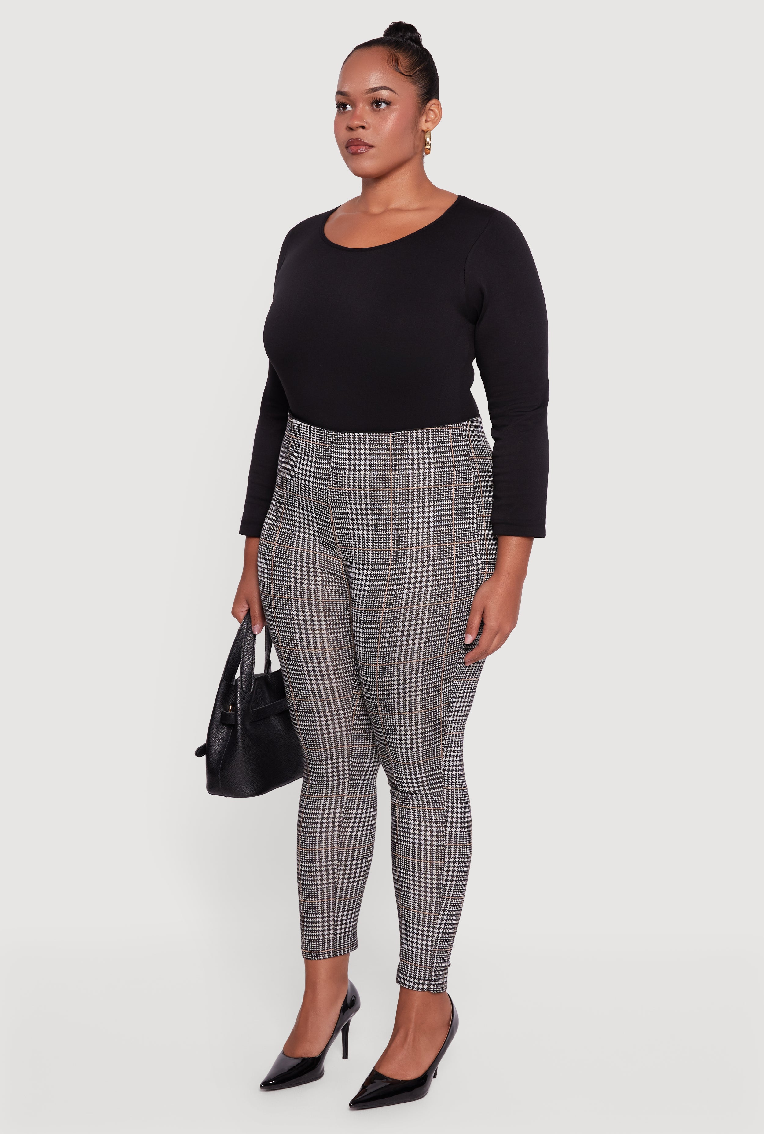 Step up your style game with these Plus Size Houndstooth Plaid High Waisted Dress Pants. Designed to flatter your curves with a sleek skinny-leg fit and ankle length, these pants are perfect for dressing up your office look or turning heads on a night out. The classic houndstooth pattern adds a timeless touch while the high waist and elastic waistband ensure comfort and confidence all day long. Easy to pull on and pair with your favorite tops, these dress pants are a must-have for any fashion-forward wardrobe.