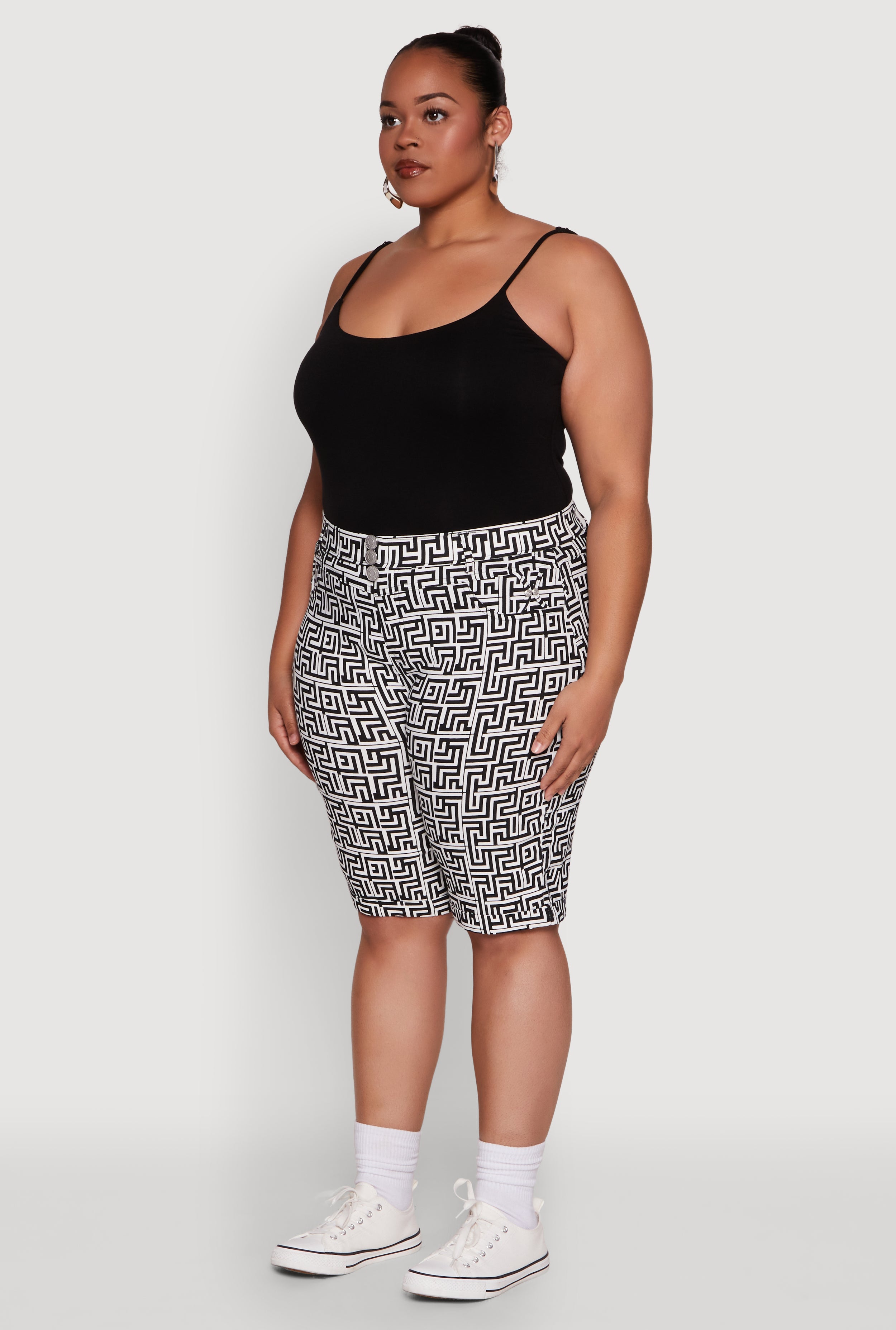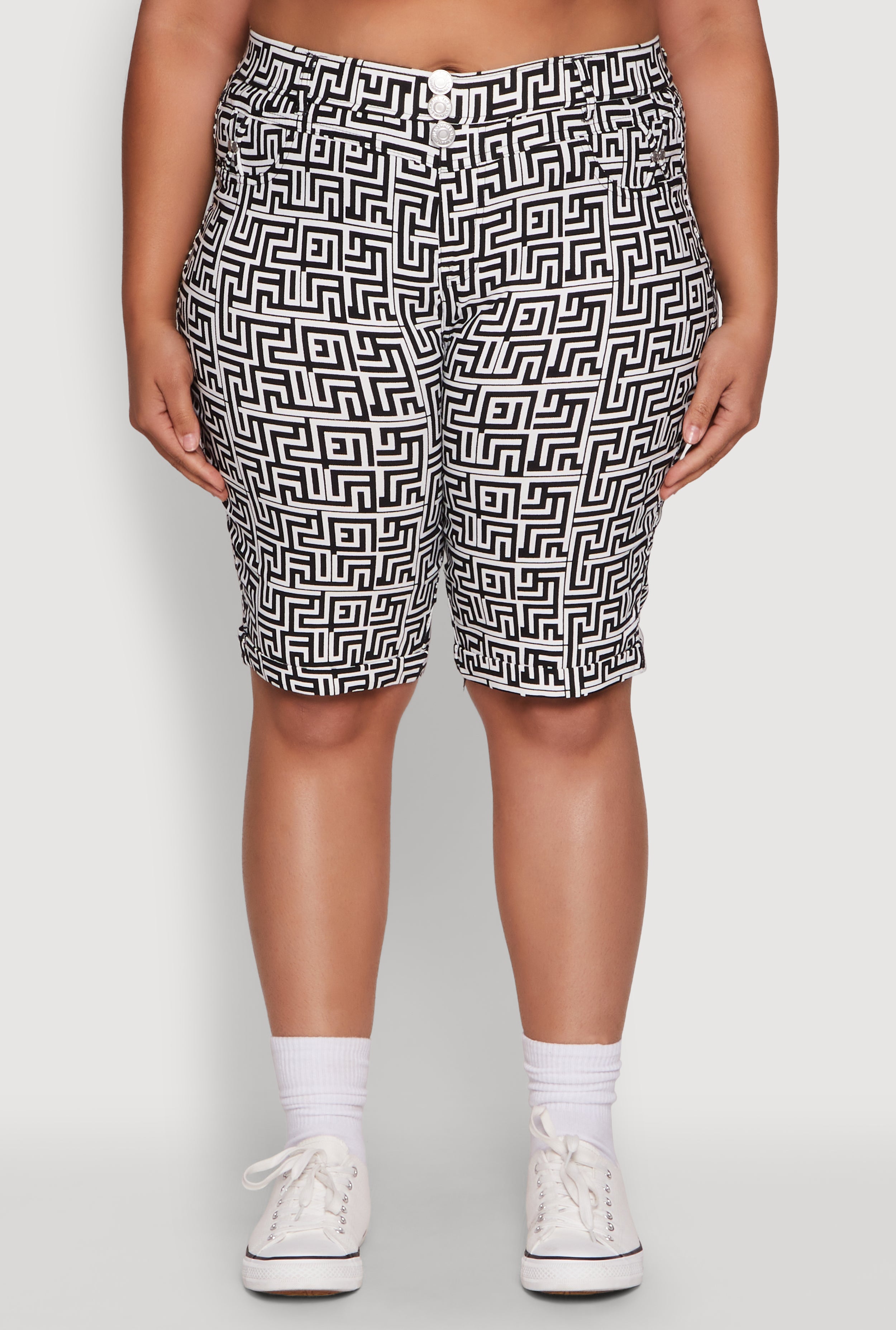 Step into summer with confidence and style in our Plus Size Trendy High Waisted Bermuda Shorts. Featuring a chic printed pattern and a flattering high waist, these shorts are your new go-to for effortless cool. Whether you're out with friends or just enjoying a sunny day, these Bermuda shorts combine comfort and trendiness in one perfect package. Made with stretch fabric and faux buttons for added flair, they’re designed to keep you looking fabulous all day long.