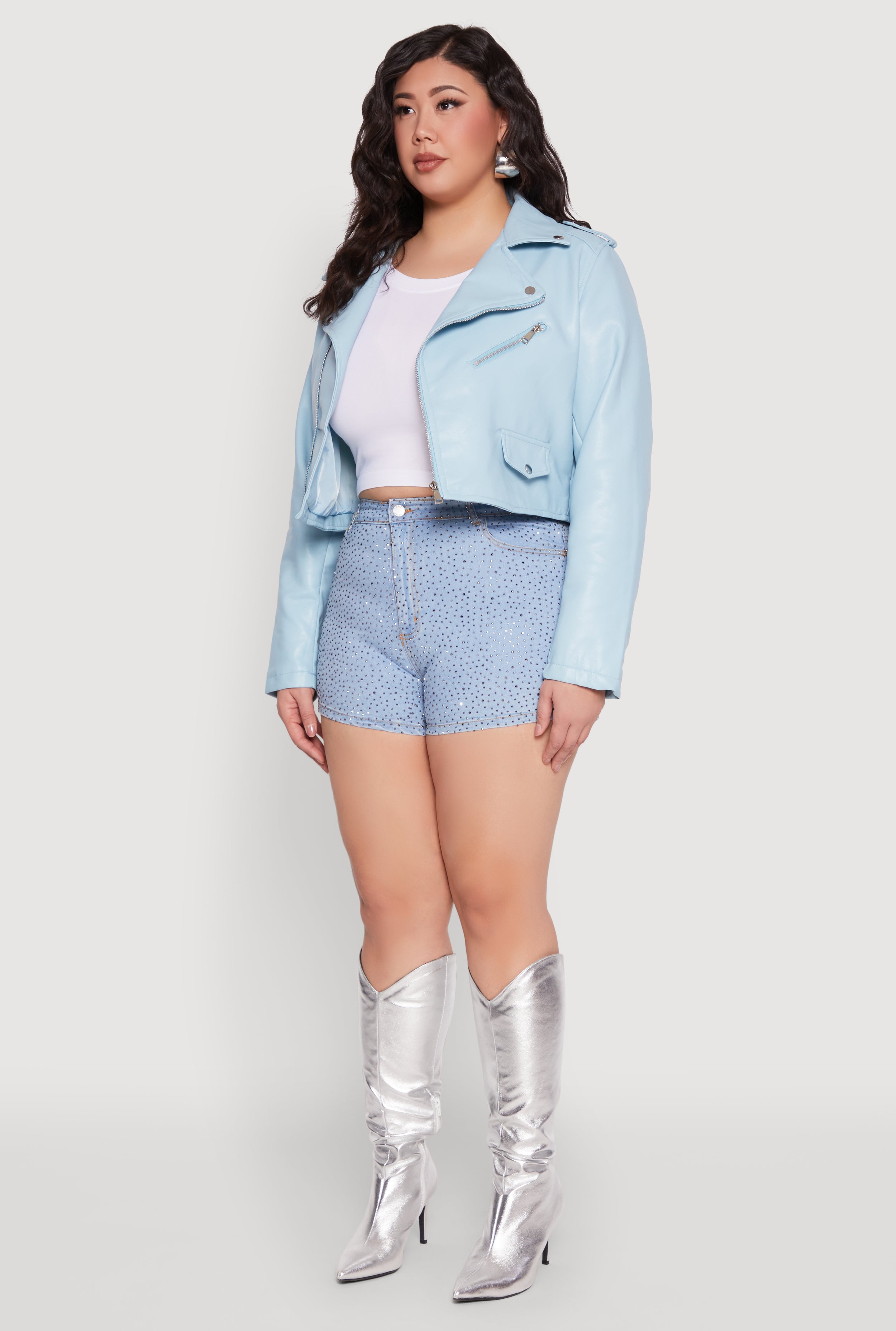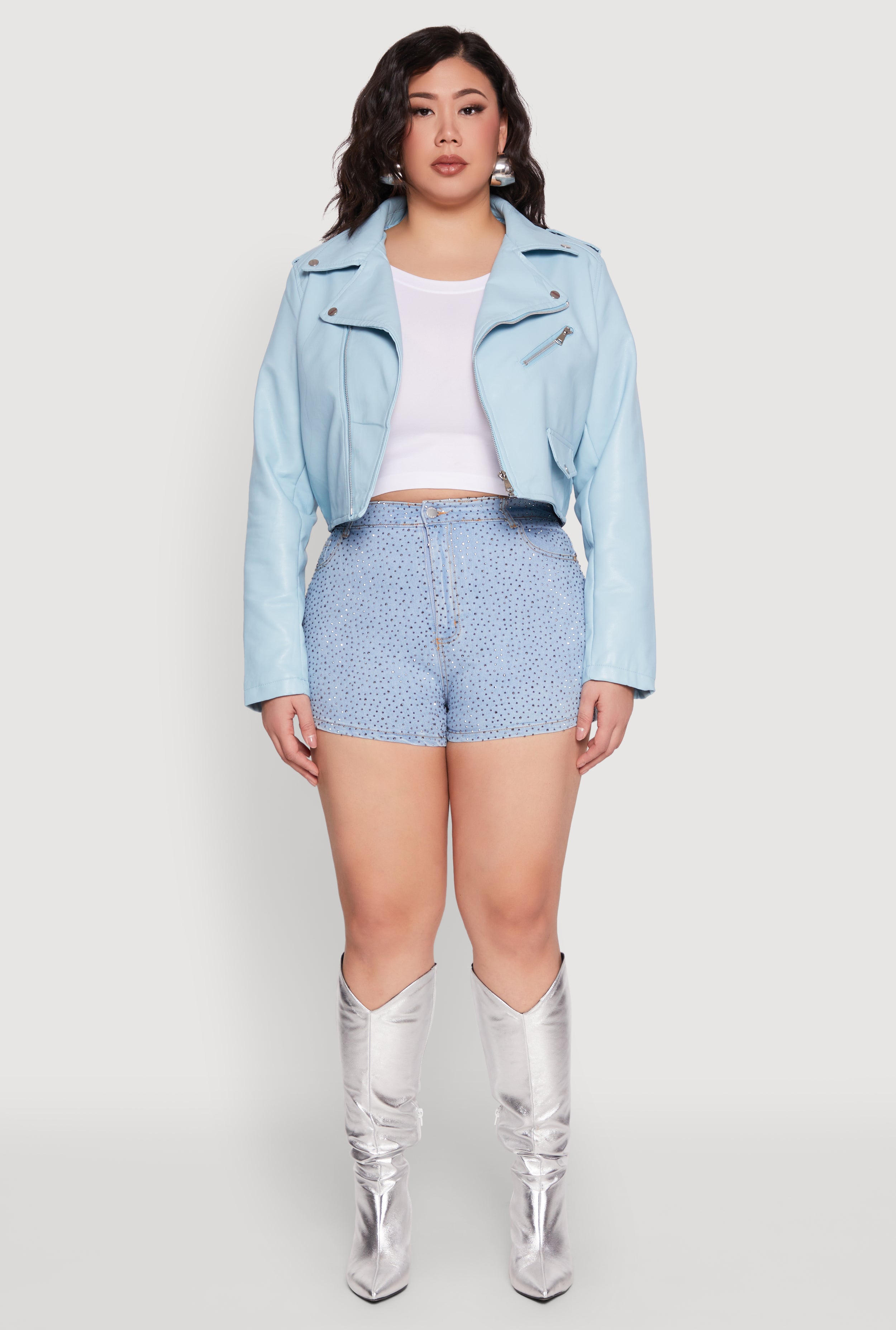 Plus Size Daisy Faux Leather Cropped Moto Jacket