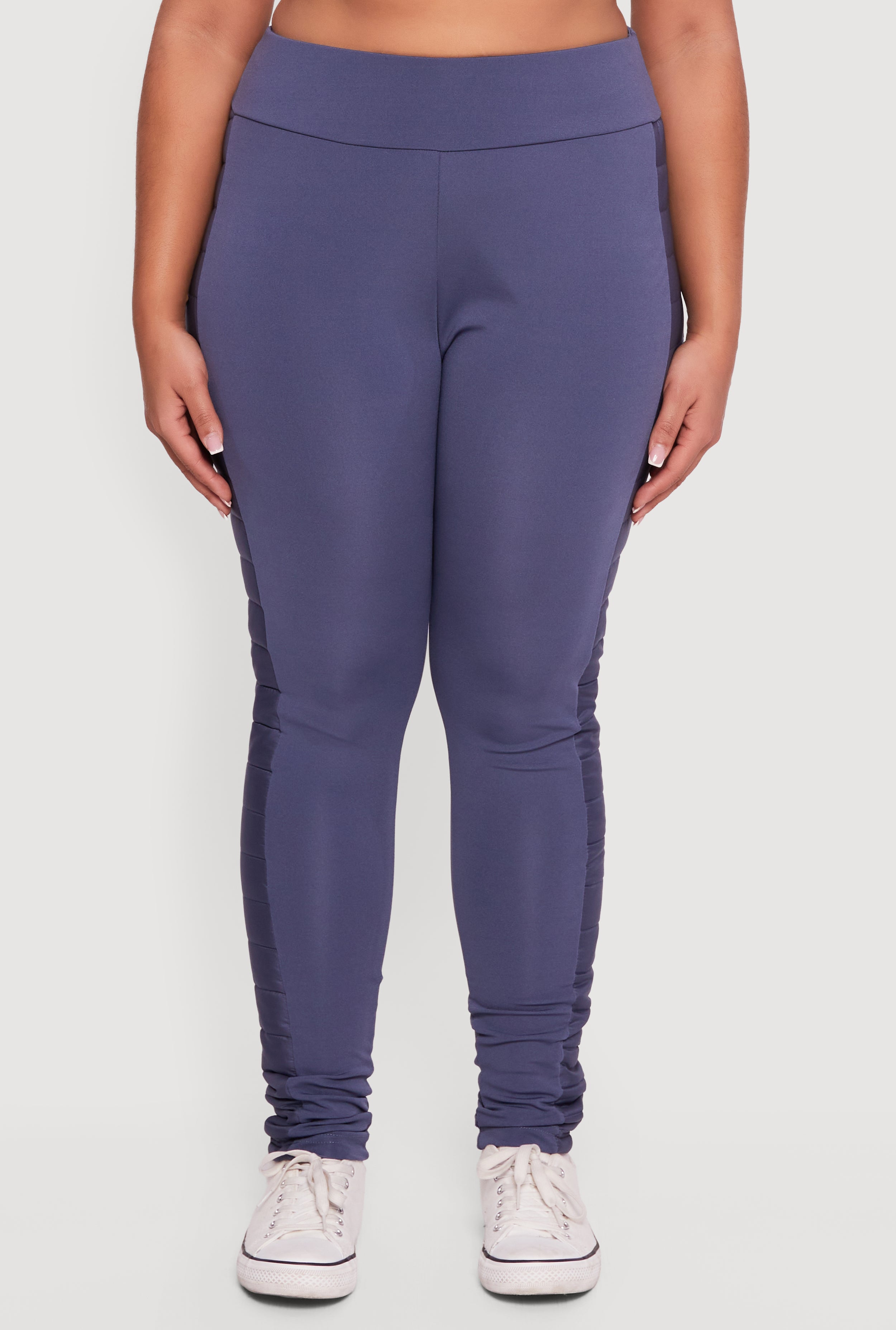 Step up your casual game with these Plus Size Puffer Detail Side Leggings. Designed with a high waist and skinny leg fit, they hug your curves while giving you that trendy quilted puffer detail along the sides for a fresh twist on classic leggings. Perfect for lounging, running errands, or adding a sporty edge to your athleisure look, these leggings combine comfort and style without breaking the bank.