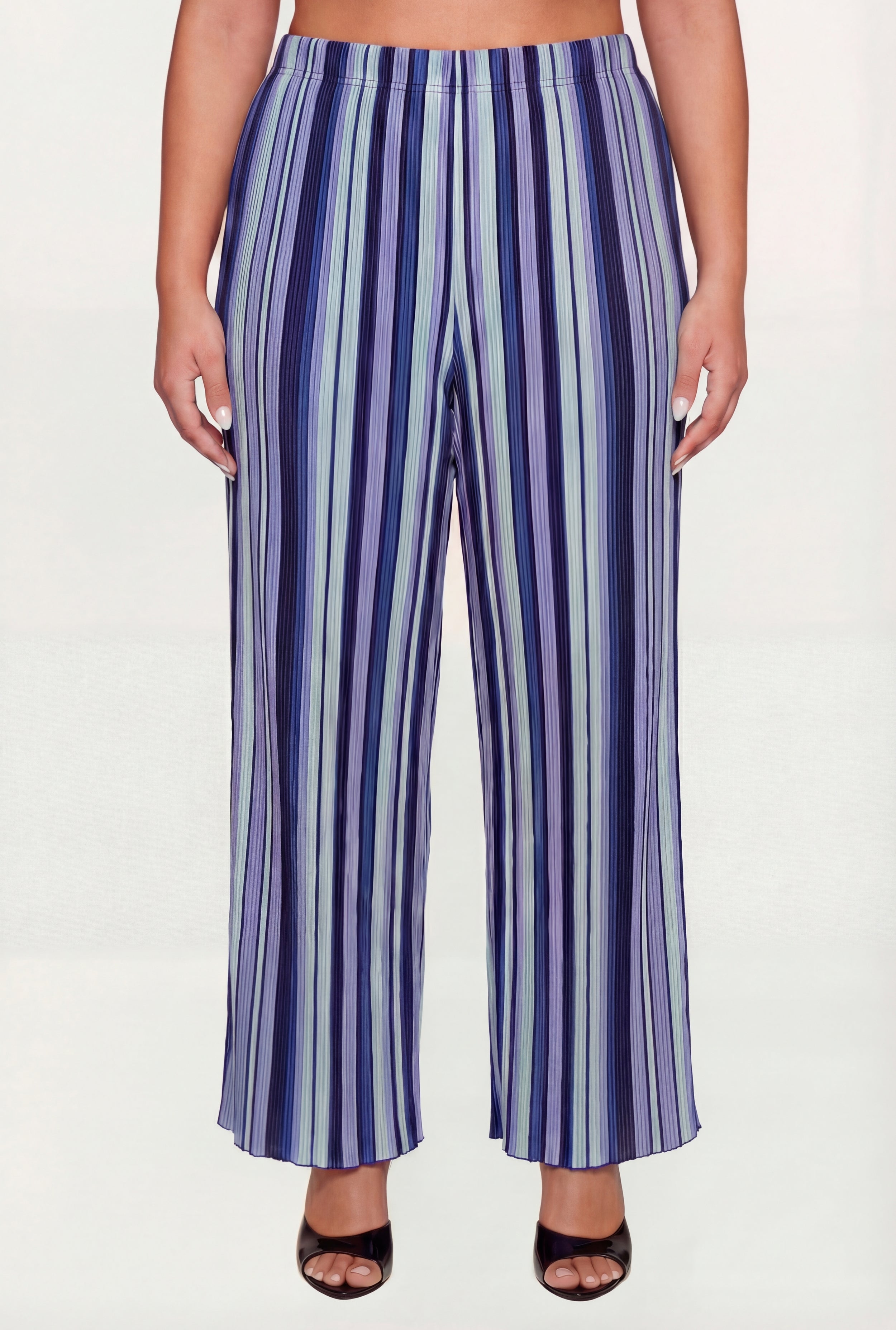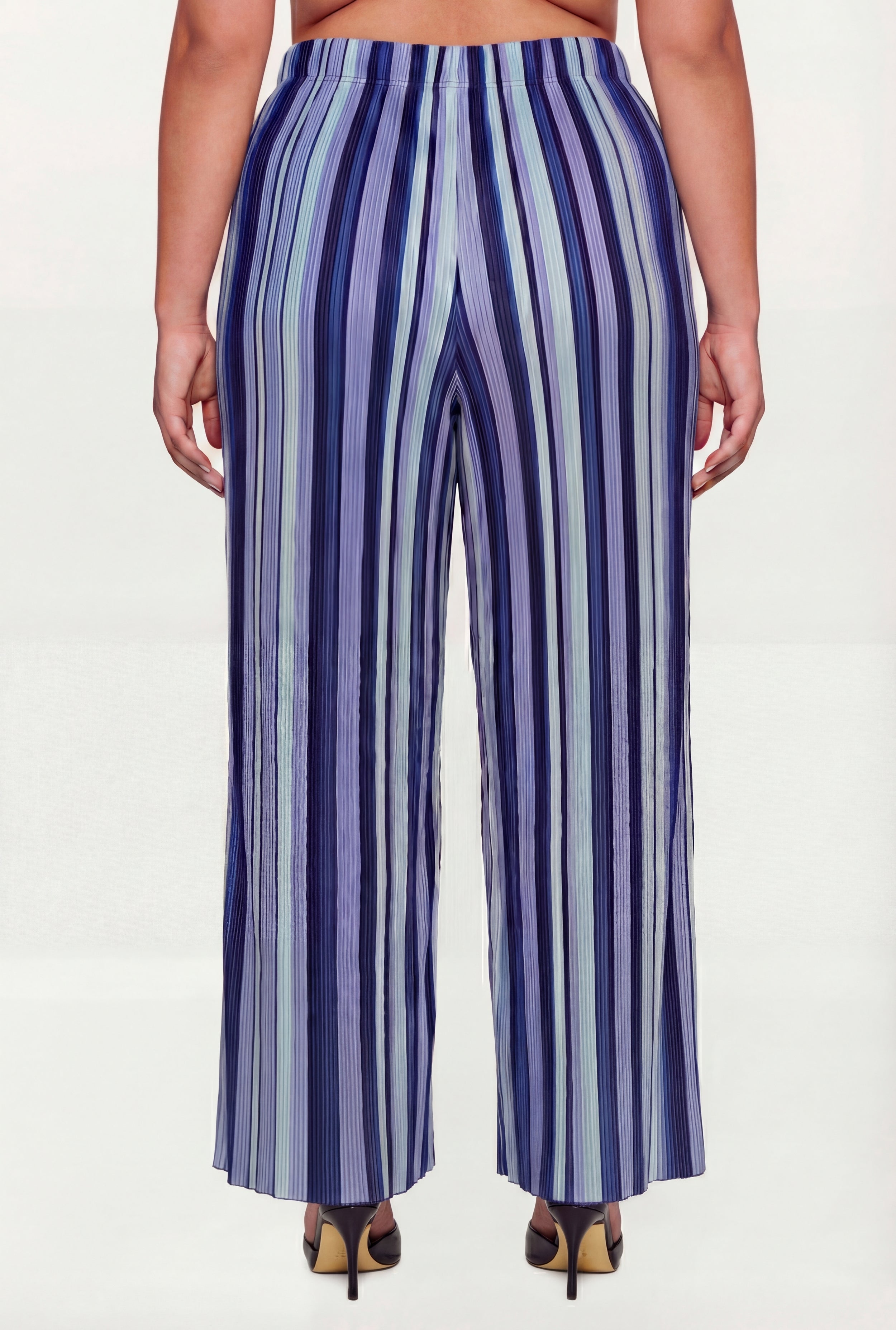 Plus Size Striped Plisse Wide Leg Pants