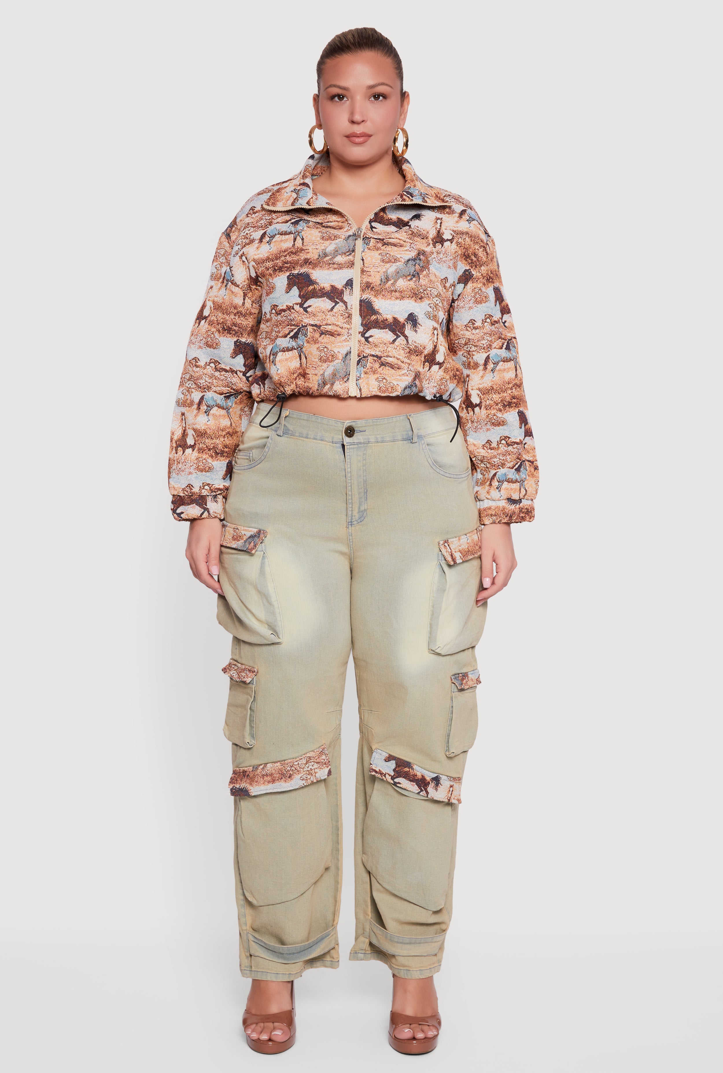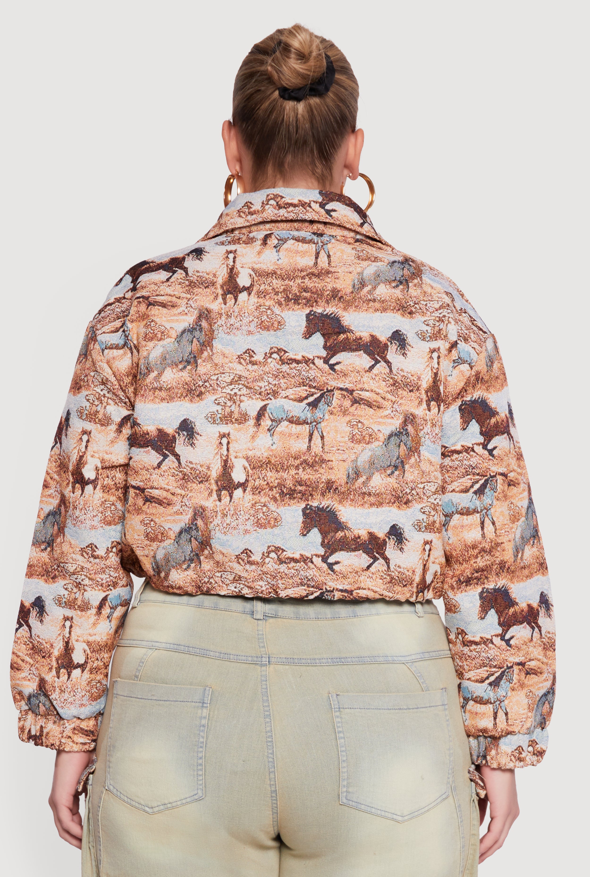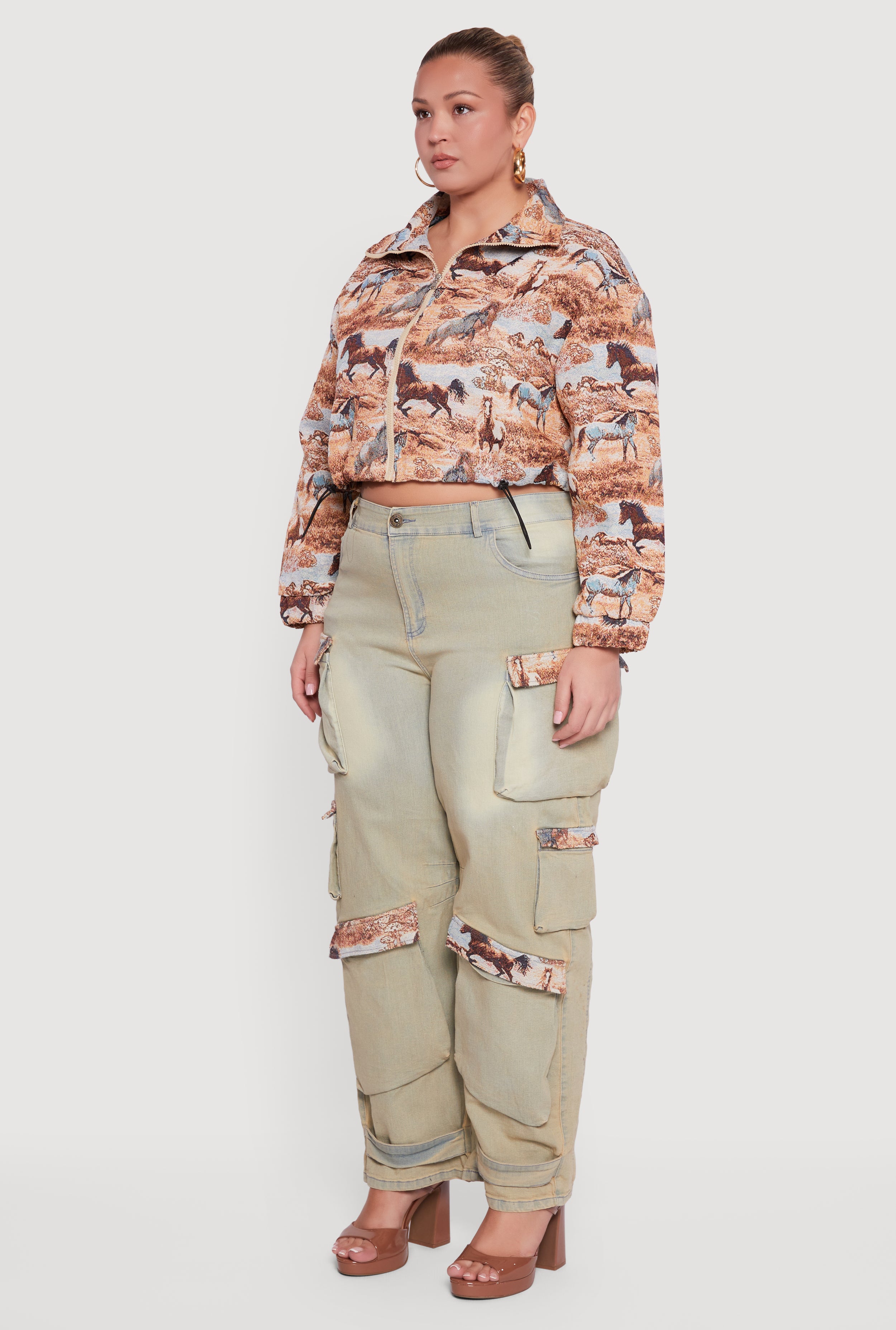 Elevate your casual look with this Plus Size Tapestry Jacquard Cropped Jacket, designed to add a touch of texture and style to your wardrobe. Featuring a chic collar and a trendy cropped cut, this jacket brings effortless cool with its intricate jacquard pattern. The zip front closure and toggle drawstring hem let you customize your fit while keeping things comfy and practical. Perfect for layering over your favorite outfits and making a statement wherever you go.