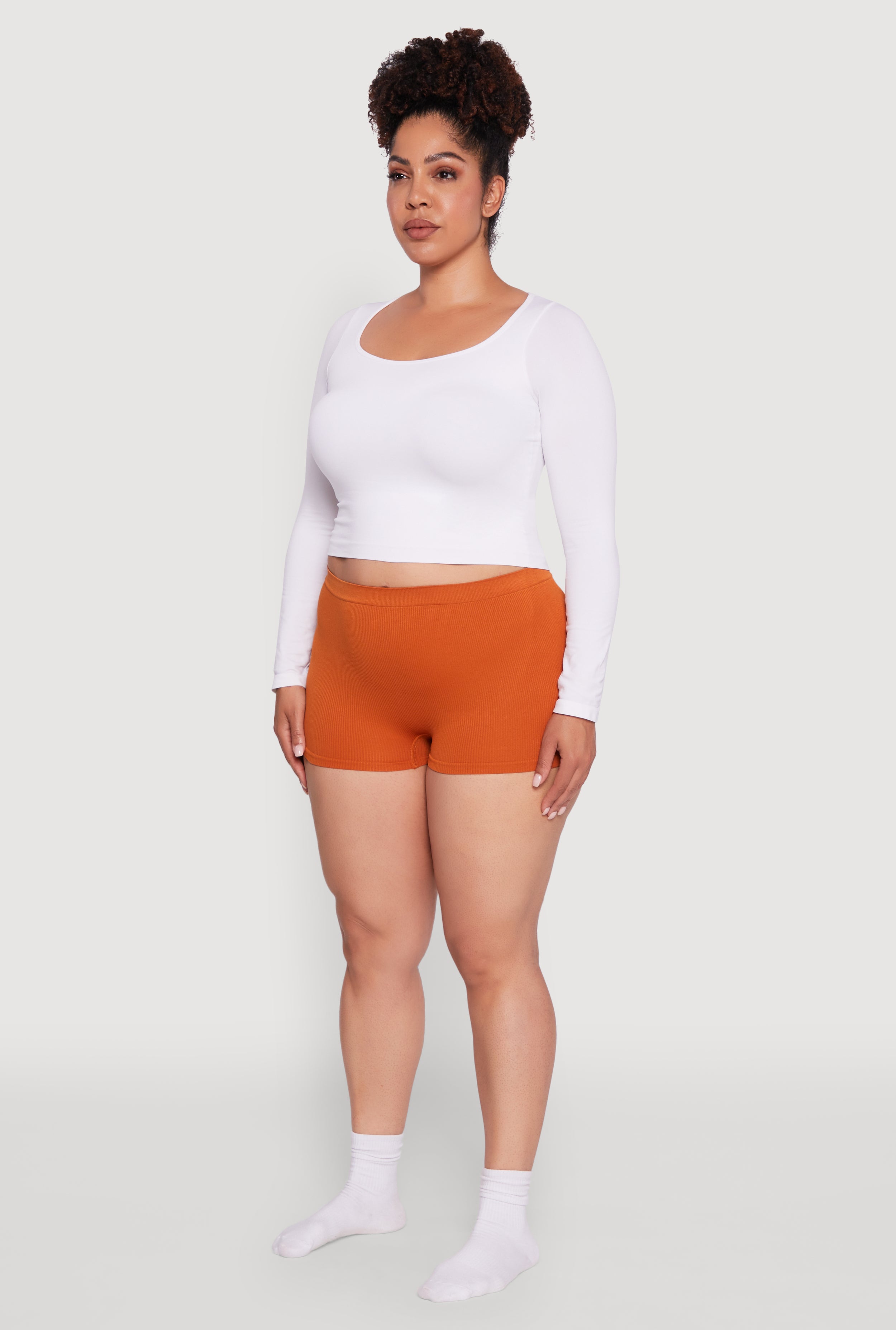 Slip into comfort and confidence with thesePlus Size Seamless High Waisted Ribbed Knit Boyshort Panty. Designed to hug your curves in all the right places, these boy shorts offer a smooth, seamless fit that stays invisible under your favorite outfits. The high waist adds a flattering touch, giving you that sleek silhouette you crave without sacrificing comfort. Perfect for everyday wear or when you want to feel effortlessly put together, these panties are a must-have staple for your lingerie drawer.