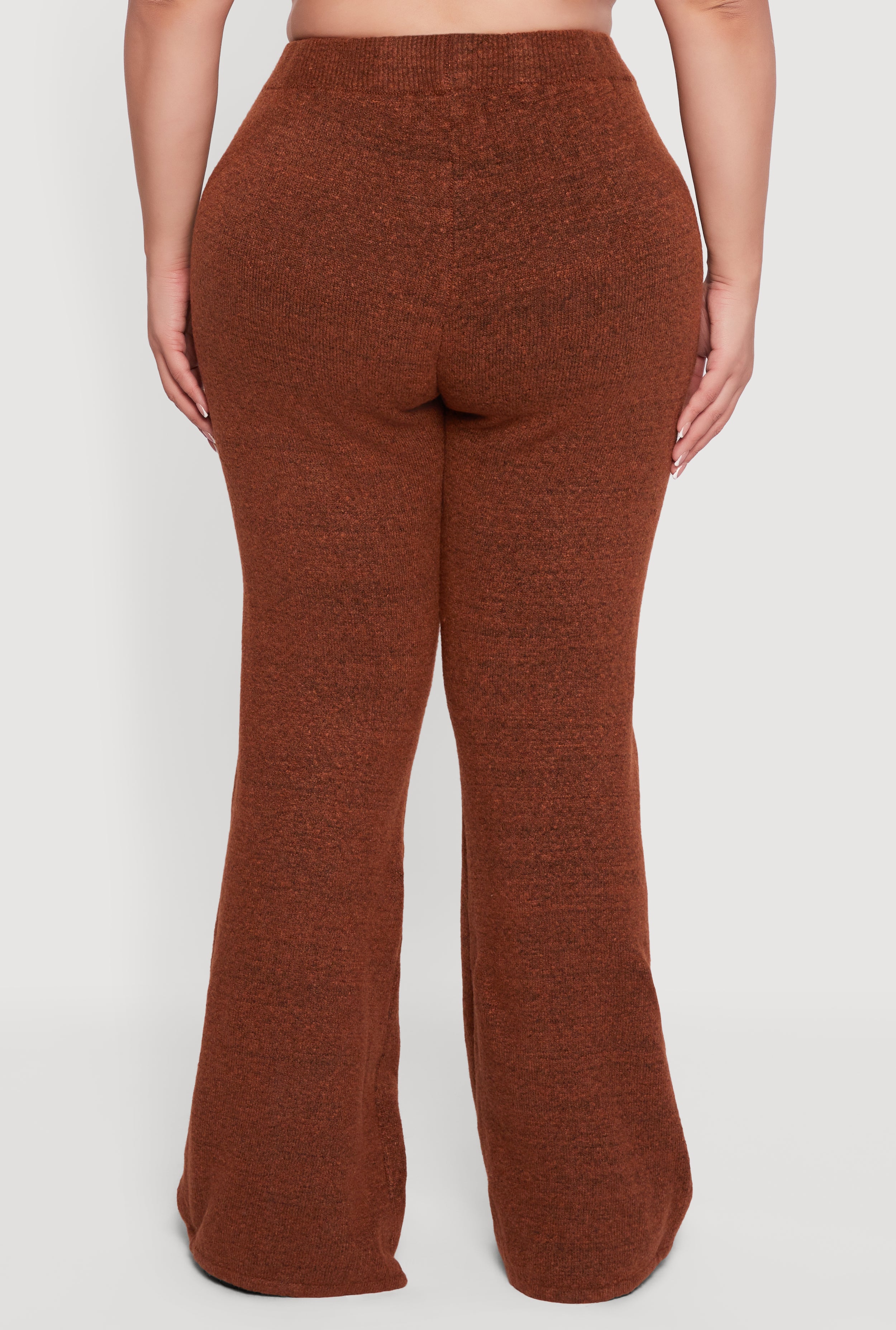 Step out in style and comfort with these Plus Size Almost Famous Brushed Knit Flare Leg Pants. Designed with a high-waisted fit and a relaxed silhouette, these pants bring effortless casual vibes with a touch of retro flair. The soft brushed knit fabric feels cozy against your skin, while the wide flare leg adds a playful twist to your everyday look. Perfect for lounging or running errands, these pants combine fashion and function for your laid-back days.