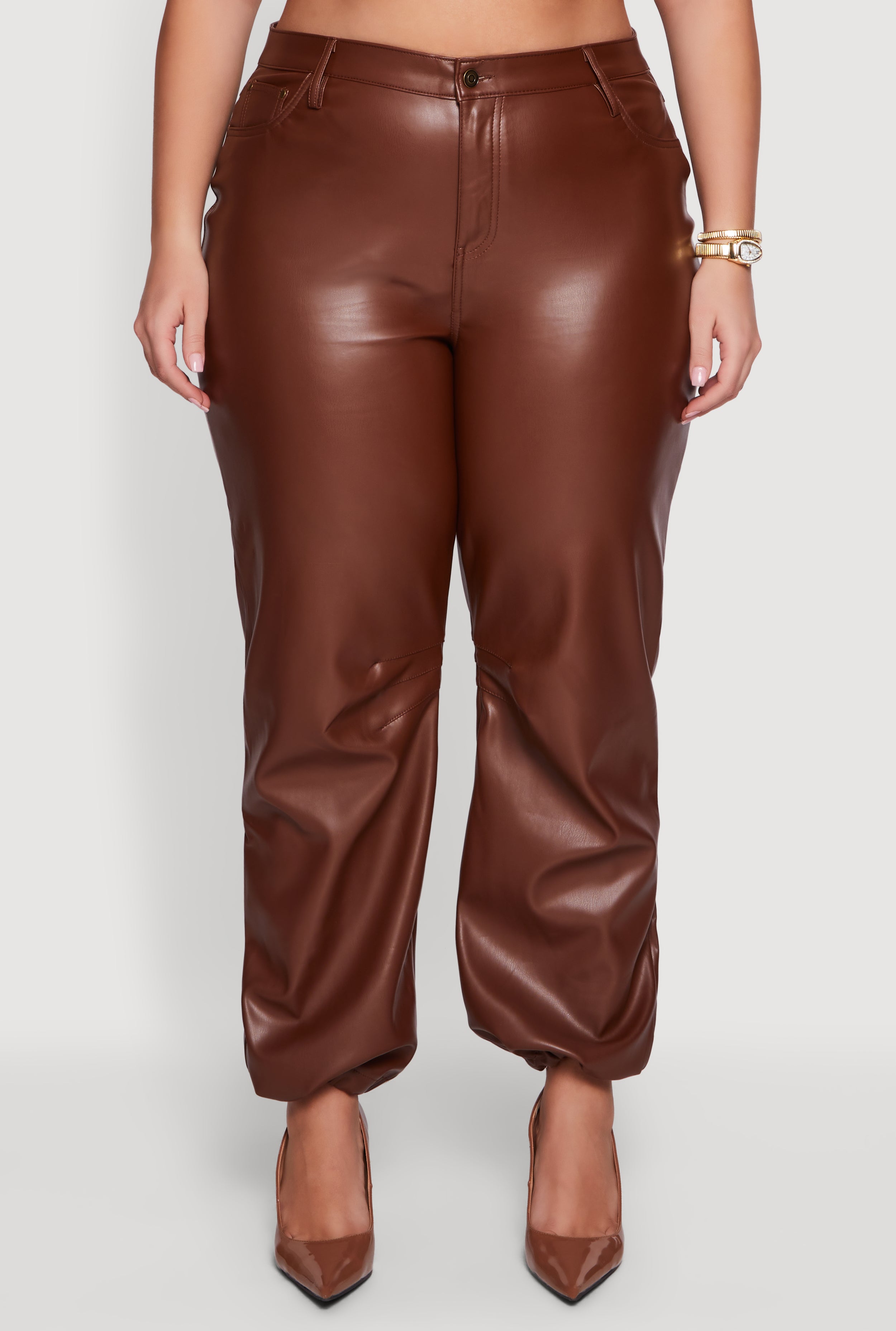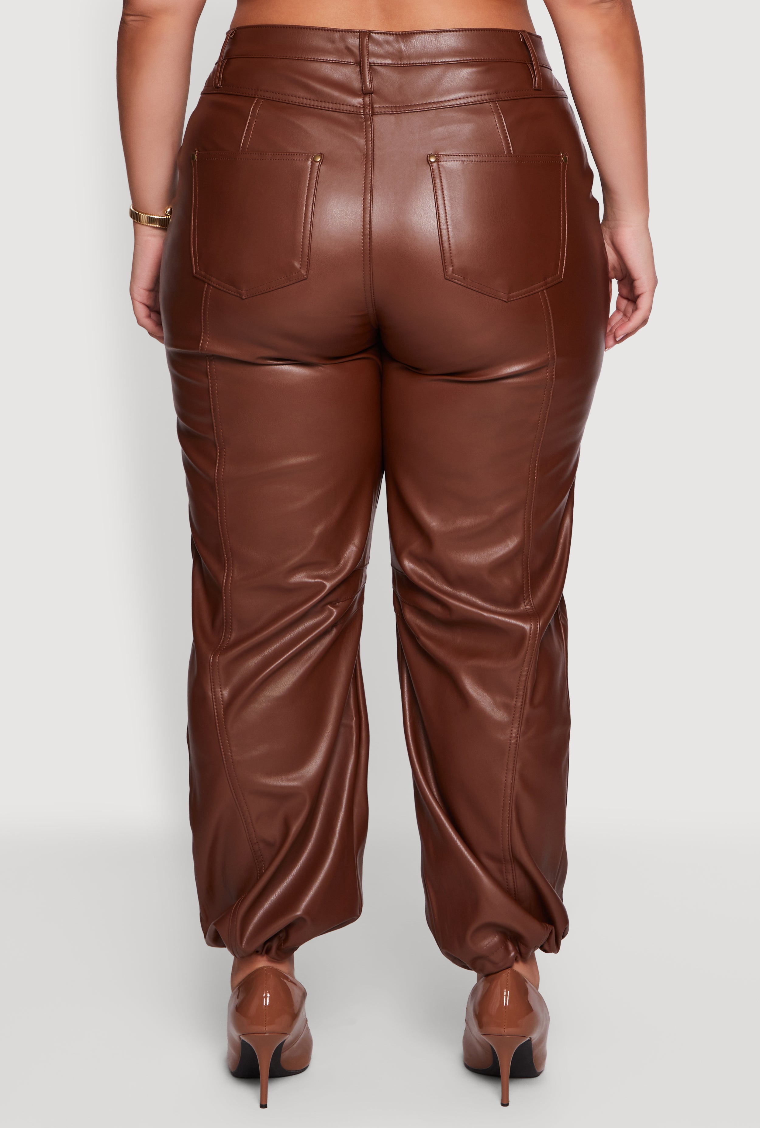 Plus Size Fleece Lined High Waisted Faux Leather Joggers