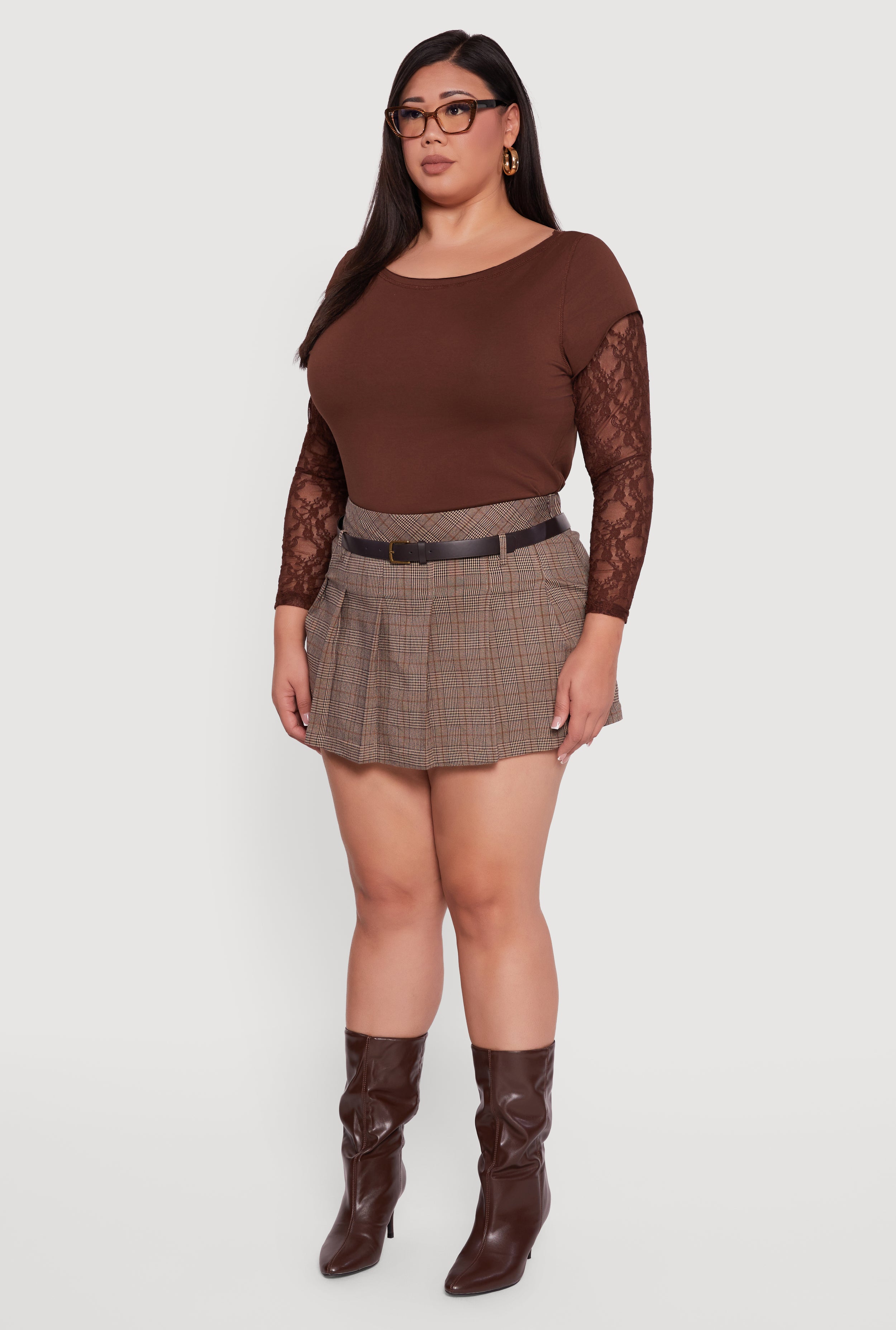 Step up your style game with this Plus Size High Waisted Plaid Pleated Mini Skirt with Belt. Designed to flatter your curves with a classic fit and a high waist that cinches in just right, this skirt brings playful sophistication to your wardrobe. The pleated design adds movement and flair while the included belt lets you customize your look. Perfect for back to school, festivals, or a night out, this skirt blends casual cool with a touch of preppy charm.