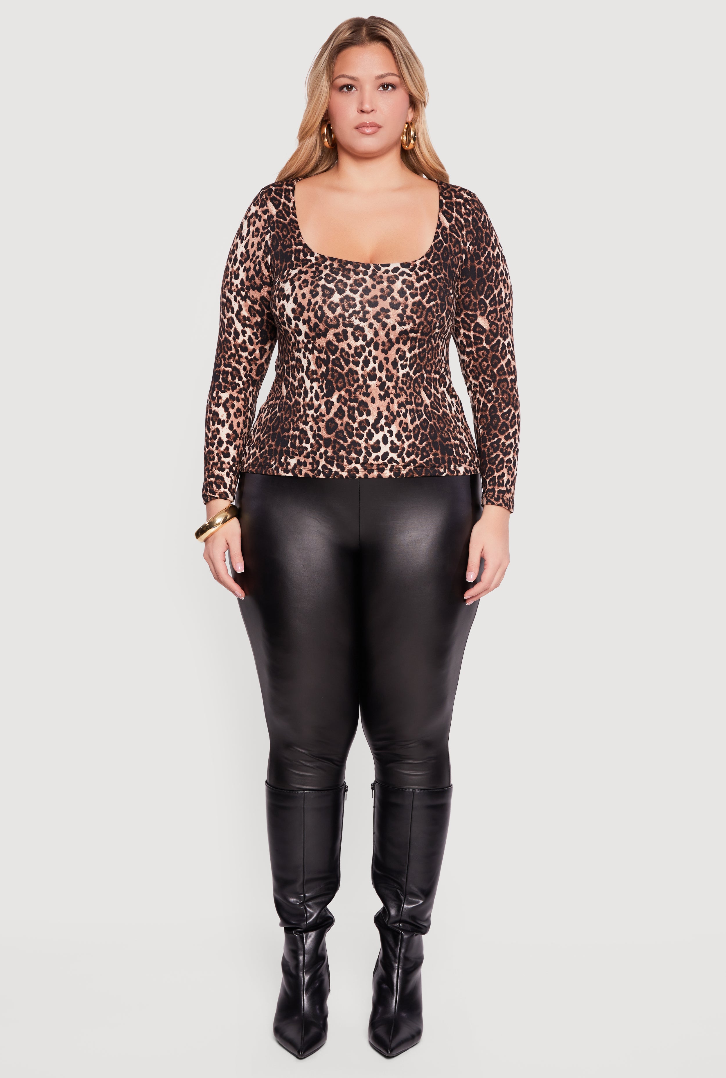 Unleash your wild side with this plus size leopard print blouse designed for effortless style and comfort. Featuring a classic fit and a flattering scoop neck, this long sleeve top is perfect for casual outings or a night out on the town. The timeless animal print adds a bold touch to your wardrobe while keeping things easy and chic.