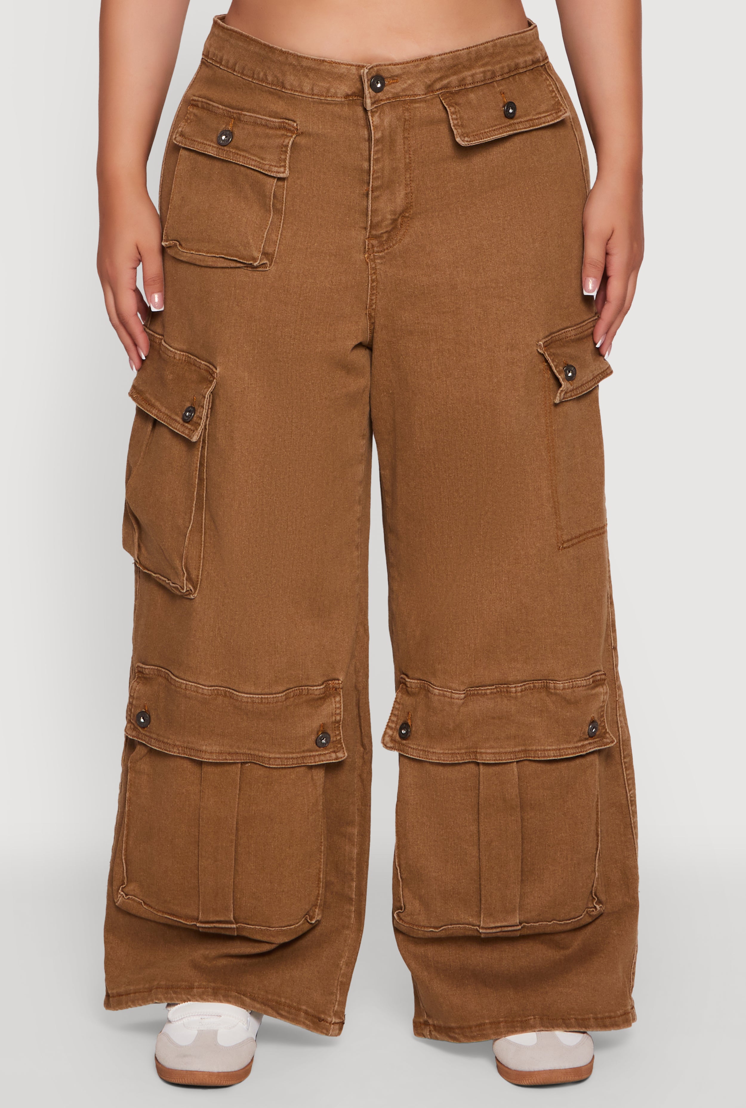 Step into effortless cool with these Plus Size Mineral Wash Wide Leg Utility Jeans. Designed to keep you comfy and stylish all day long, these high-waisted denim wonders feature a relaxed wide leg fit that moves with you. The acid wash finish adds a vintage vibe, while the cargo pockets bring that perfect mix of function and streetwear flair. Whether you're running errands or meeting friends, these jeans are your new go-to for casual, laid-back looks that never compromise on style.