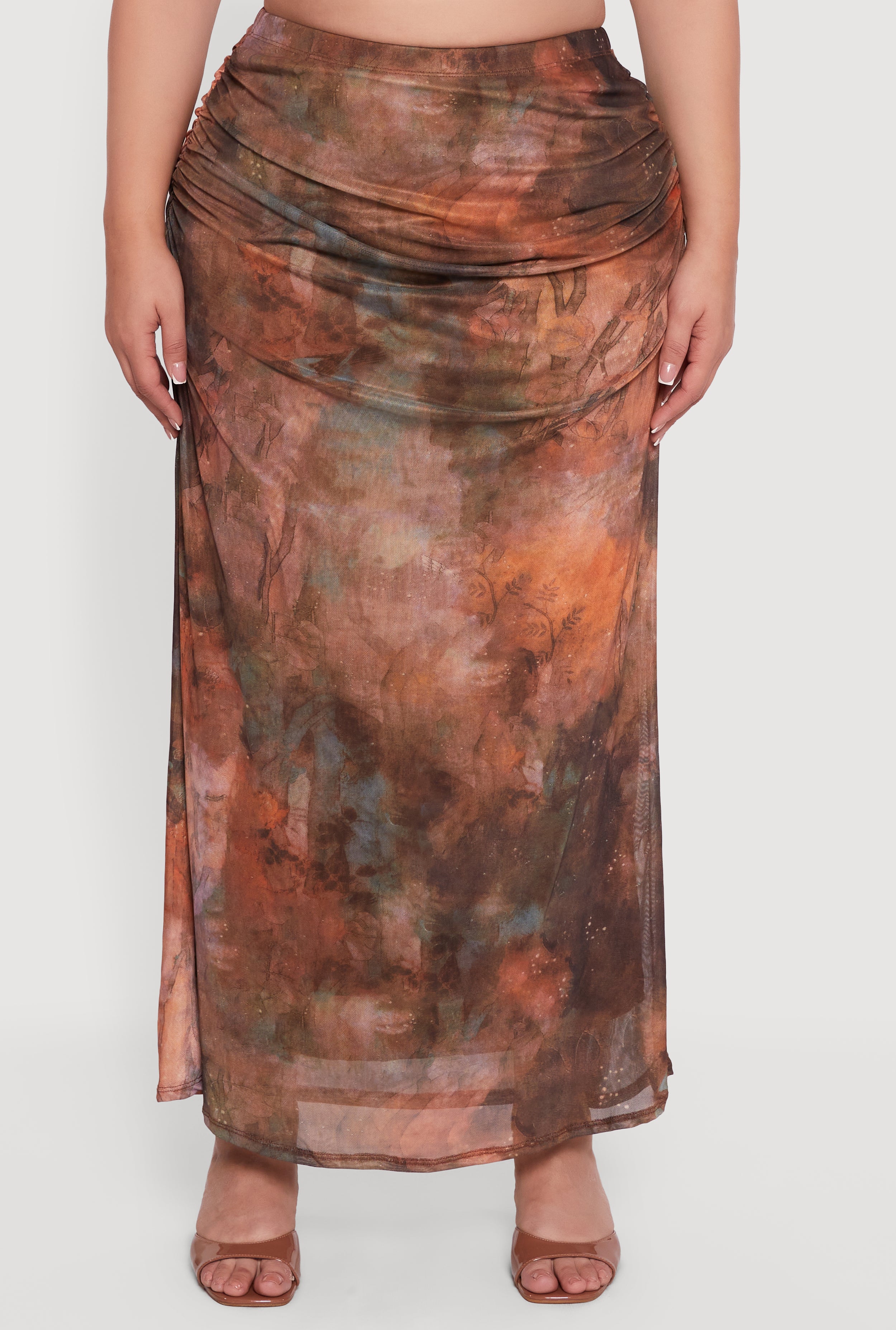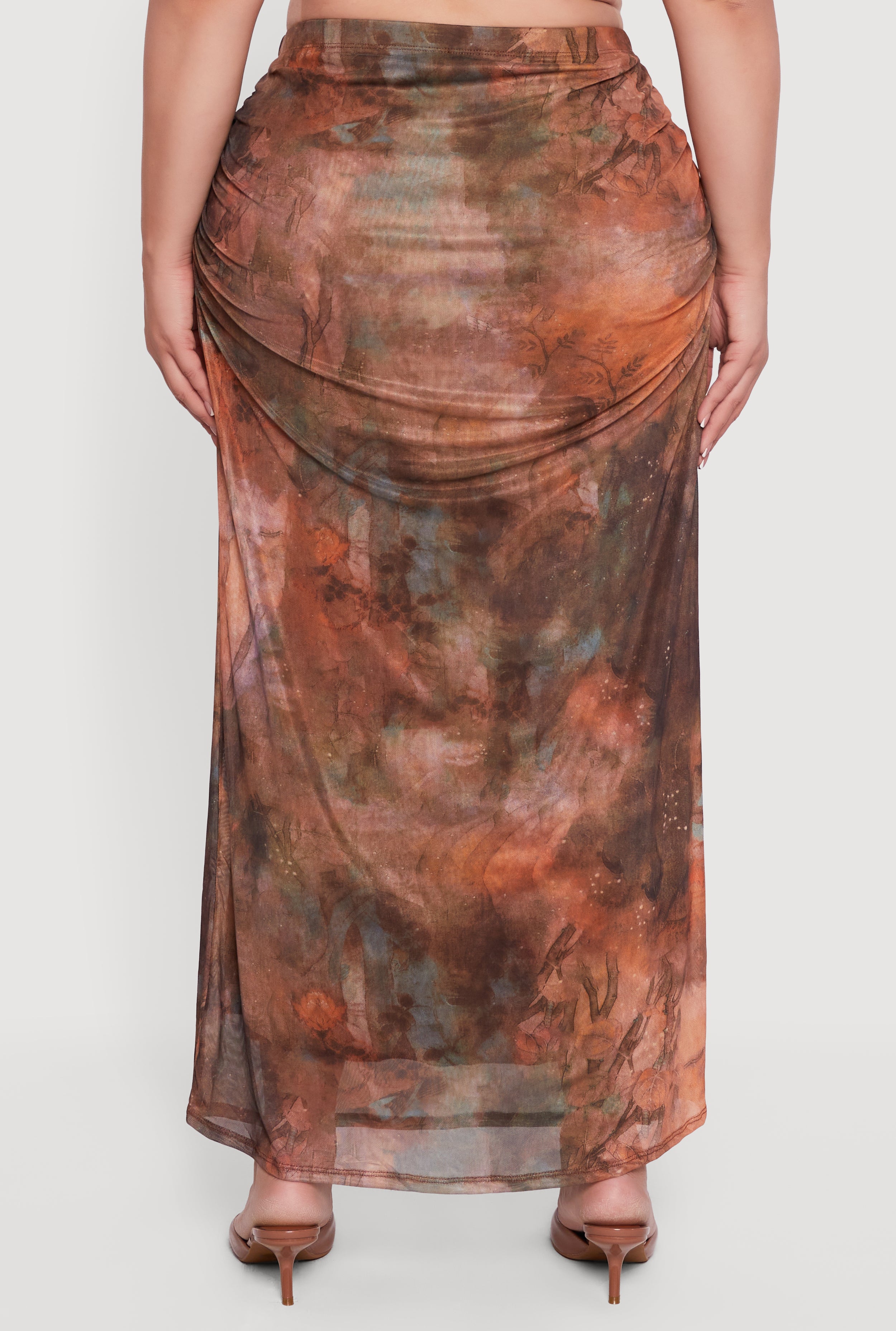 Step out in style with this Plus Size Patterned High Waisted Mesh Maxi Skirt that effortlessly blends comfort and flair. Designed with a flattering high waist and a flowing maxi length, it’s perfect for casual days when you want to feel confident and cool. The printed pattern and side ruching adds a playful touch while the mesh fabric keeps things light and breathable. Whether paired with your favorite tee or a cute crop top, this skirt is a must-have for your everyday wardrobe.
