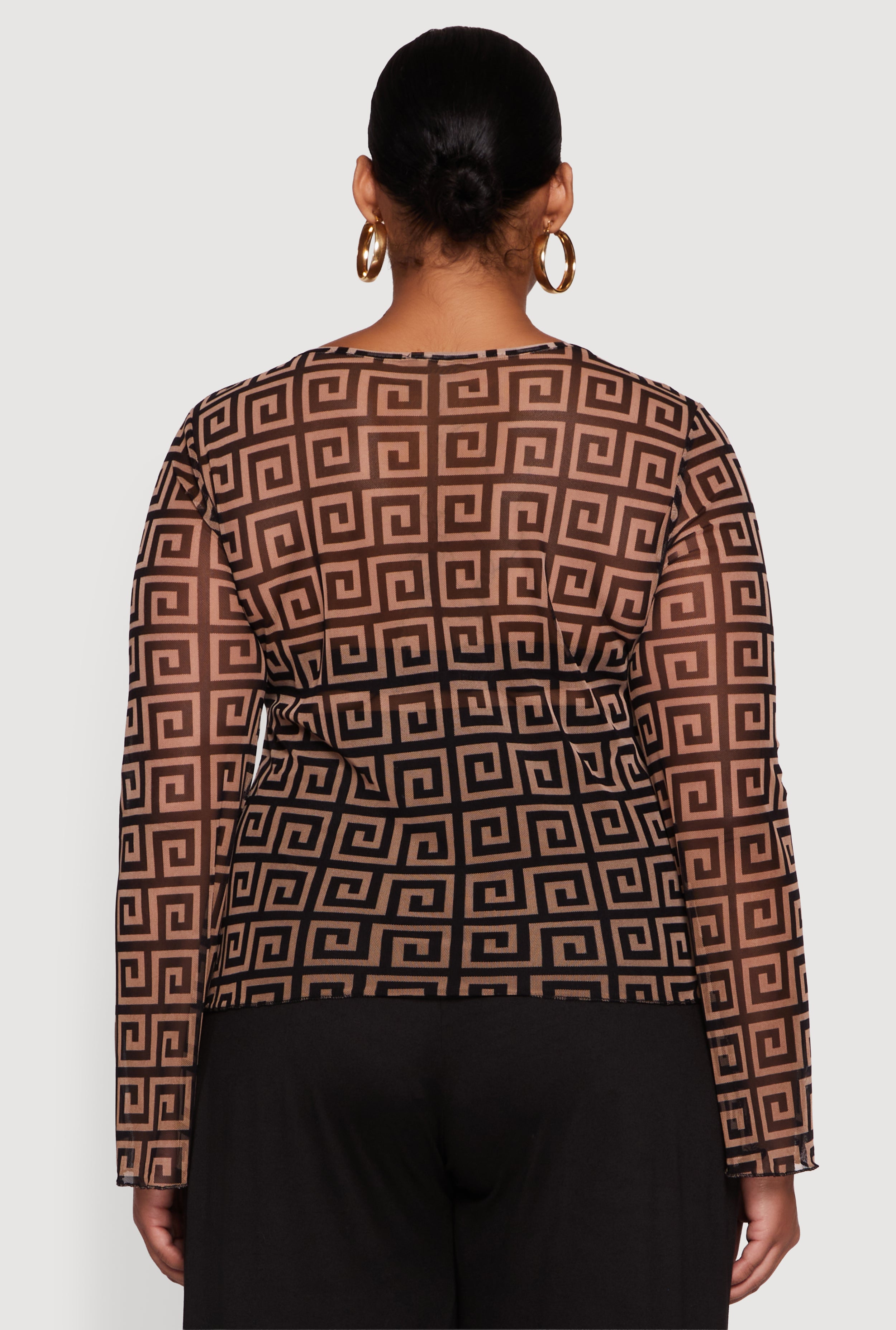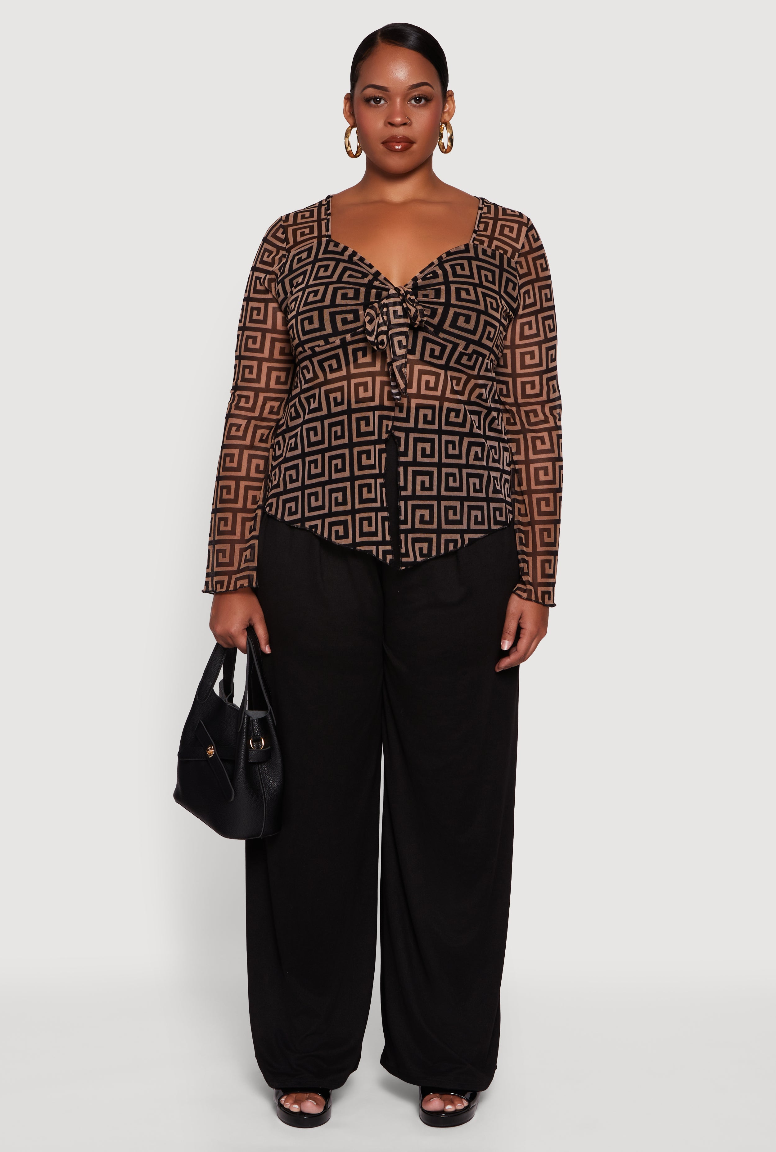 Step into the spotlight with this Plus Size Printed Mesh Long Sleeve Sweetheart Tie Front Top. Designed to flatter every curve with its classic fit and flirty sweetheart neckline, this mesh blouse is your new go-to for evenings, nights out, or any party where you want to turn heads. The playful tie front adds a touch of charm while the sheer printed mesh keeps things effortlessly cool and stylish. Pair it with your favorite high-waisted jeans or a sleek skirt and get ready for compliments all night long.
