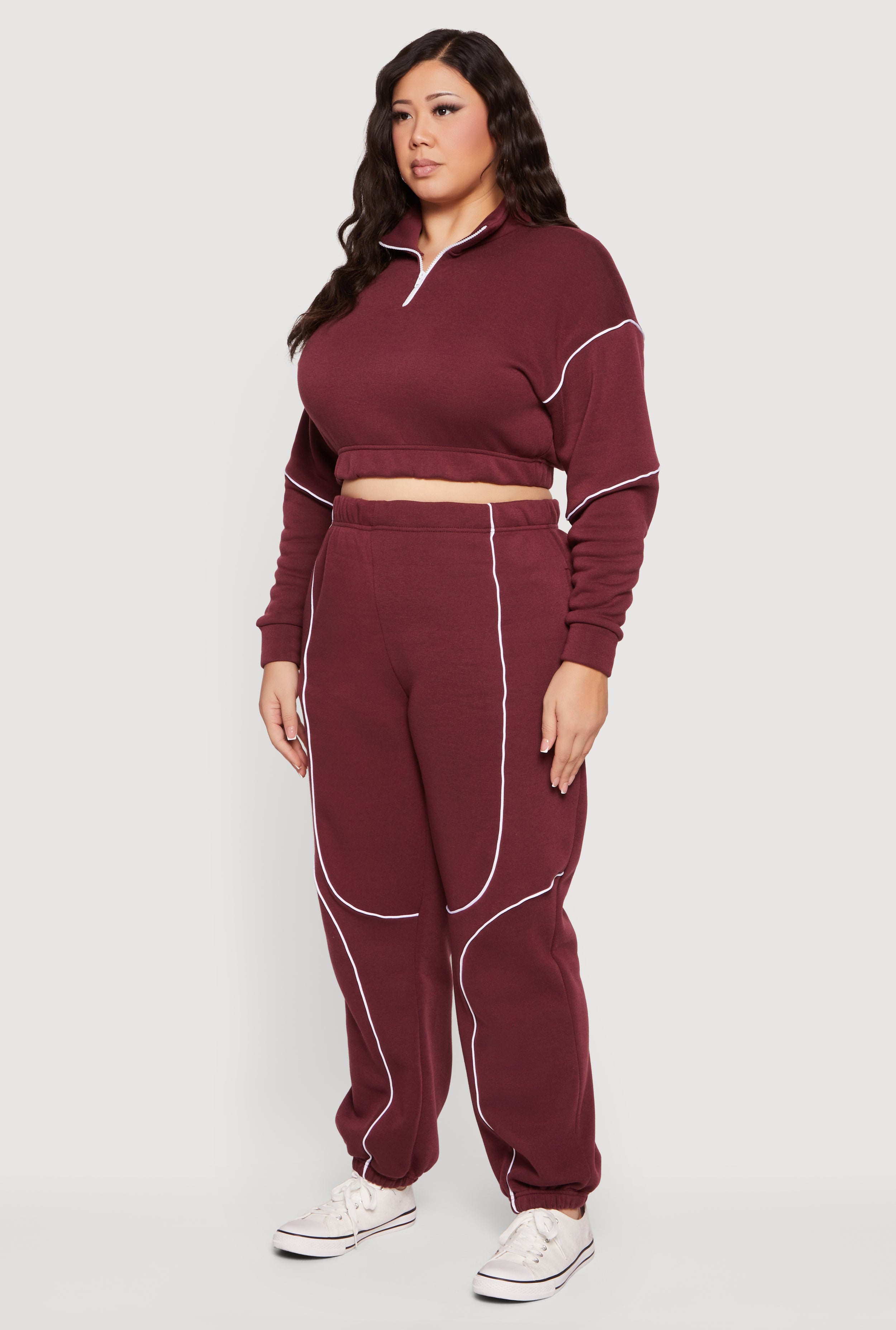 Step up your casual game with this Plus Size Cropped Zip Front Drop Shoulder Sweatshirt. Designed for comfort and style, it features a trendy quarter zip front and a relaxed drop shoulder fit that flatters every curve. The cozy fleece material keeps you warm without weighing you down, while the contrast trim piping adds a fresh, sporty touch. Perfect for layering or wearing solo, this classic fit sweatshirt is your new go-to for laid-back days and effortless cool.