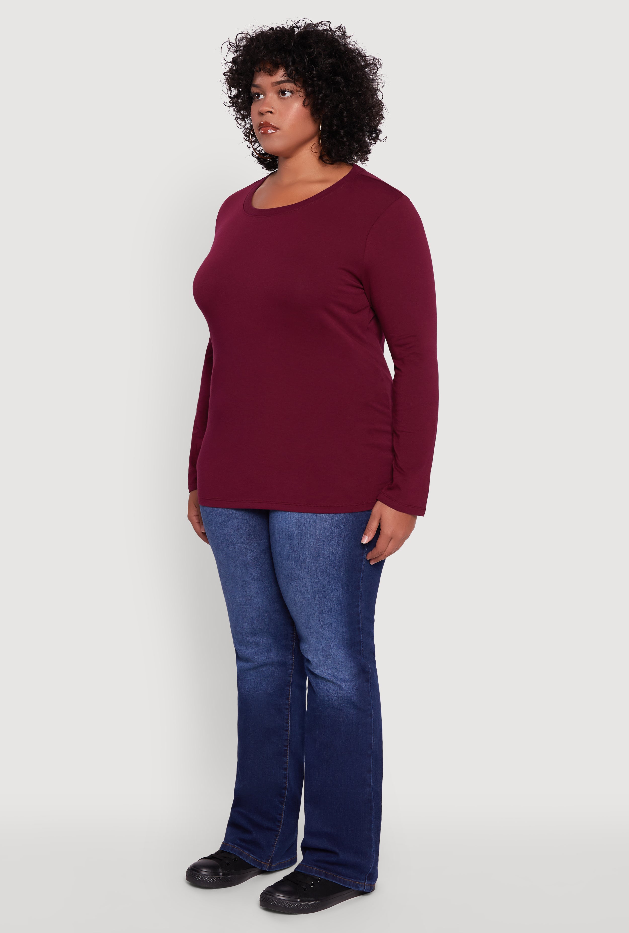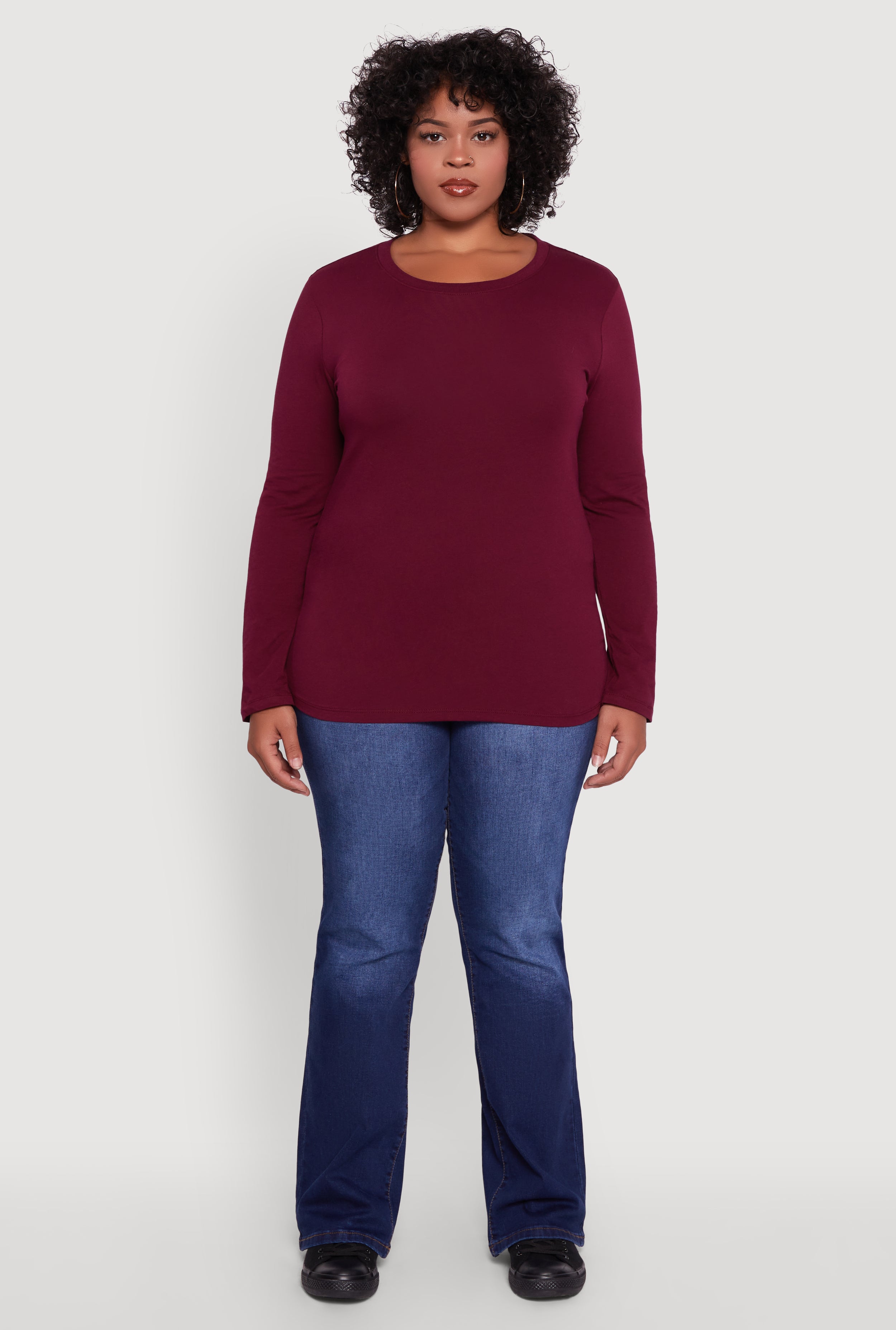 Meet your new go-to for effortless style and all-day comfort. This Plus Size Long Sleeve Crew Neck Tee is designed with a classic fit that flatters every curve, making it the perfect staple for casual days or layering up in cooler weather. Its timeless crew neck and solid color keep things simple, so you can mix and match with your favorite jeans or skirts without missing a beat. Affordable, flattering, and fuss-free—this tee is ready to upgrade your everyday wardrobe.