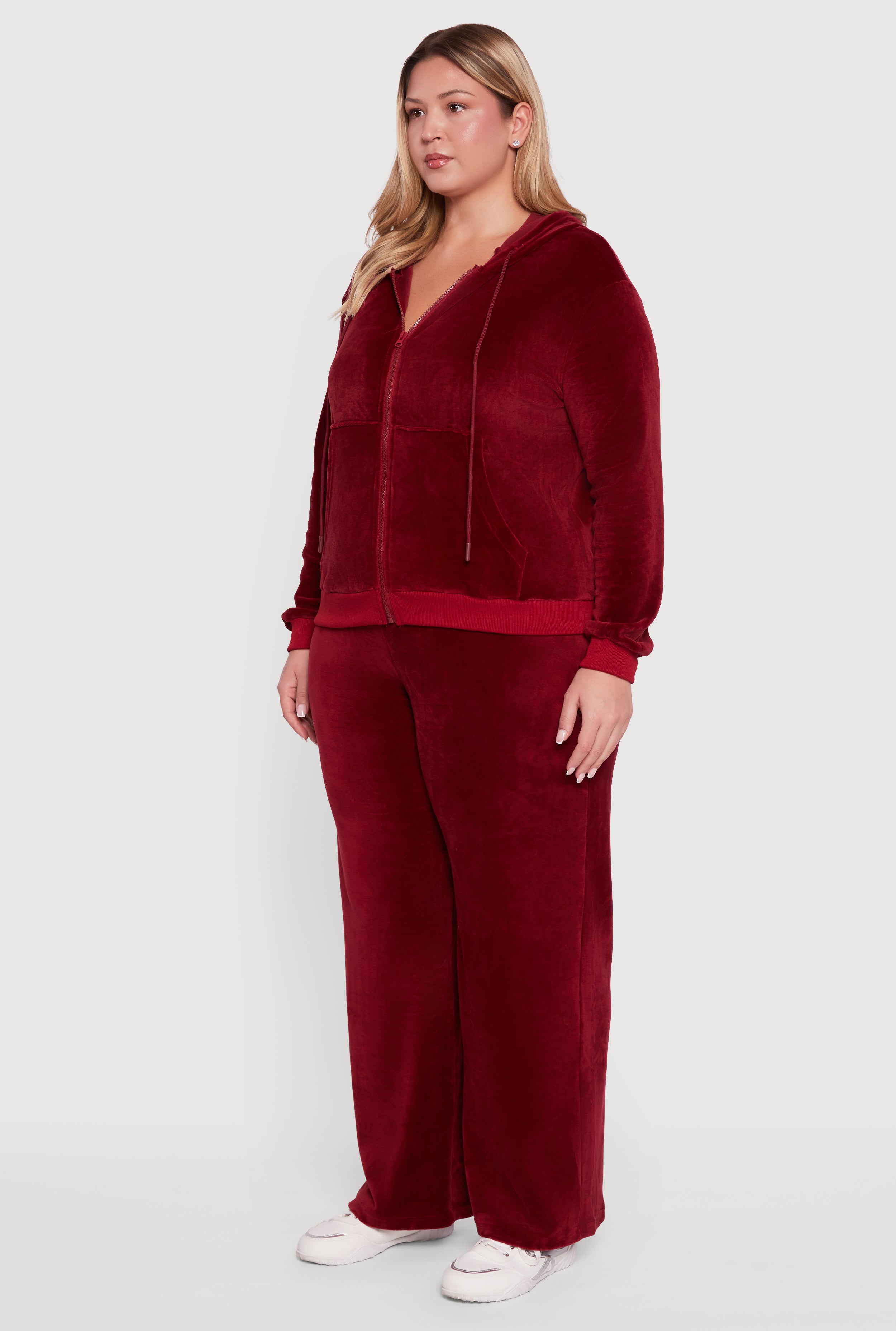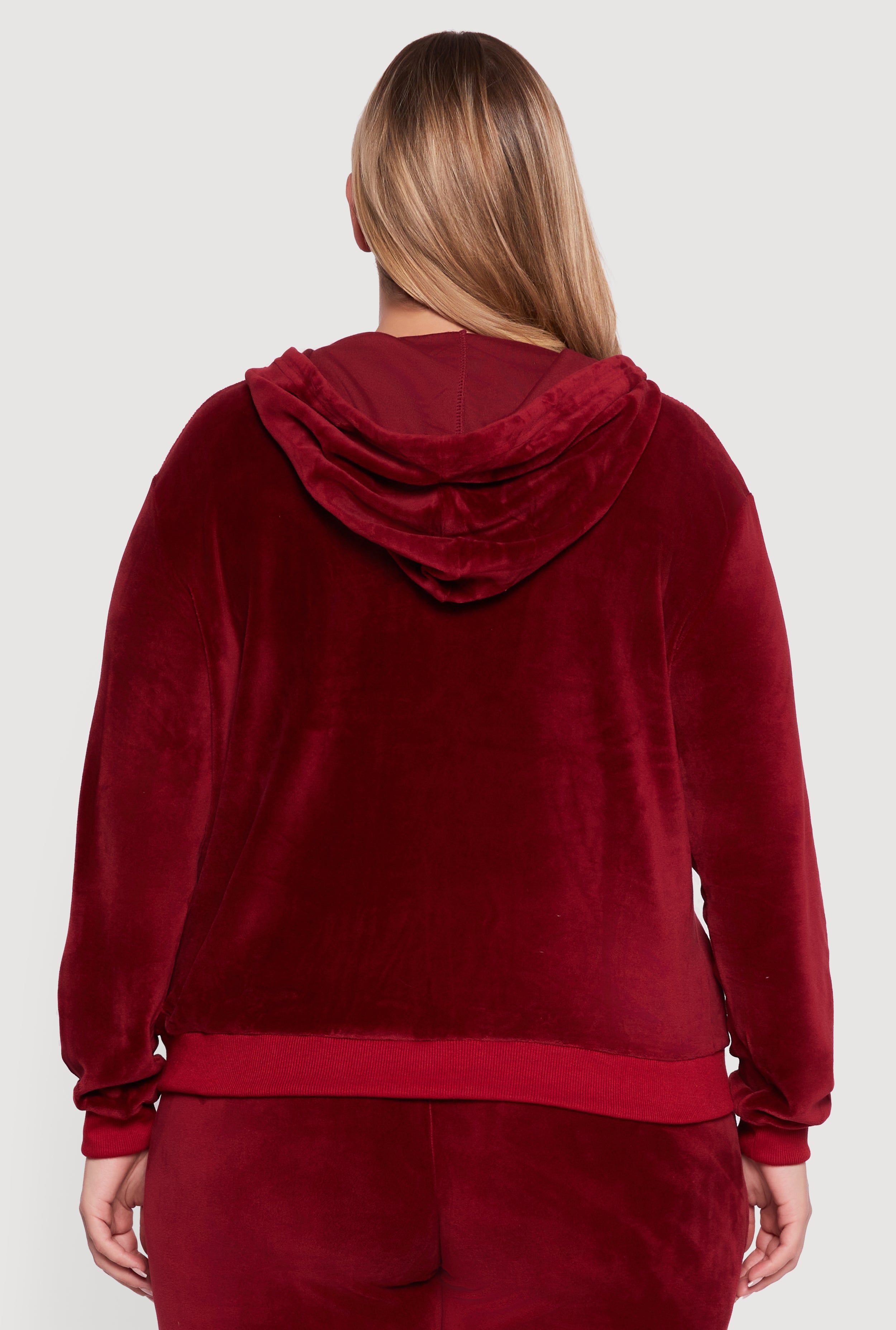 Cozy up in style with this Plus Size Velour Zip Front Hooded Sweatshirt. Perfect for casual days when you want to feel comfy without sacrificing your look. Its classic fit and soft velour fabric bring together timeless vibes and modern comfort, making it your go-to hoodie for chill weekends or running errands. The zip front and drawstring hood add a cool touch while letting you adjust your look on the fly. Ready to elevate your casual wardrobe? This sweatshirt has got you covered.