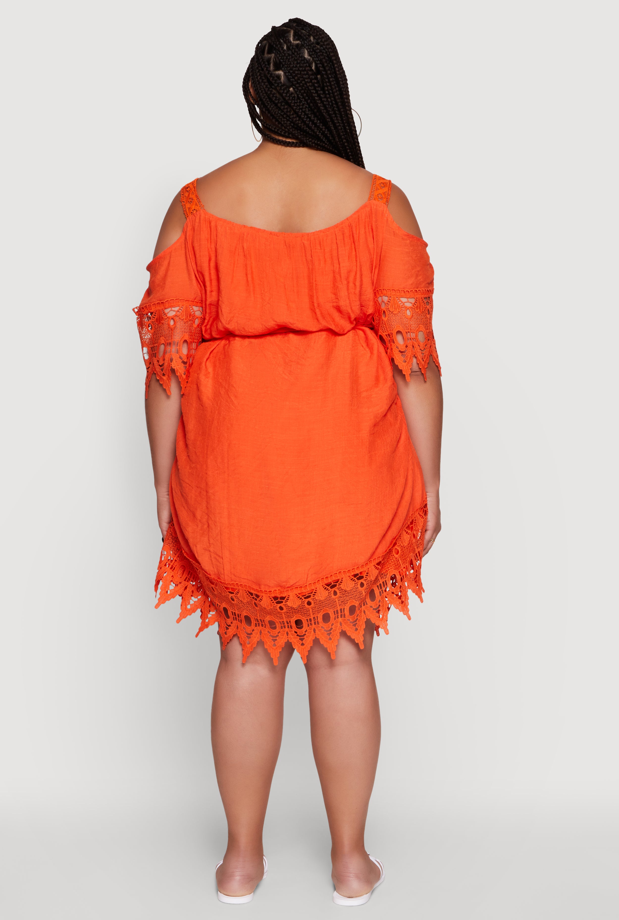 Plus Size Chic Crochet Detail Gauze Knit Cold Shoulder Dress