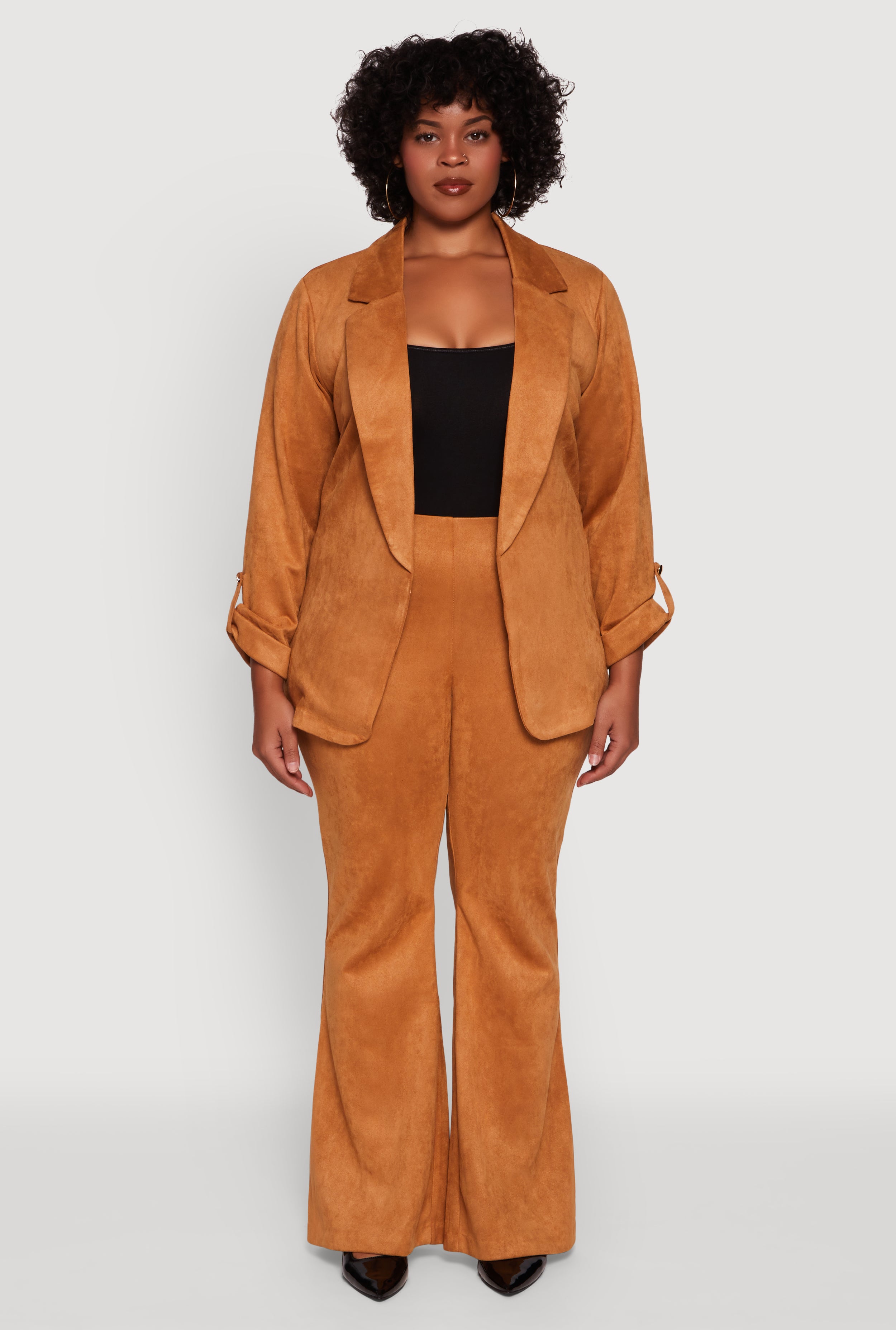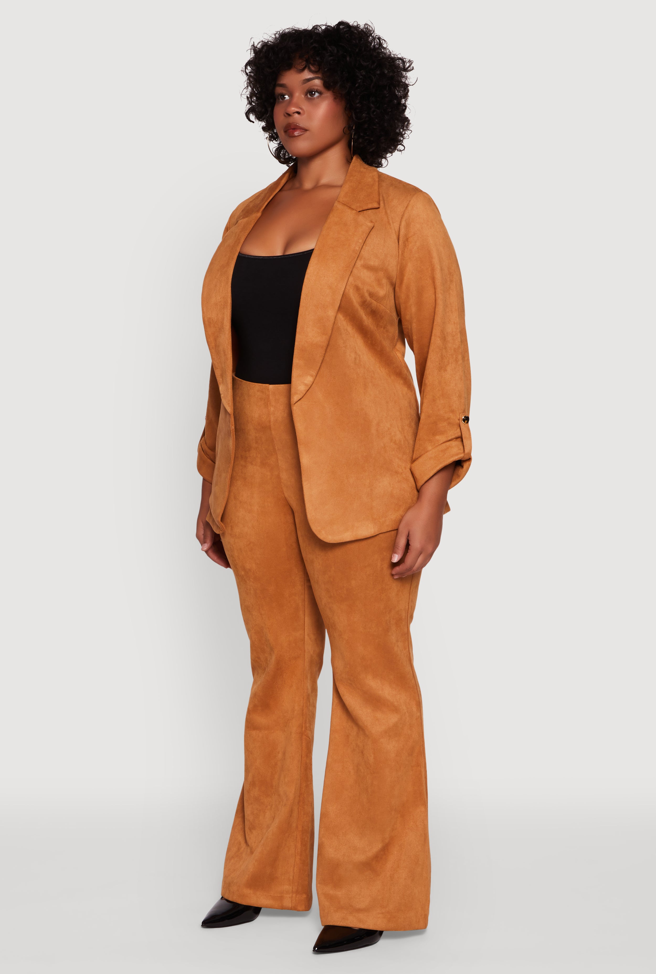 Step up your style game with this Plus Size Faux Suede Long Sleeve Open Front Blazer. Designed to blend office chic with night out vibes, this blazer adds a sleek, dressy touch without trying too hard. The soft faux suede feels luxe, while the open front and tab sleeves keep it effortlessly cool. Perfect for those who want to look polished and feel comfy all day and night. Your new go-to layer for when you want to slay with zero fuss.