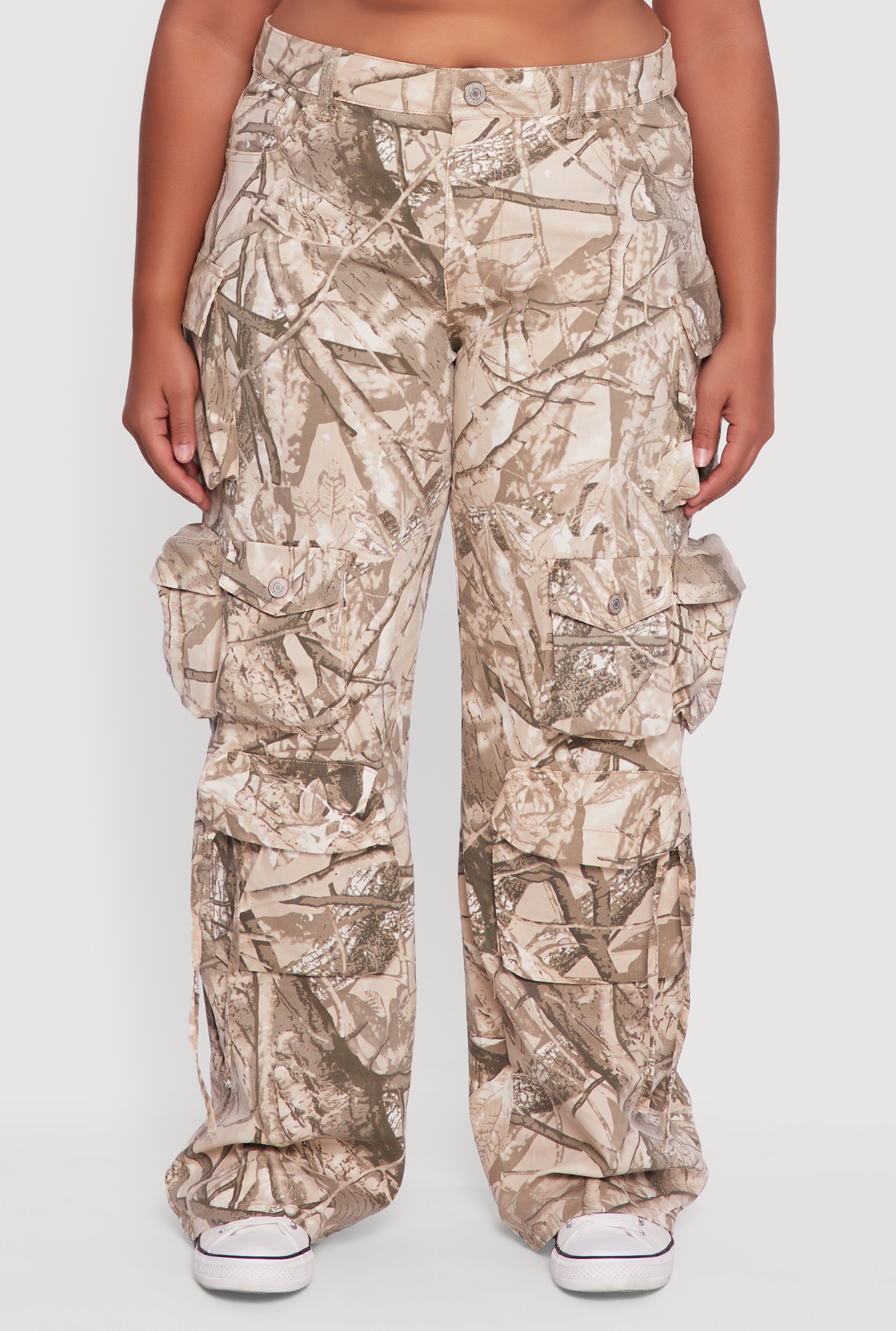 Step up your casual game with these Plus Size VIP Camo Wide Leg Cargo Pants. Designed to blend utility with style, these high-waisted, wide leg pants bring that effortlessly cool vibe you crave. Whether you’re running errands or hanging out with friends, the hunter's camo pattern adds a bold edge while the loose fit keeps you comfy all day long. The zipper closure ensures a perfect fit, and the stretch fabric moves with you, making these cargos your new go-to for casual cool.
