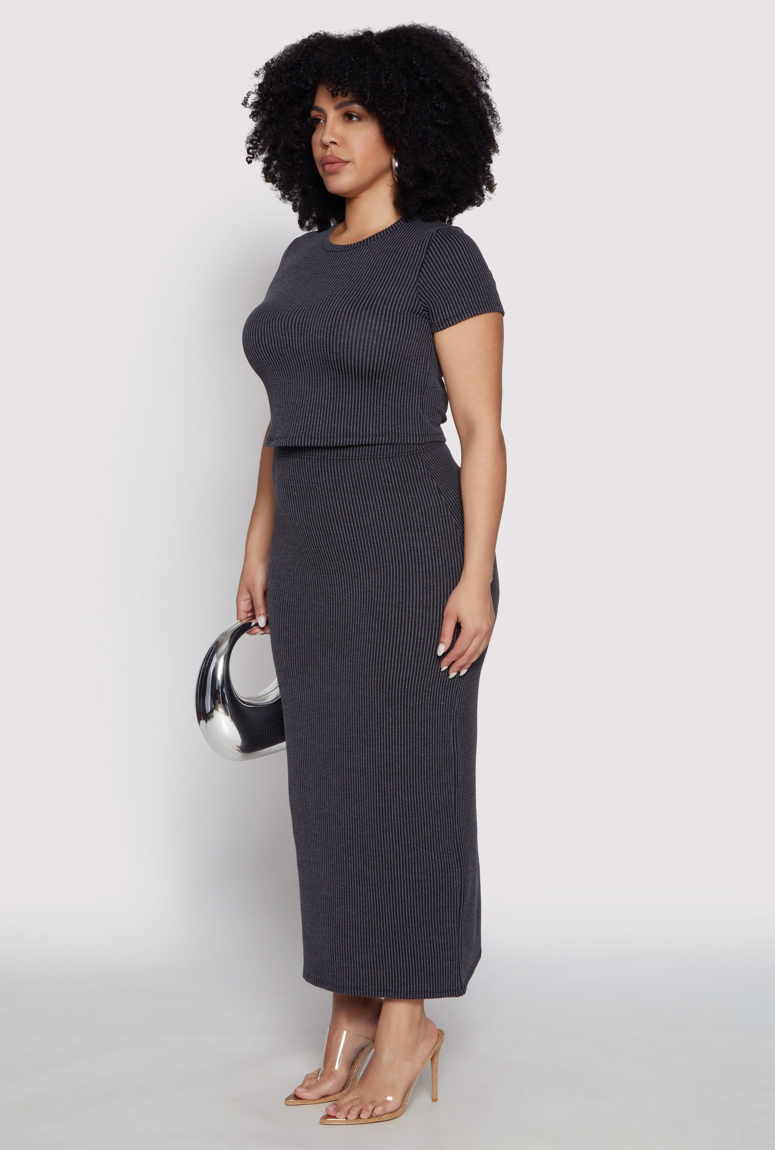 Get ready to turn heads with the Plus Size Almost Famous Ribbed Knit Crop Top. Designed for those who want to stay effortlessly stylish, this classic fit T-shirt features a chic crew neck and a cropped hem that’s perfect for pairing with your favorite sets. Made from soft ribbed knit fabric, it offers comfort and a flattering silhouette that feels as good as it looks. Whether you're heading out with friends or just want to elevate your everyday look, this top is your new go-to for a trendy, confident vibe.