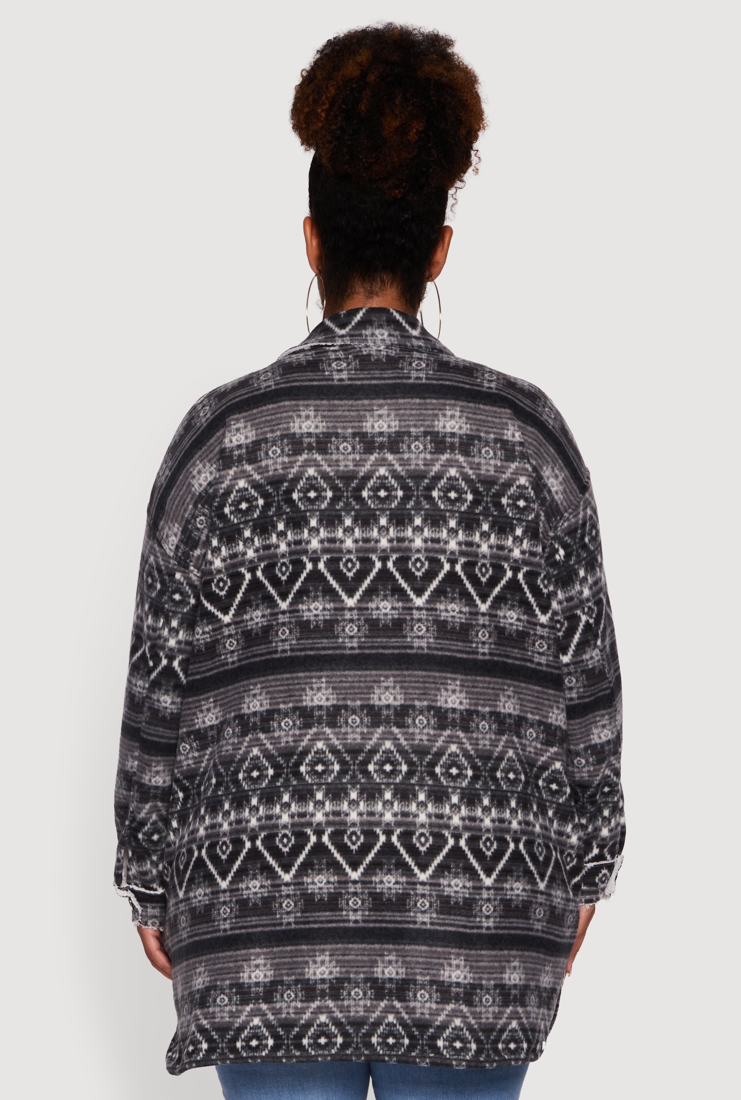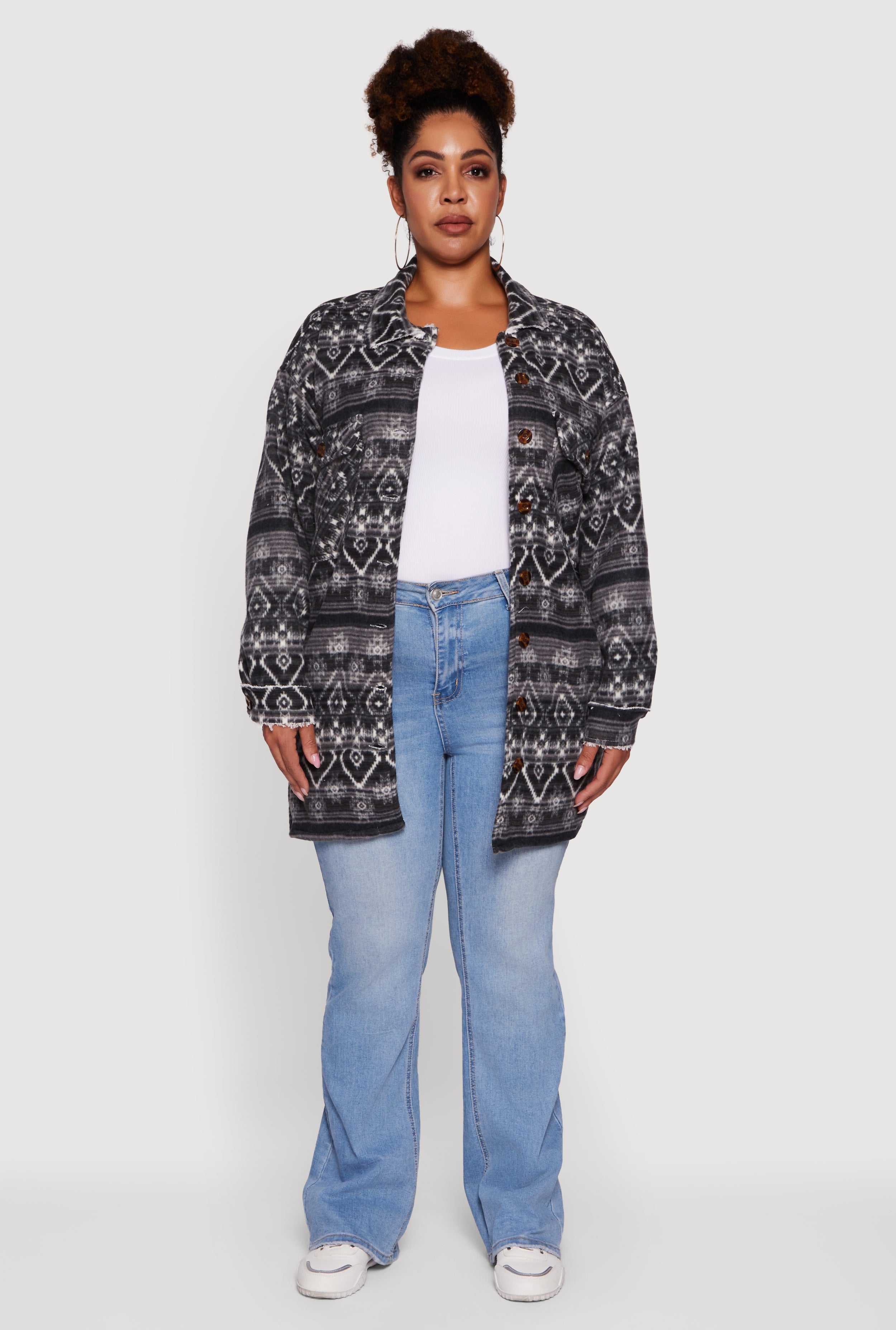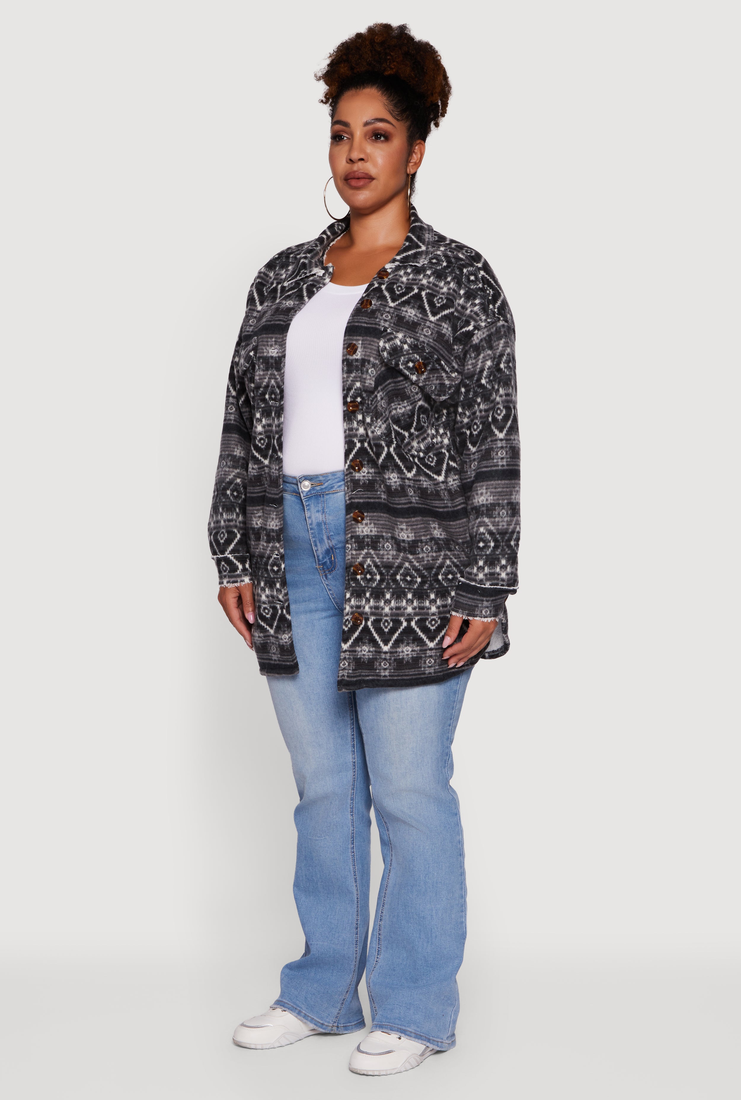 Stay cozy and stylish with this Plus Size Fair Isle Print Sherpa Lined Fleece Shacket. Perfect for casual days when you want to layer up without sacrificing comfort, this shacket features a classic button front and a timeless Fair Isle pattern that adds a pop of personality to any outfit. The sherpa lining keeps you warm while the fleece exterior is soft to the touch, making it your go-to for chilly days. With a relaxed drop shoulder and blouson long sleeves, it’s designed for easy movement and laid-back vibes. Whether you’re running errands or meeting friends, this shacket is the ultimate blend of snug and chic.