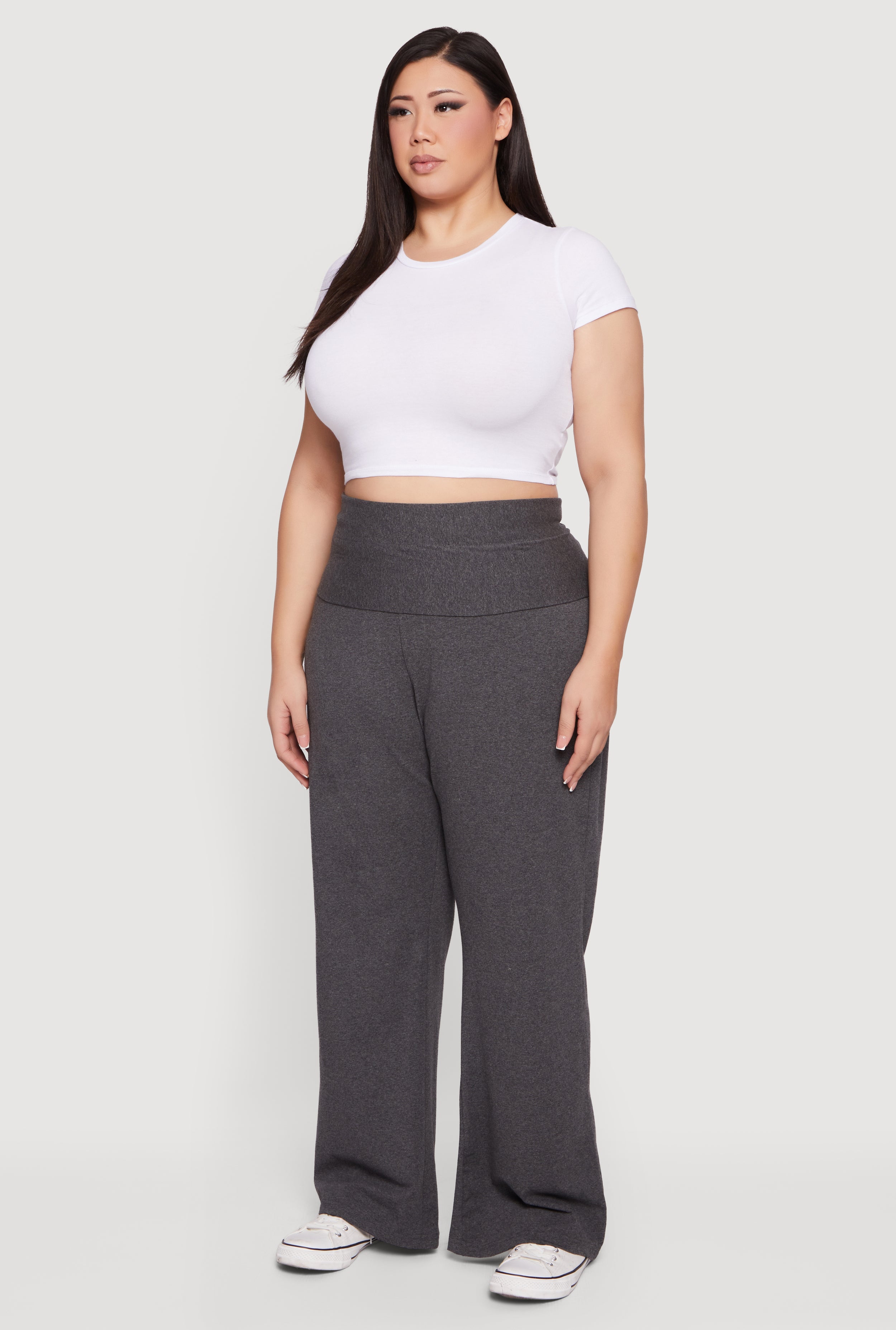 Step out in style and comfort with these Plus Size Fold Over High Waisted Wide Leg Pants. Designed to flatter your curves with a high waist and a trendy fold over detail, these pants bring effortless cool to your casual wardrobe. The wide leg silhouette offers a breezy, baggy fit that moves with you, making them perfect for laid-back days or athleisure vibes. Crafted in a solid color, they’re easy to pair with your favorite tops and sneakers for an instant upgrade to your everyday look.