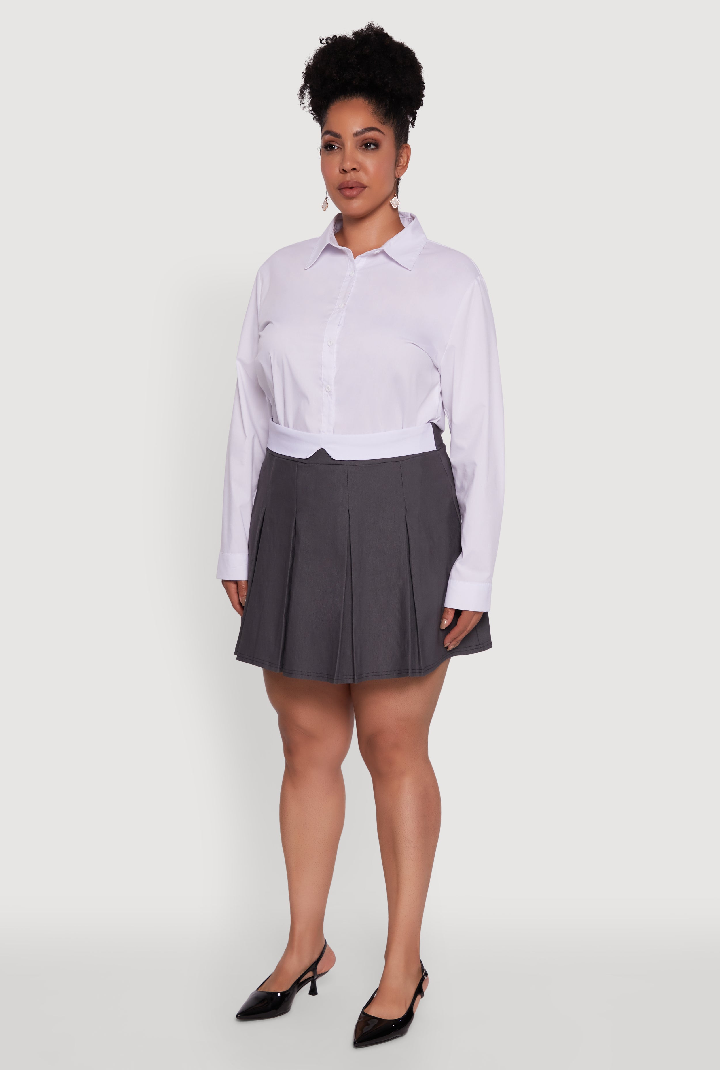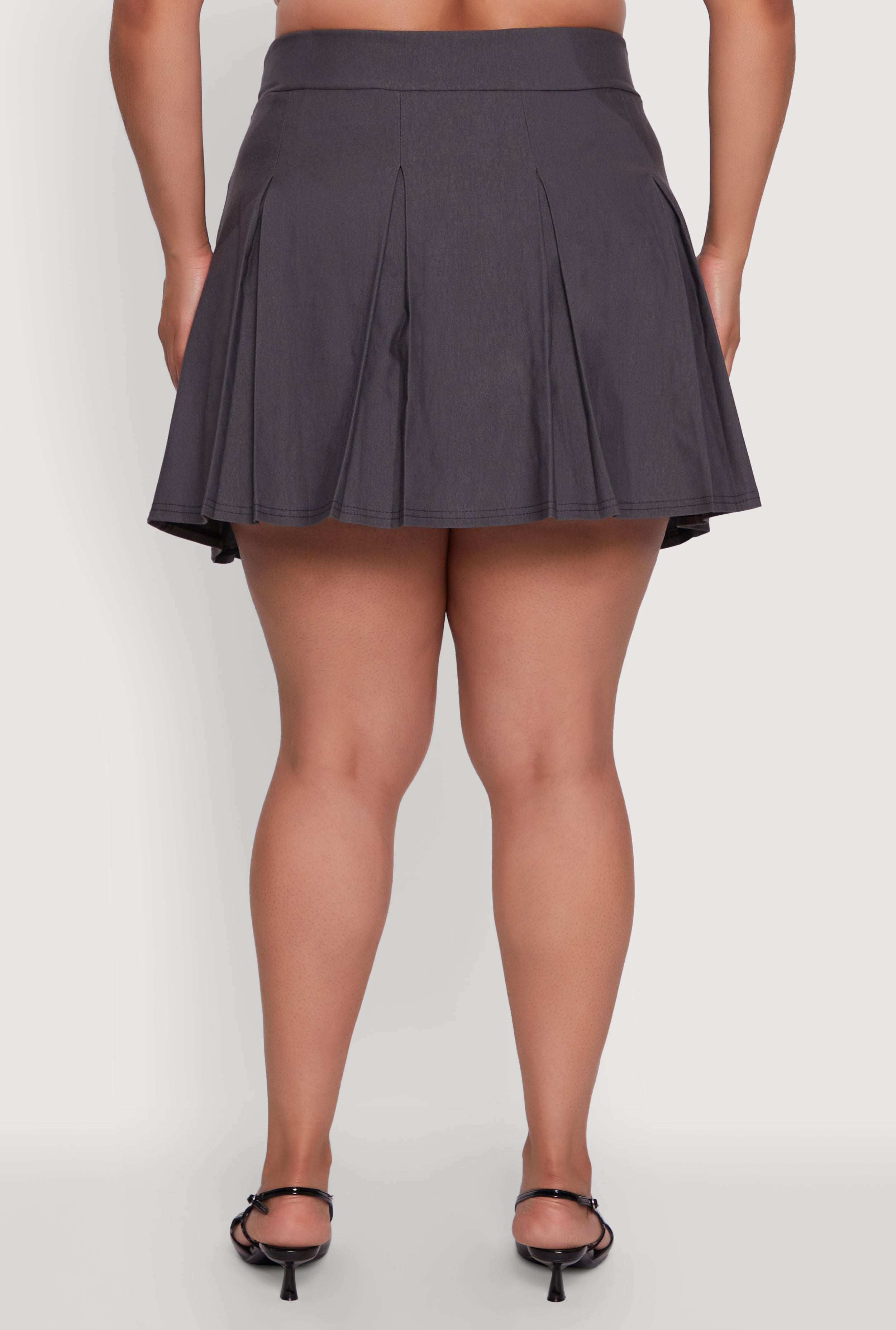Plus Size Mini Pleated Skirt with Contrast Waistband