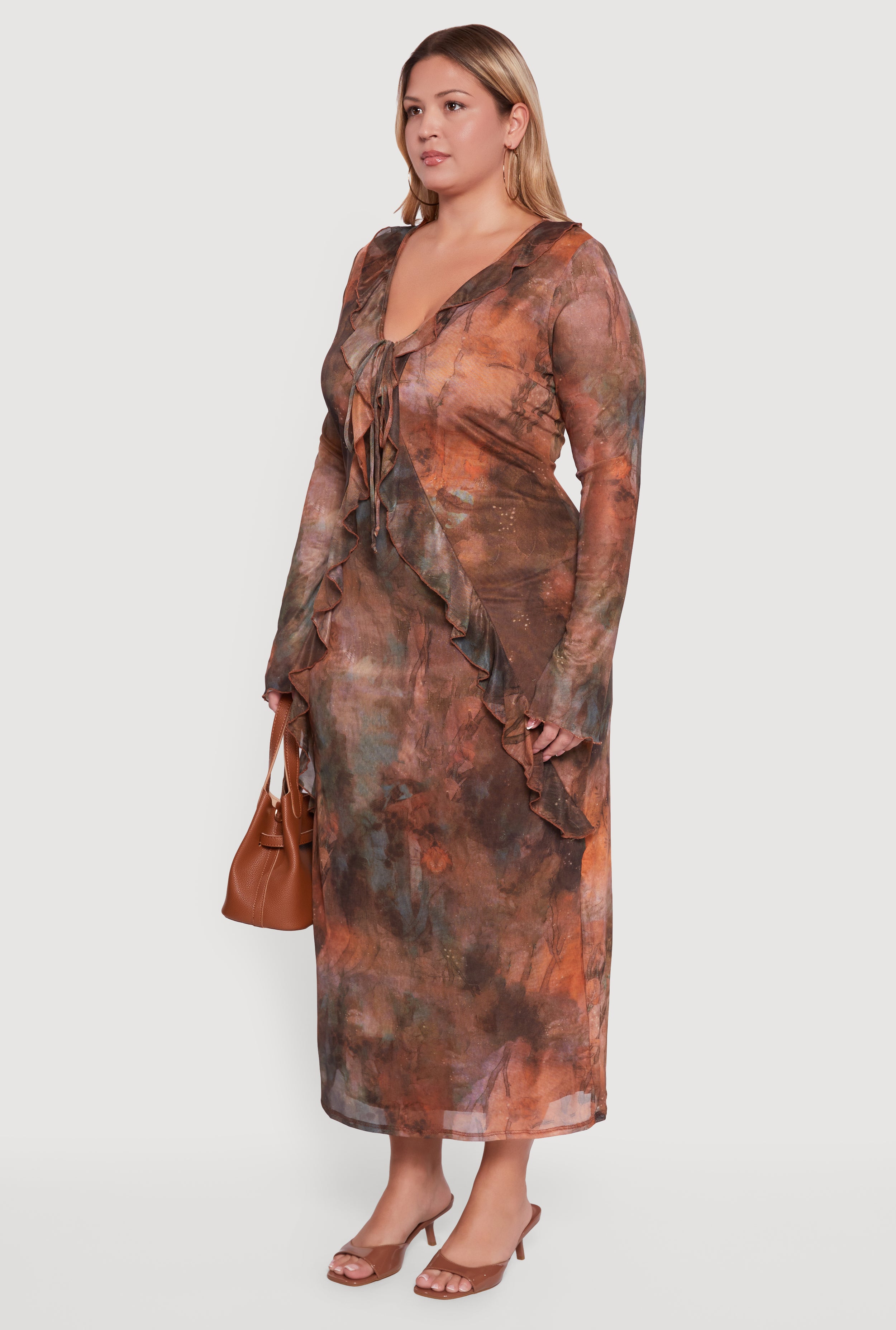 Plus Size Mesh Tie Dye Tie Front Maxi Dress