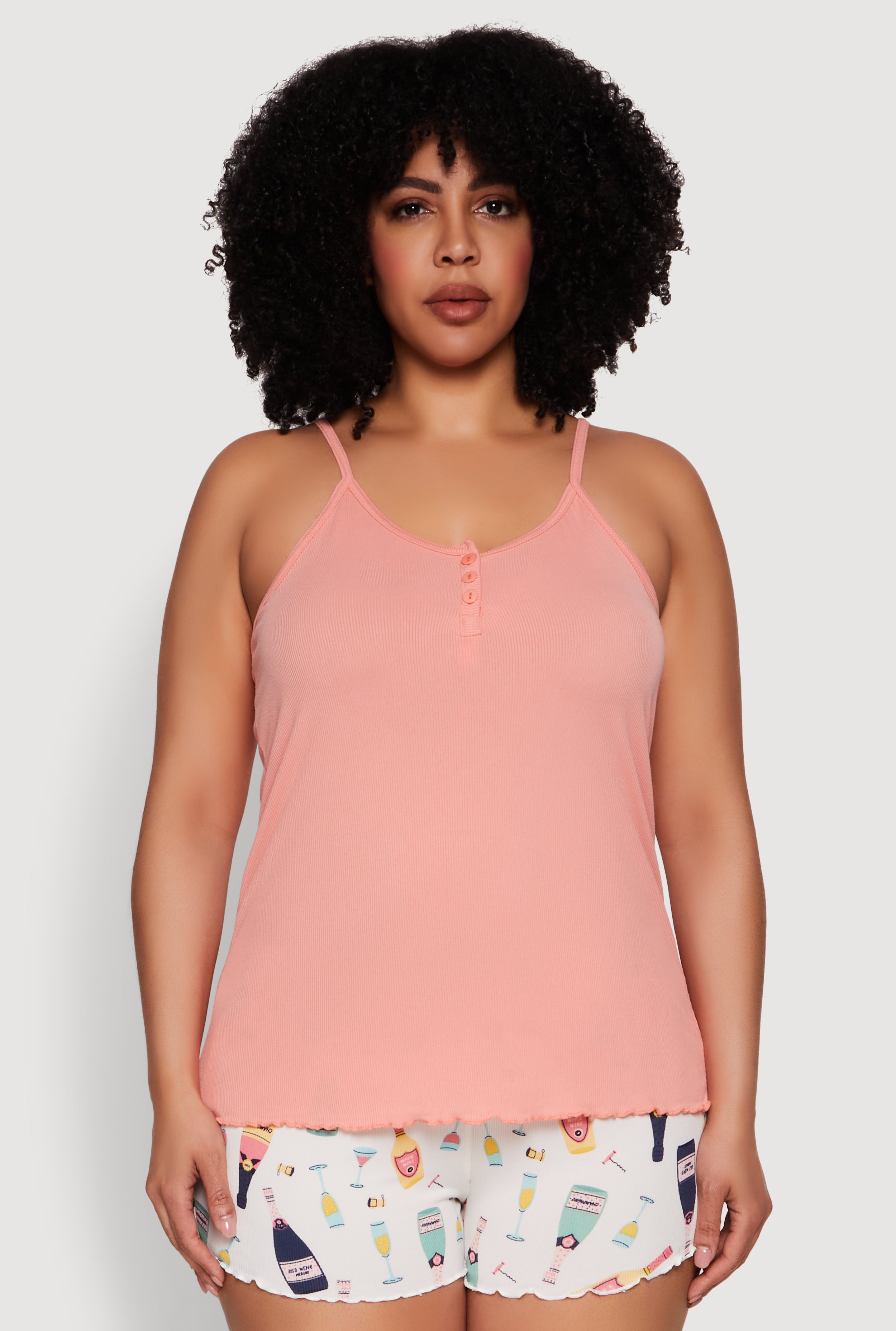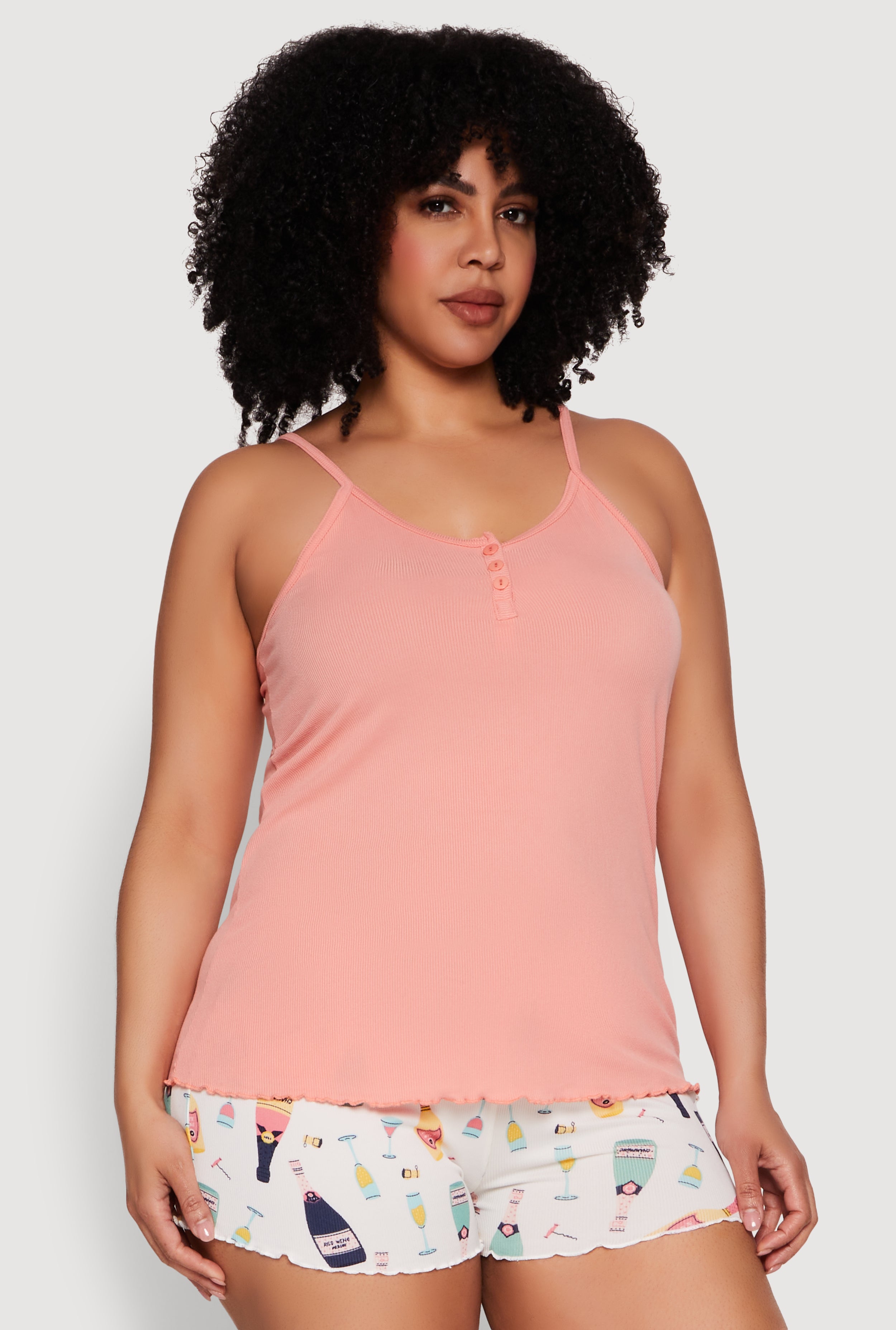 Relax and unwind in style with our Plus Size Henley Pajama Cami and Champagne Shorts 3 Pack. This comfy set is perfect for lazy mornings or cozy nights, offering a timeless silhouette that feels as good as it looks. The sleeveless pajama top features a cute scoop neck and faux buttons, while the champagne shorts with an elastic waistband keep you feeling relaxed and free. With three versatile pieces, you'll always have a cute, comfortable option ready to go. Treat yourself to effortless comfort and charming style all in one pack.