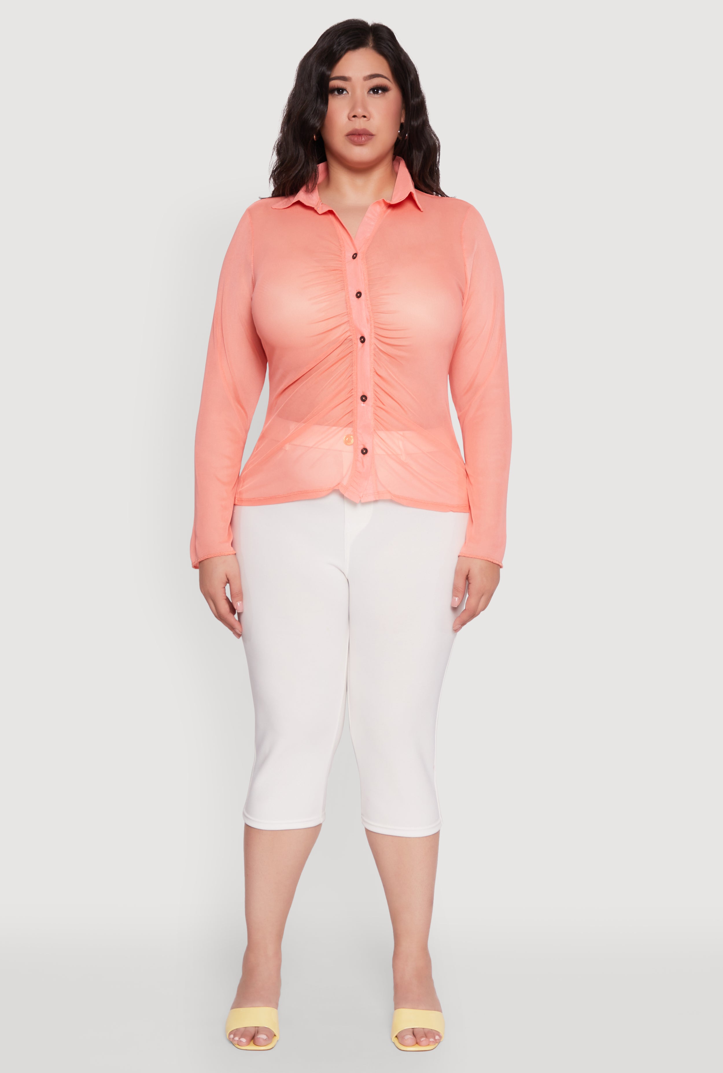 Step up your style game with this Plus Size Sheer Long Sleeve Shirt featuring chic ruching details. Its classic fit and timeless shirt collar make it a must-have for casual days or festival vibes. The sheer mesh fabric adds a playful, flirty touch while keeping things effortlessly cool. Pair it with your favorite undergarments and let your confidence shine through every layer