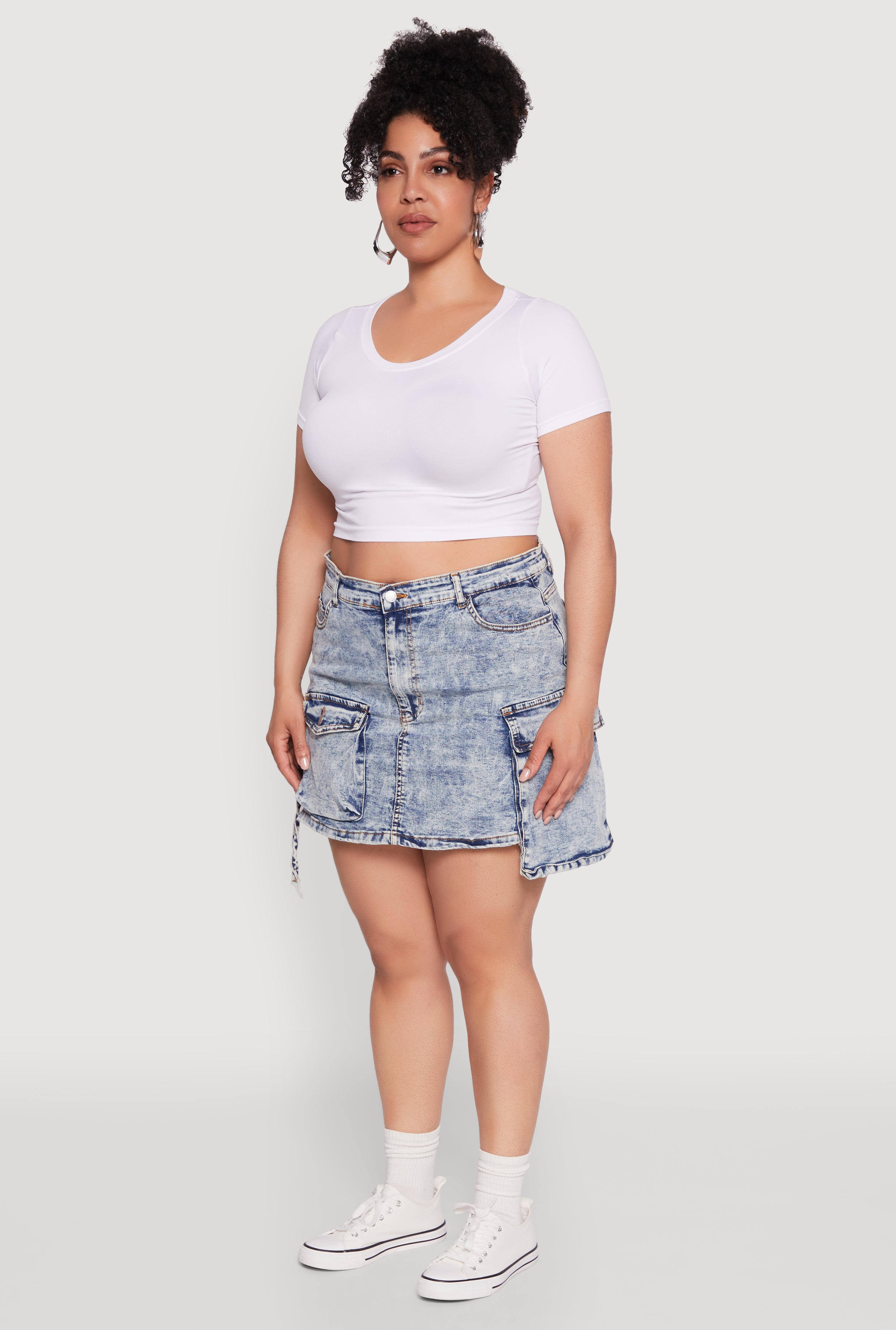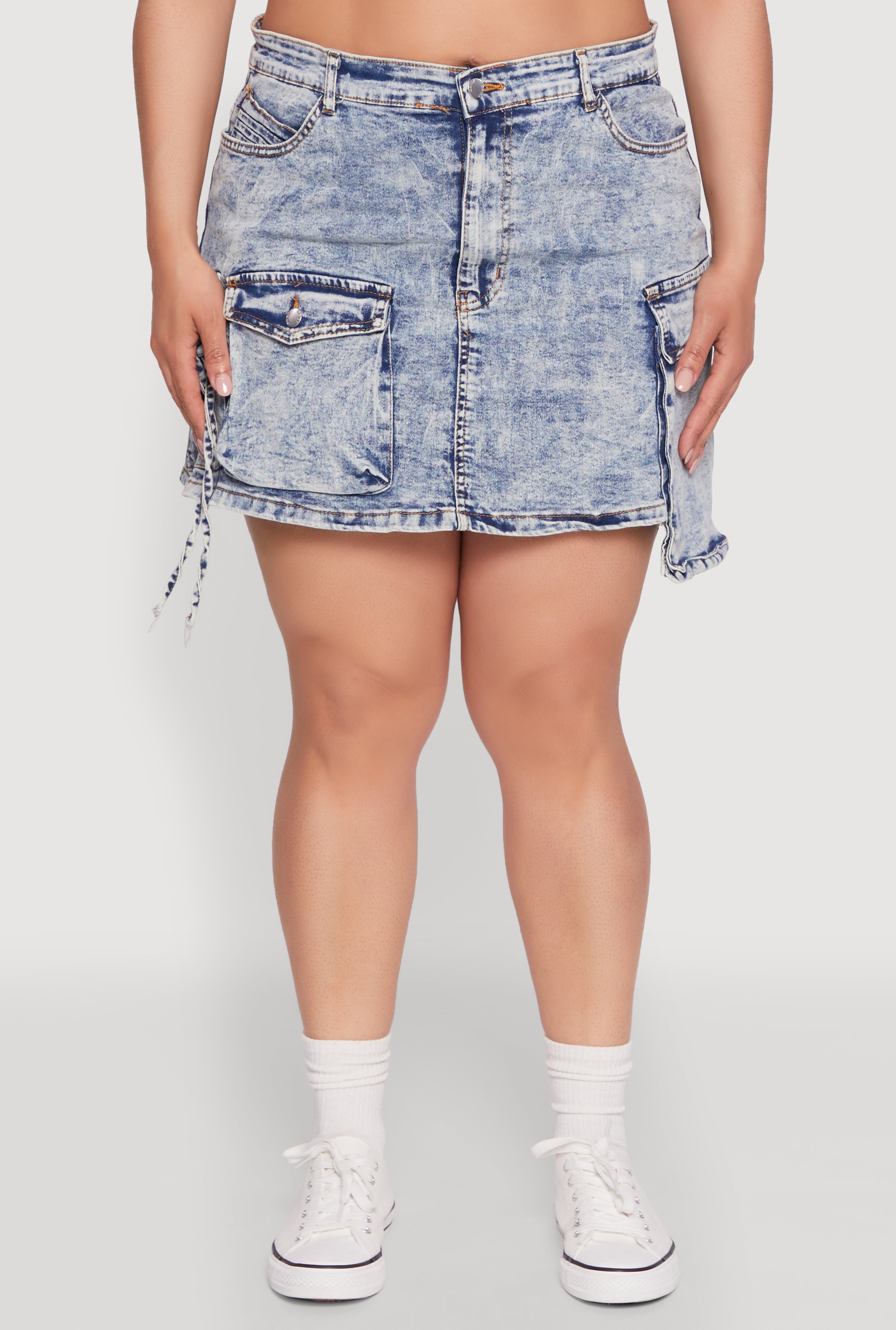Meet your new go-to for effortless style and comfort—the Plus Size Daisy Mineral Wash Denim Cargo Skirt. Perfect for those who love a mix of trendy and practical, this mini length skirt with cargo pockets is a must-have in your wardrobe. Its high waisted fit and cool mineral wash denim give you a laid-back yet chic vibe that’s perfect for everyday adventures or casual outings. Feel confident, look fabulous, and stay comfy all day long!