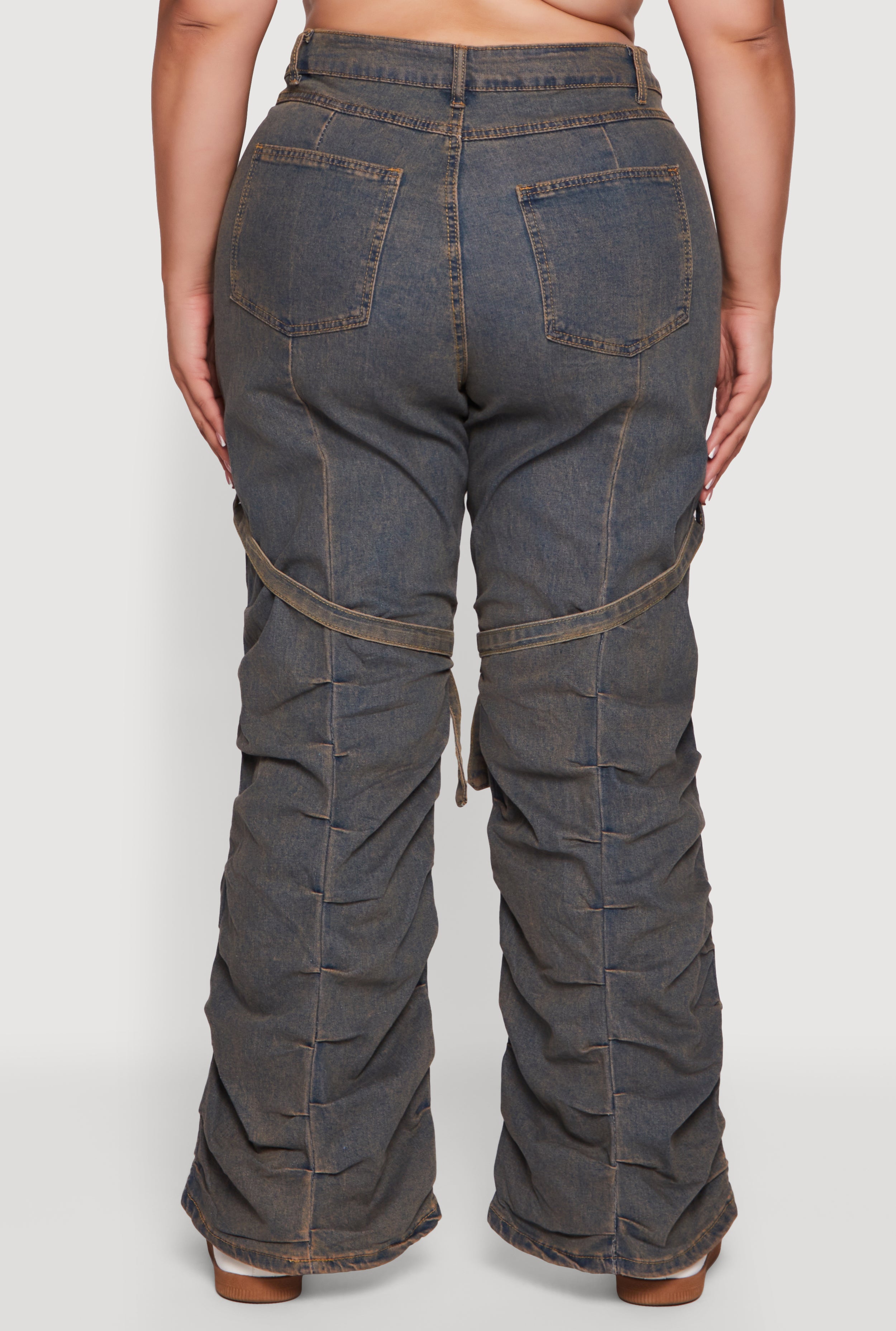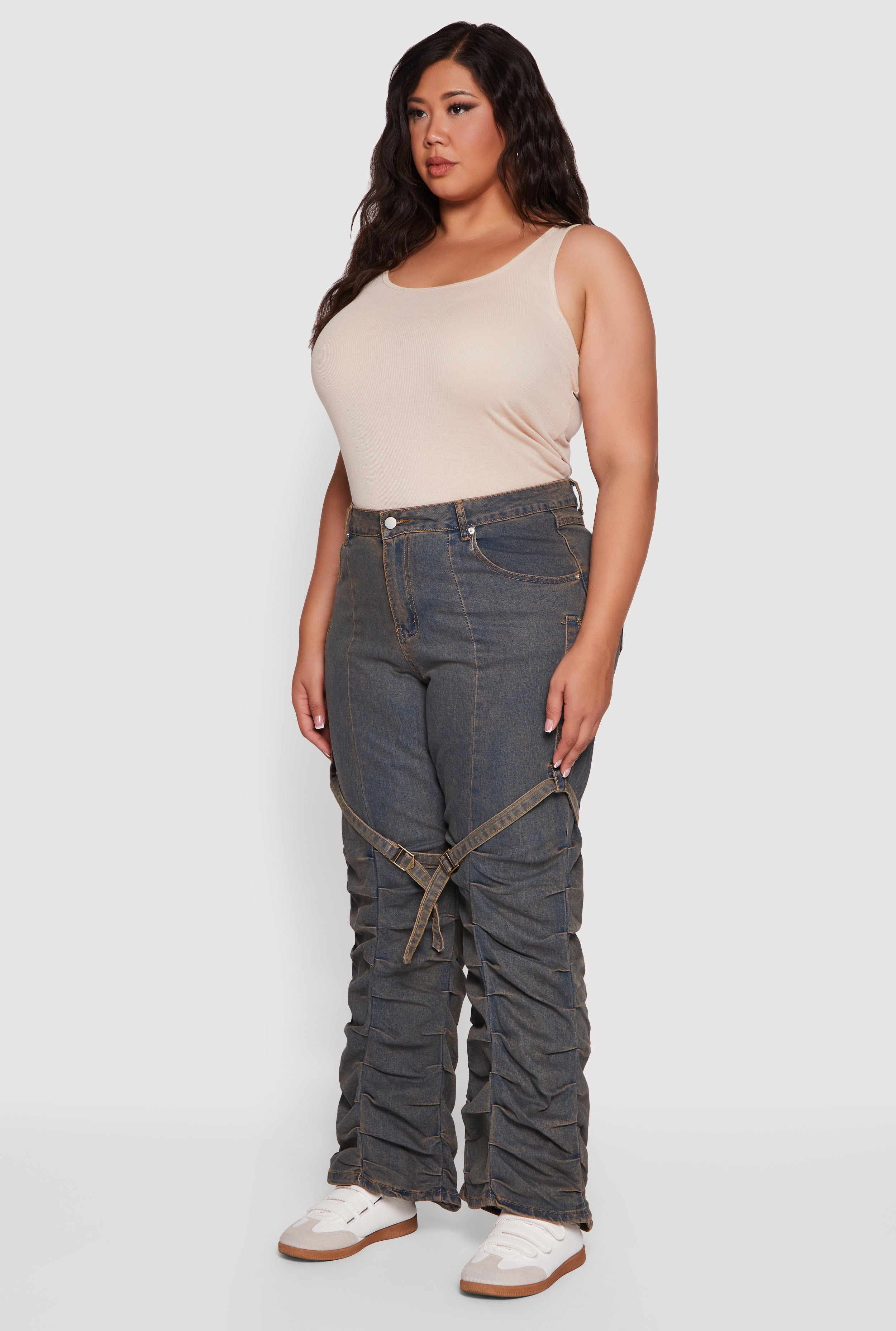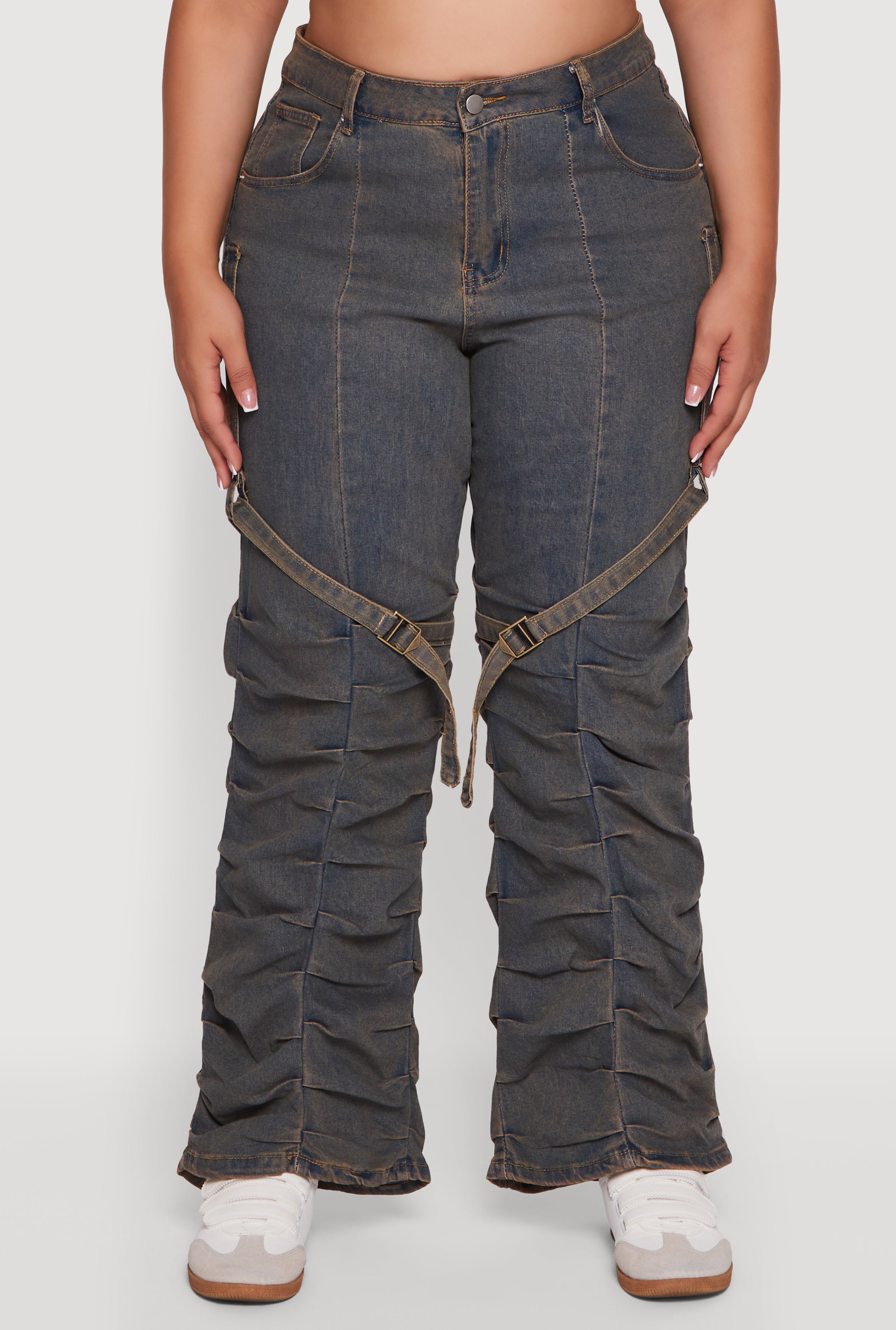 Step up your streetwear game with these Plus Size High Waisted Wide Leg Stacked Jeans with Buckles. Designed to hug your curves in all the right places, the high waist flatters your silhouette while the wide-leg cut keeps things effortlessly cool and comfortable. The stacked hem adds a trendy twist and the buckle details bring an edgy vibe to your everyday denim. Made from sustainable denim, these jeans are as kind to the planet as they are to your style. Perfect for casual days when you want to look put-together without trying too hard.
