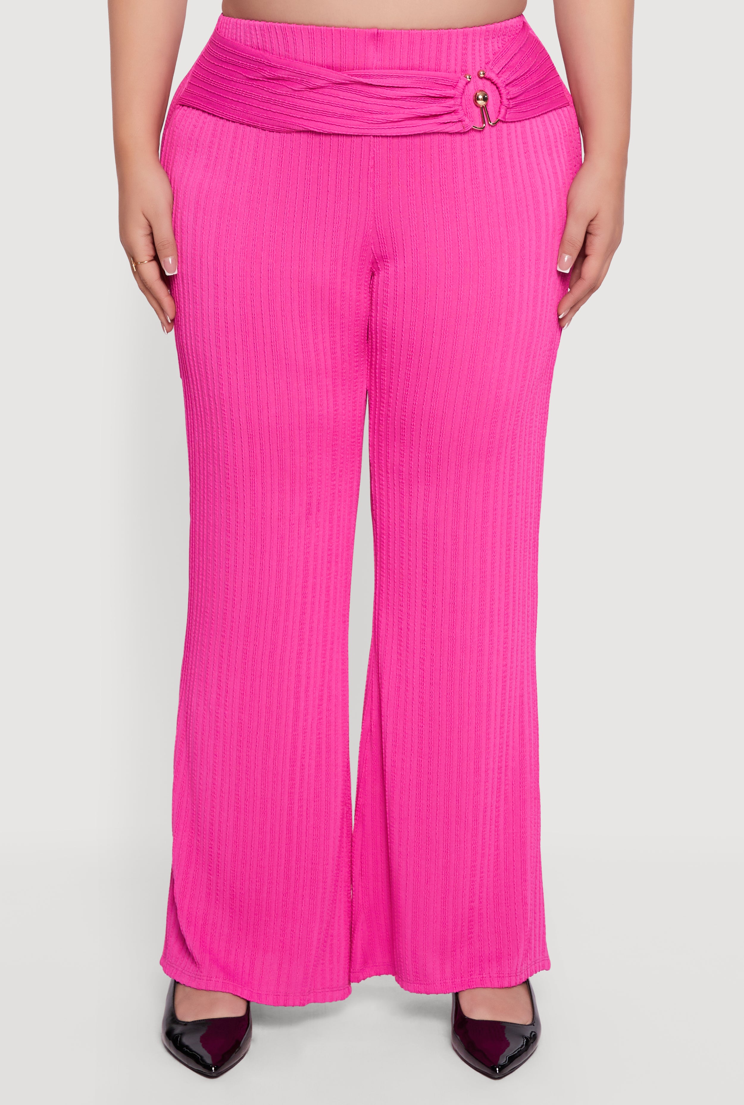 Plus Size High Waisted Metallic O Ring Flare Pants