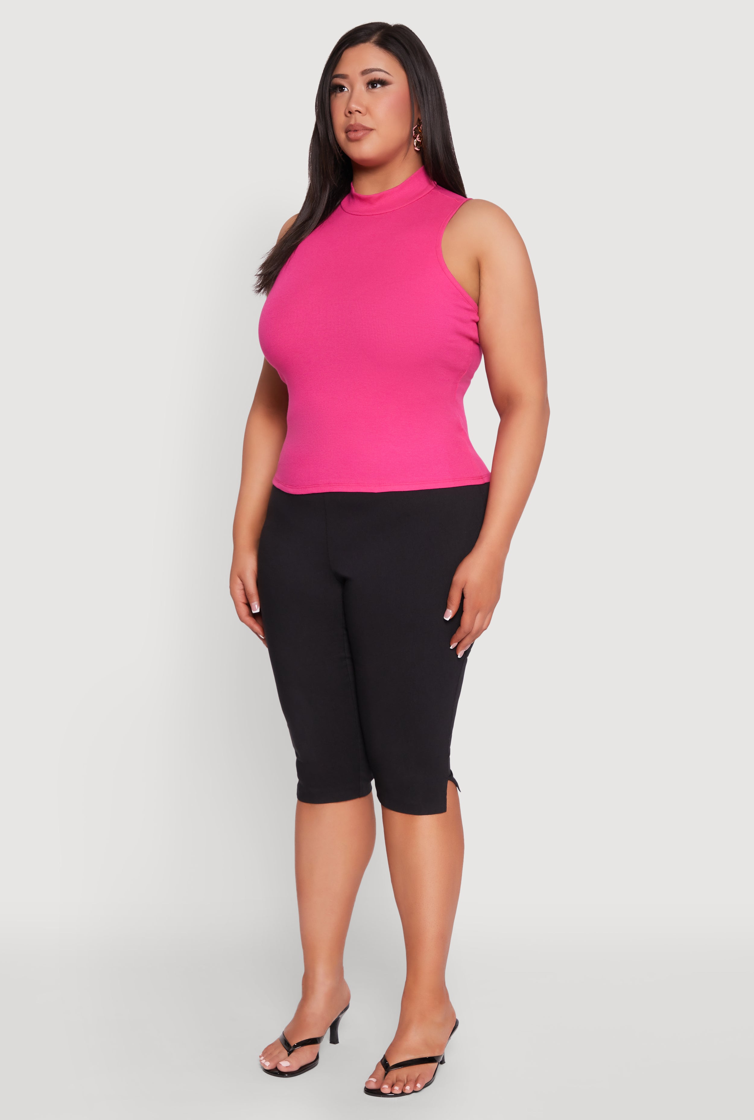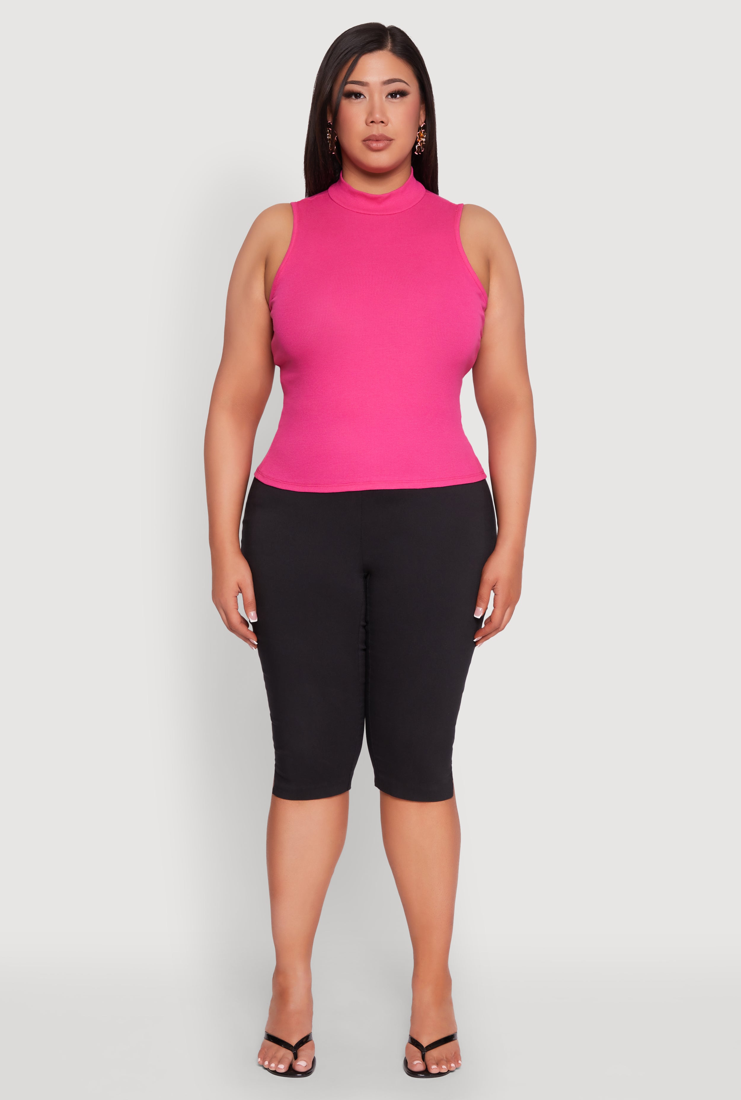 Upgrade your wardrobe with our Plus Size Rib Knit Sleeveless Mock Neck Top, the perfect blend of comfort and style for your everyday look. Designed with a classic fit and timeless silhouette, this tank top is a versatile essential that adds a touch of chic to any outfit. Whether you're running errands or dressing up for a casual deal, this ribbed knit piece is your new go-to. Embrace effortless style and feel confident in a top that flatters your curves and keeps you comfortable all day long.
