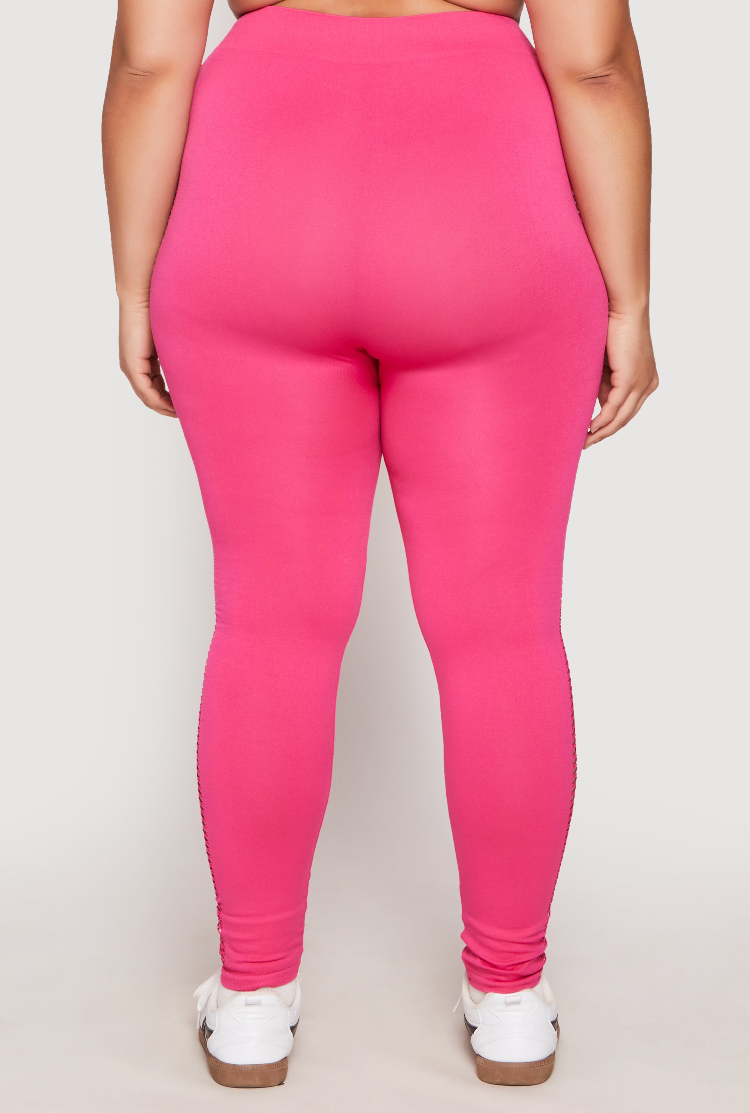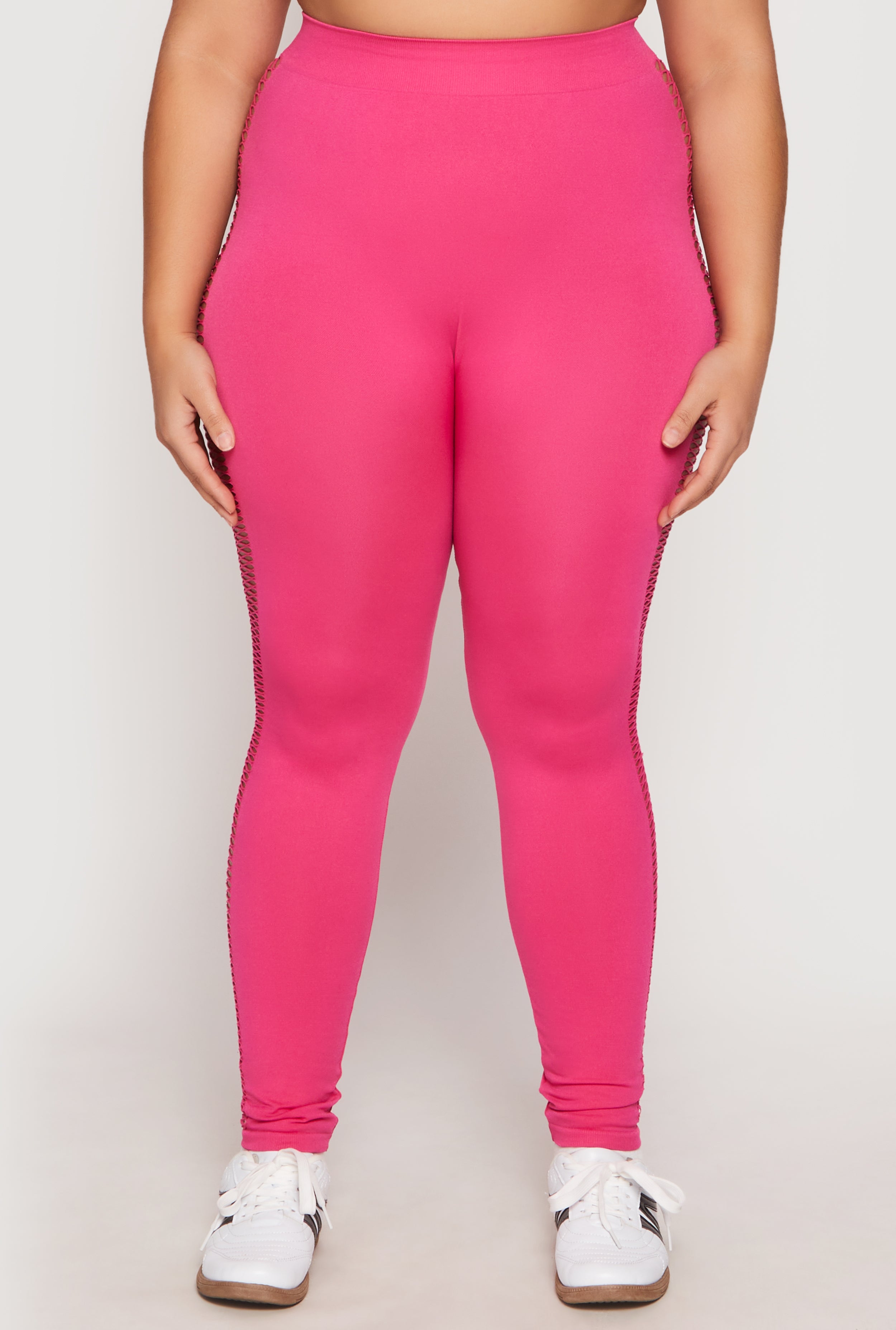 Step up your style game with these Plus Size Seamless Cut Out Side Leggings. Designed to flatter and move with you, these leggings combine sleek laser cut details with a seamless fit that feels like a second skin. Perfect for activewear or just lounging in style, they are your new go-to for comfort and confidence. Get ready to turn heads and feel fabulous wherever you go!
