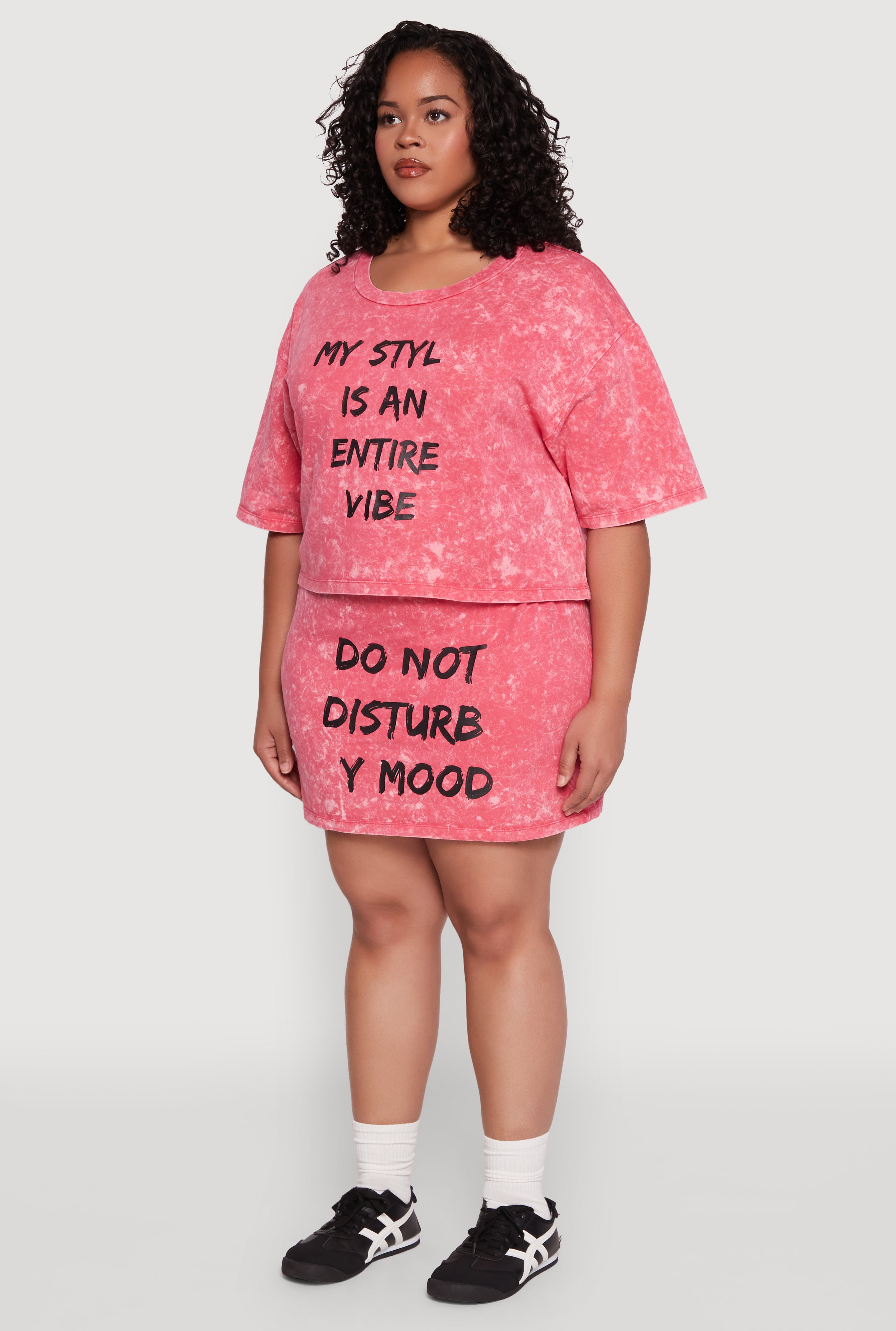 Upgrade your wardrobe with our Plus Size Trendy Mineral Wash Entire Vibe Graphic Tee. Featuring a cool mineral wash finish and a bold "Entire Vibe" graphic, this tee is perfect for expressing your unique style. The classic fit and timeless silhouette make it a versatile go-to for any casual occasion. With short sleeves and a comfy crew neck, you'll stay effortlessly stylish and comfortable all day long. Whether you're hanging out with friends or running errands, this tee is your new favorite staple.