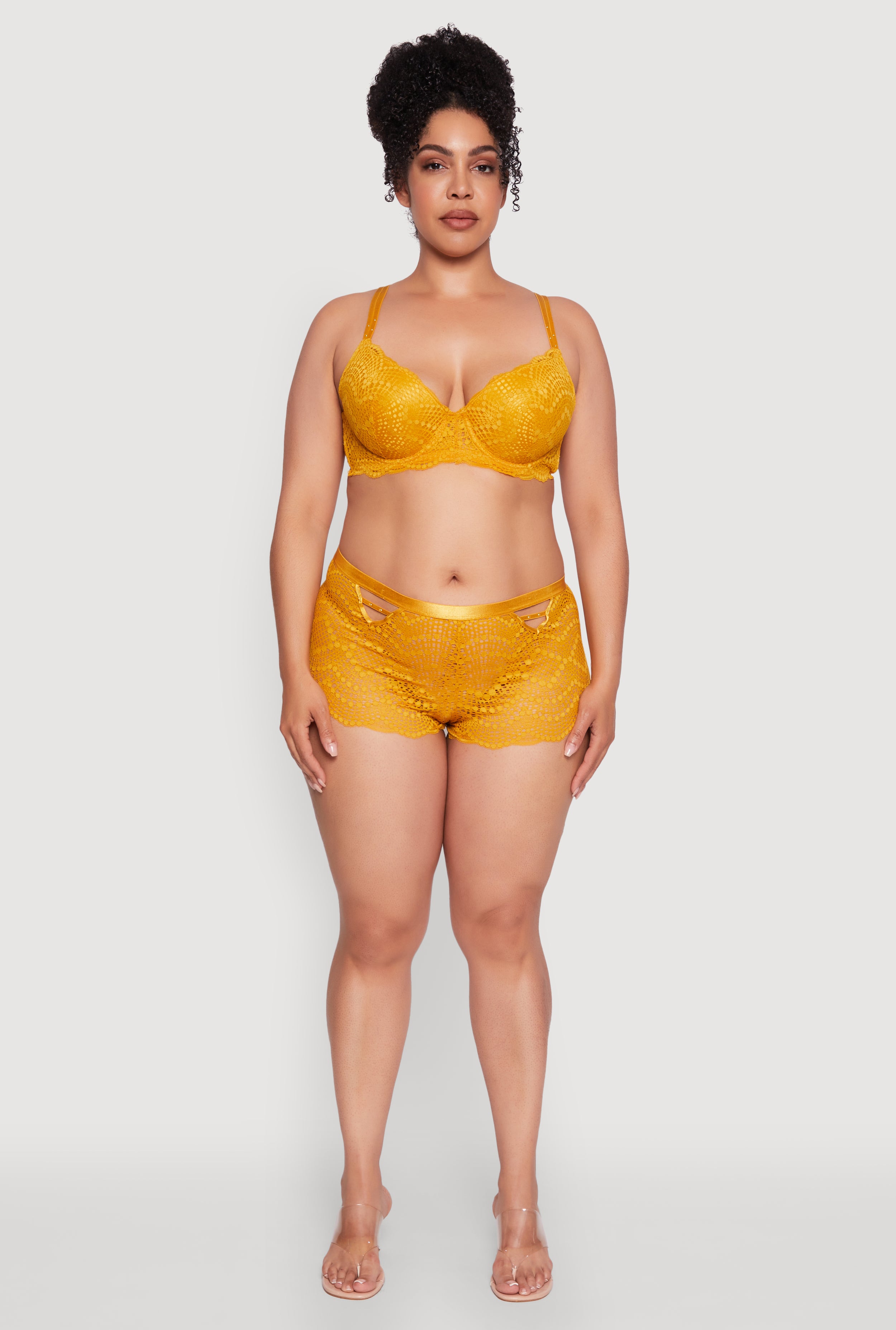 Plus Size Lace Studded V Caged Detail Boyshort Panty