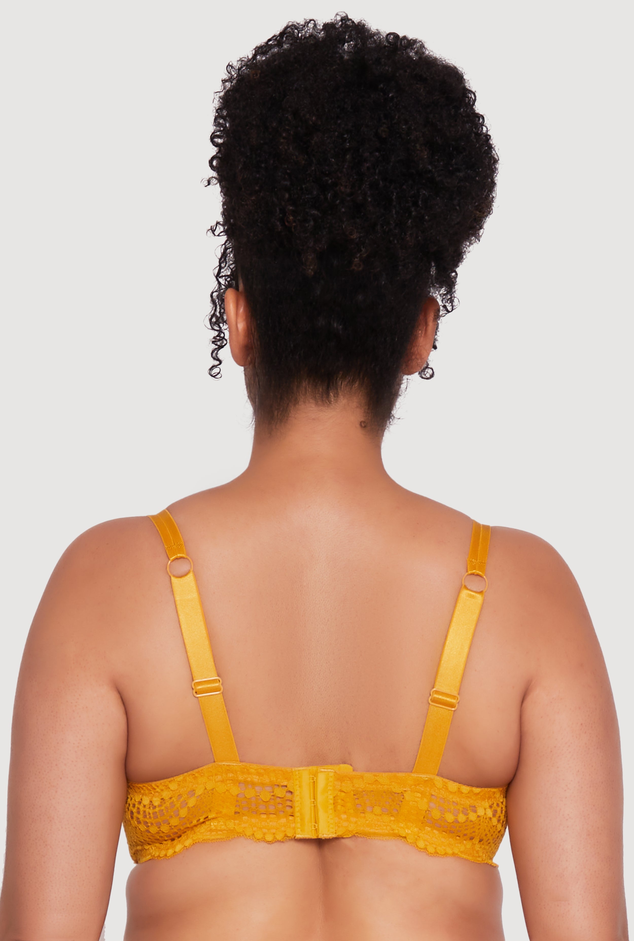 Step up your lingerie game with this Plus Size Studded Double Strap Lace Plunge Bra. Designed to flatter your curves and boost your confidence, it features delicate scallop trim and edgy studded double straps that make every outfit feel a little more special. The plunge design is perfect for showing off your favorite tops while offering full coverage and comfortable padding. Adjustable straps and hook and eye closures ensure a custom fit that moves with you all day and night. Who says plus size lingerie can't be bold and beautiful? This bra proves otherwise.