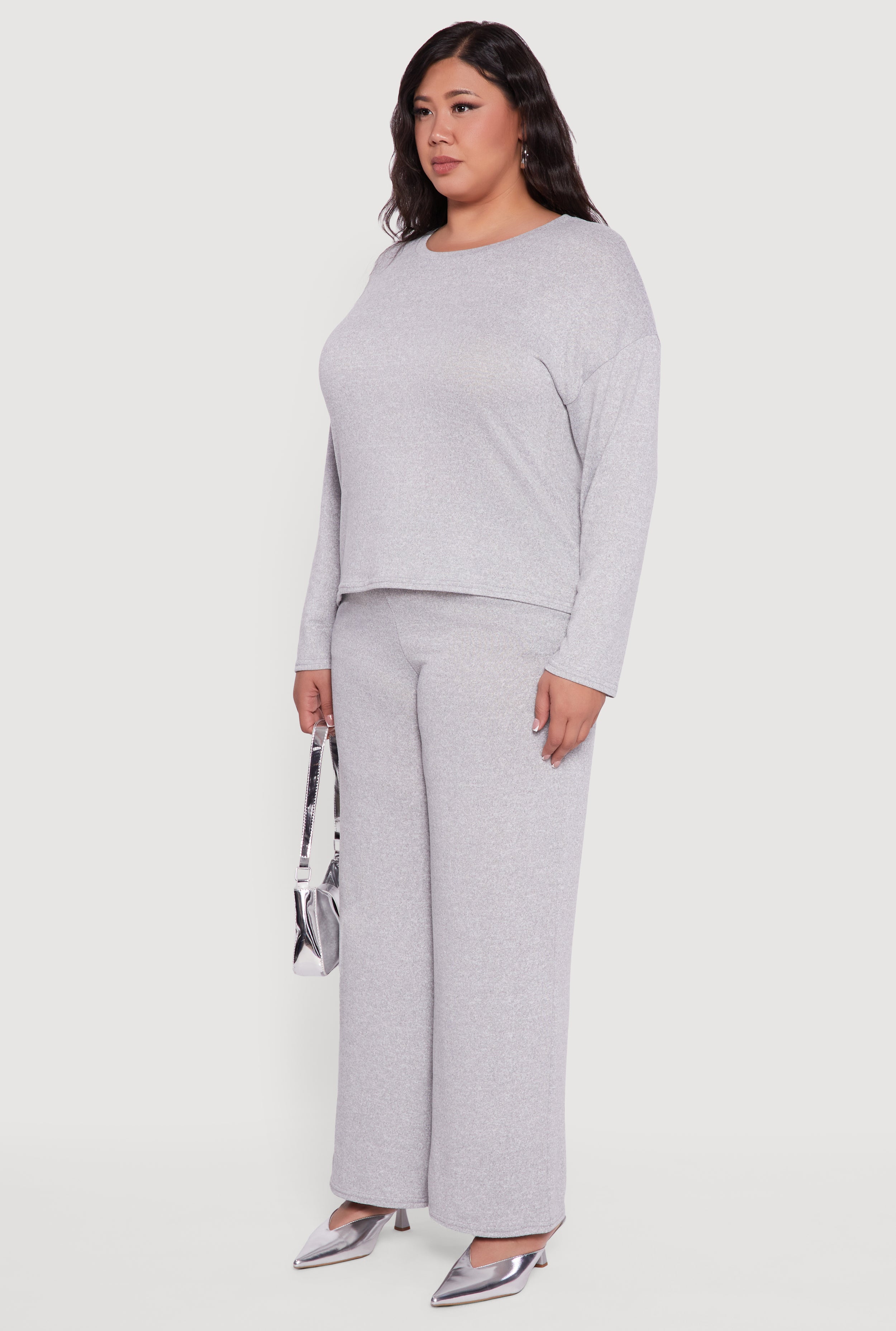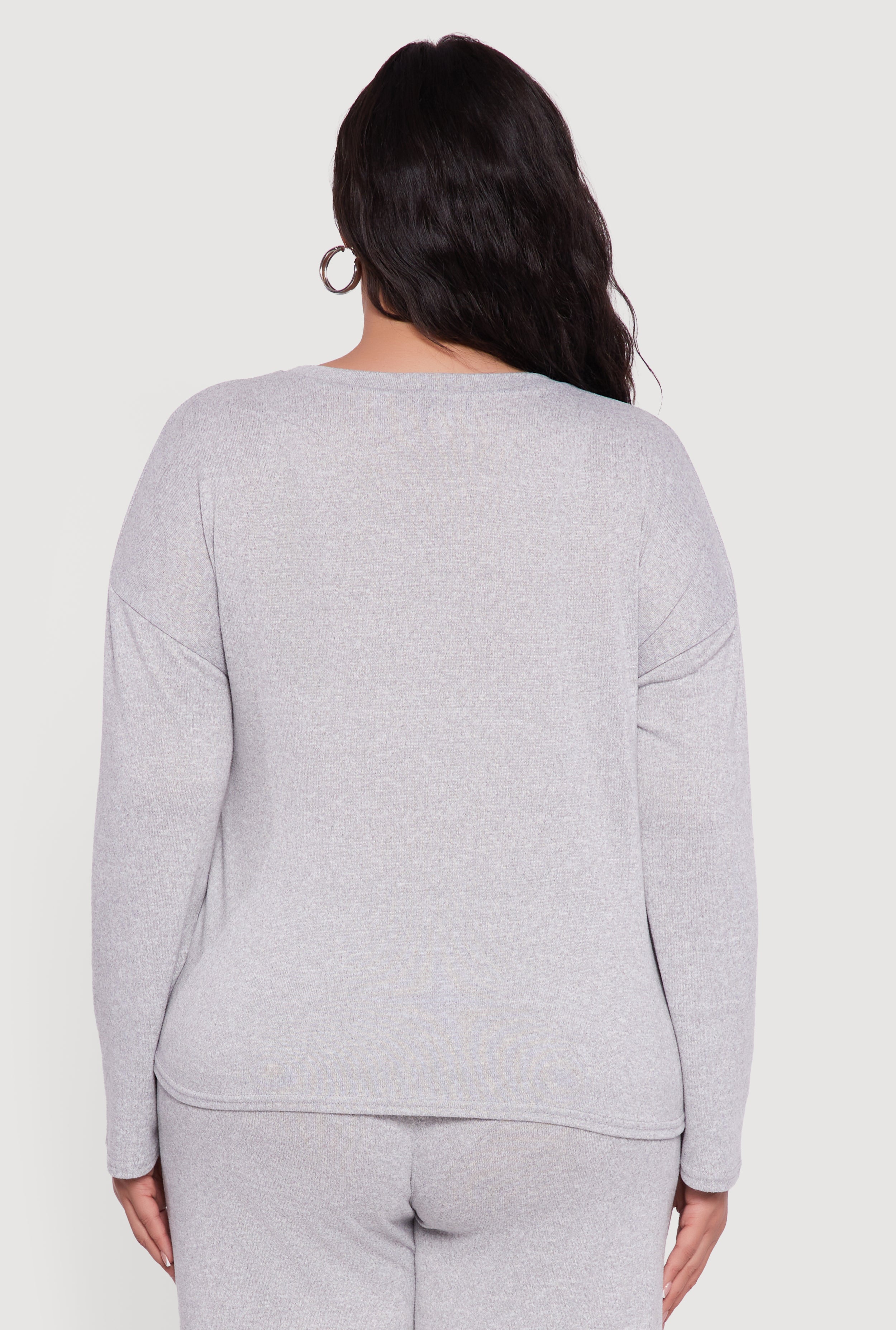 Plus Size Brushed Knit Pullover Long Sleeve Crew Neck Top